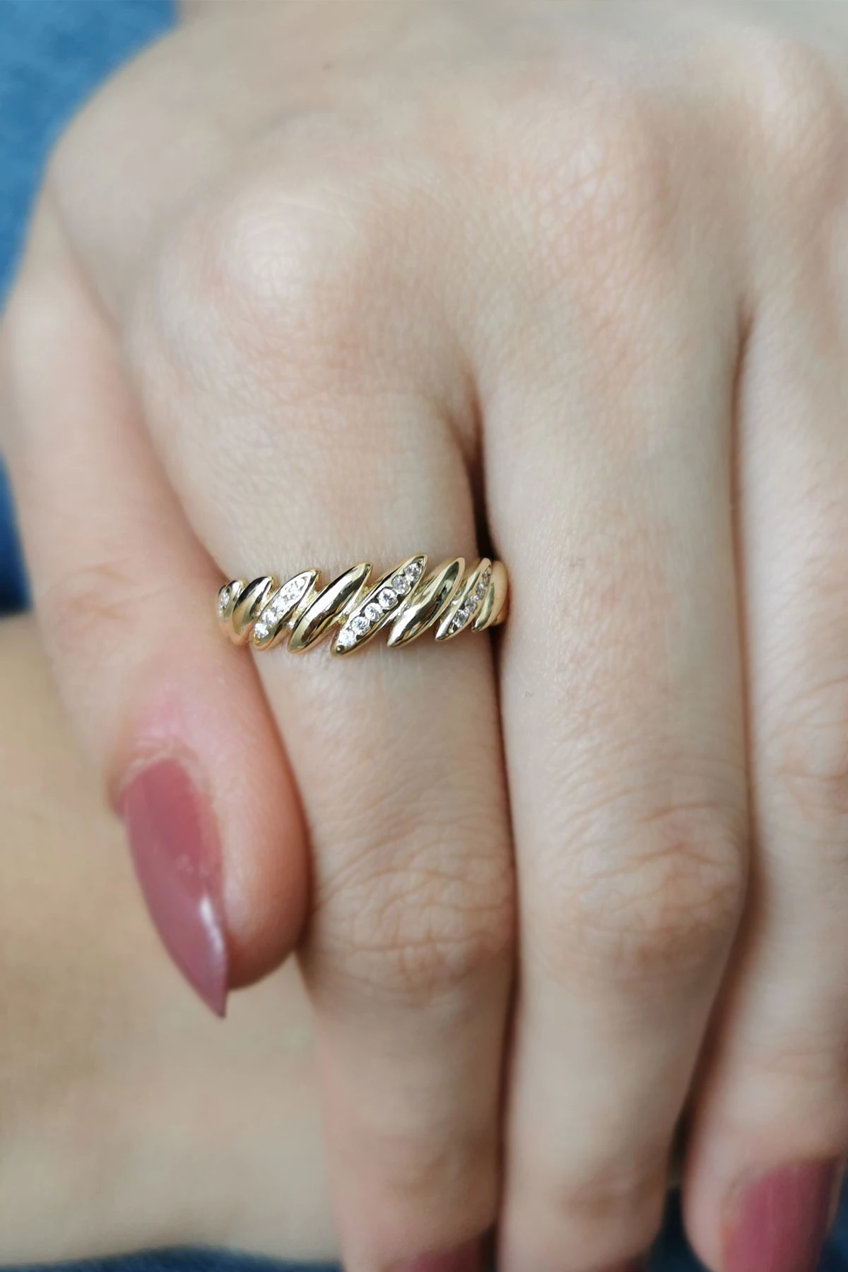 Sezonun modası tohum model 14 ayar sarı altın tasarımıyla günlük kullanıma uygun 2.00 gram ağırlığında modern ve tarz az taşlı buüday kadın yüzük.