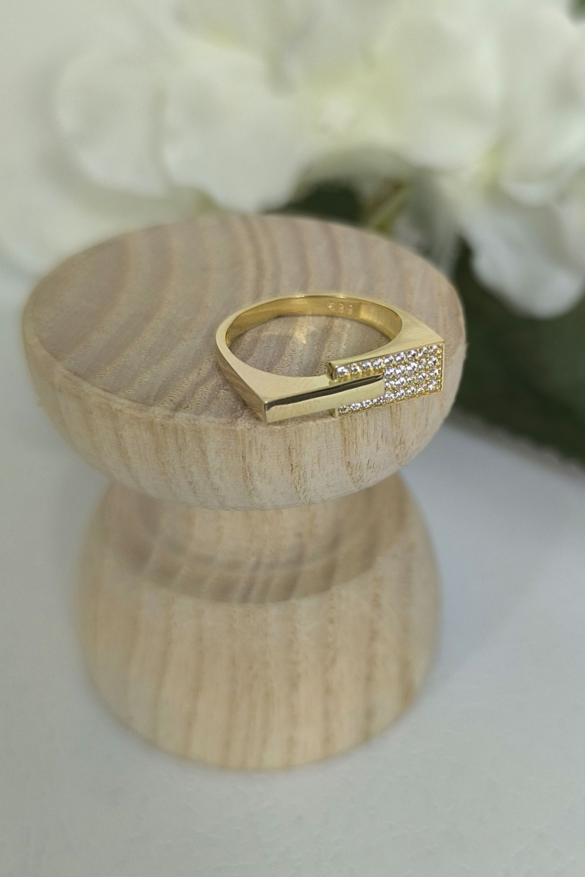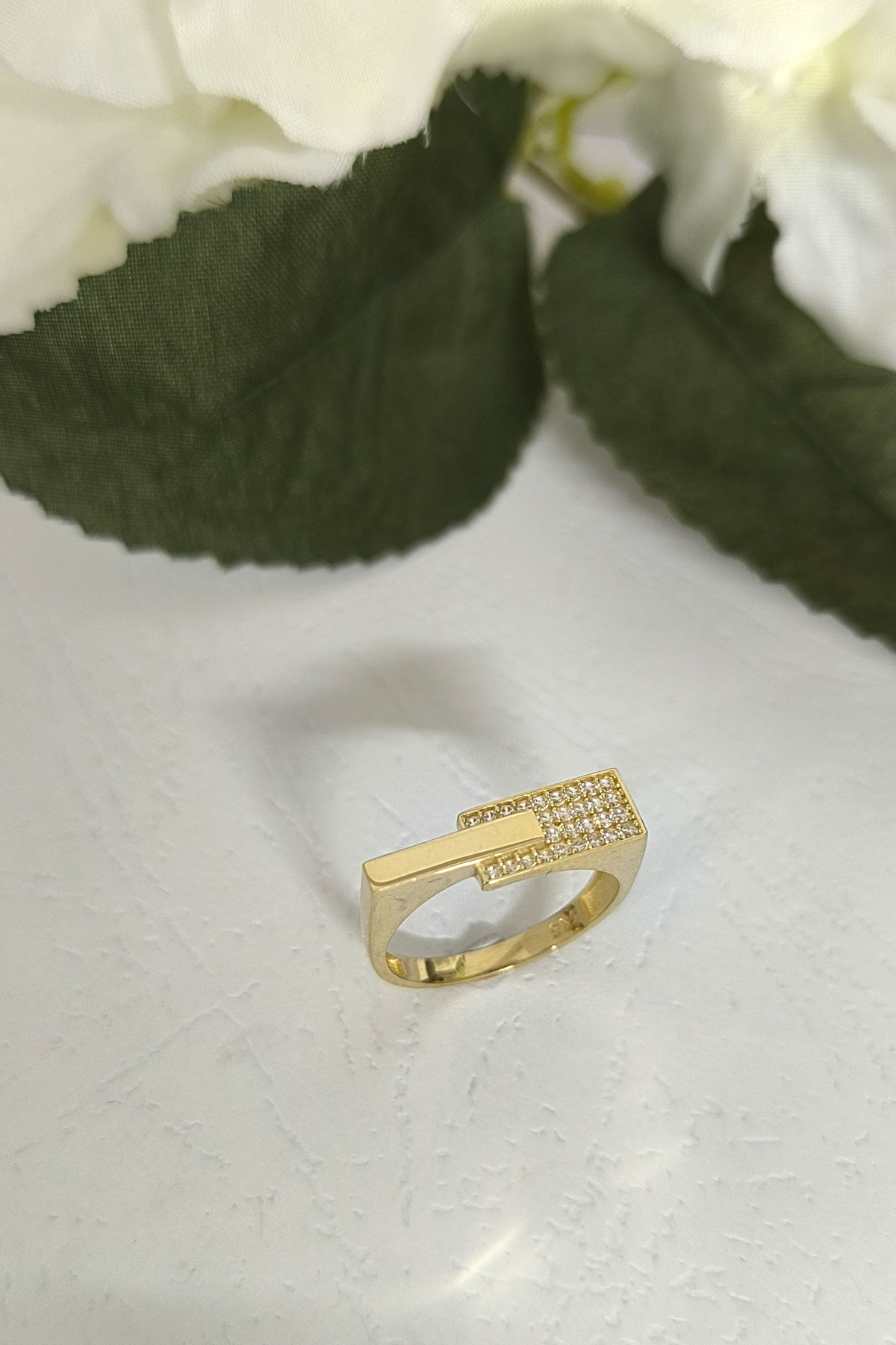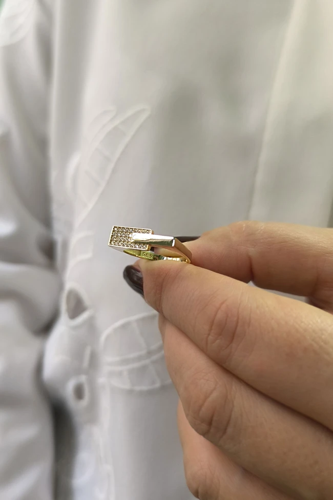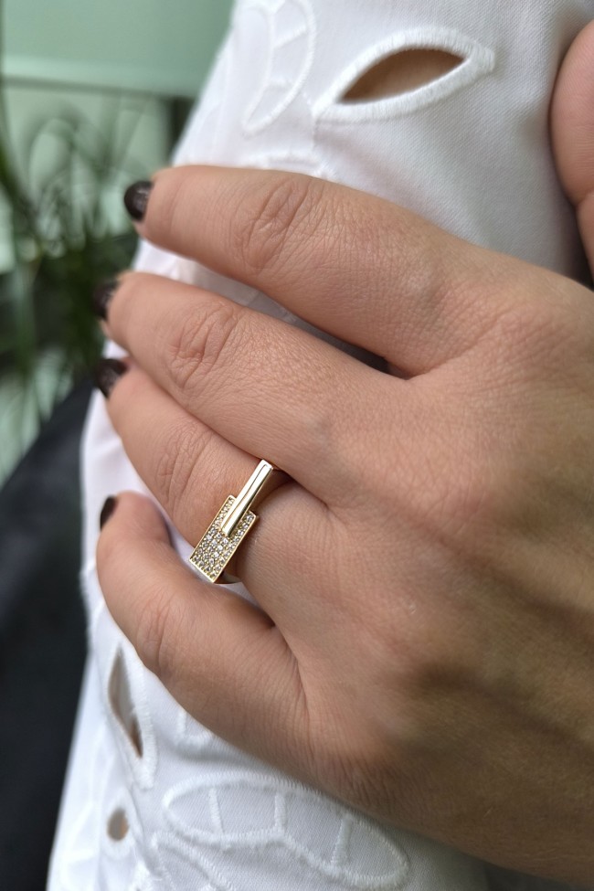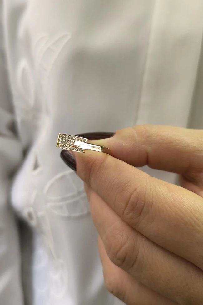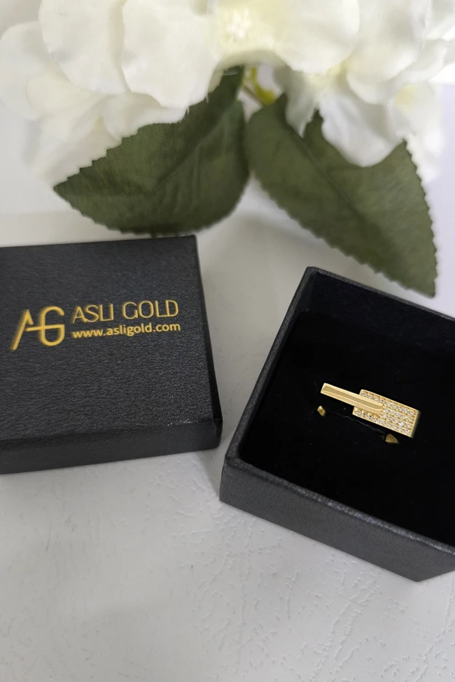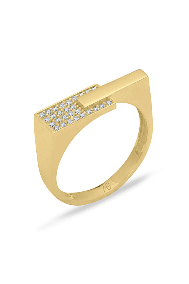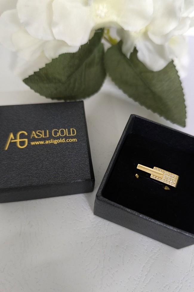 14 ayar sarı altın taşlı tasarımıyla günlük kullanıma uygun 2.65 gram ağırlığında zirkon taşlı tasarım altın kadın çubuk yüzük.