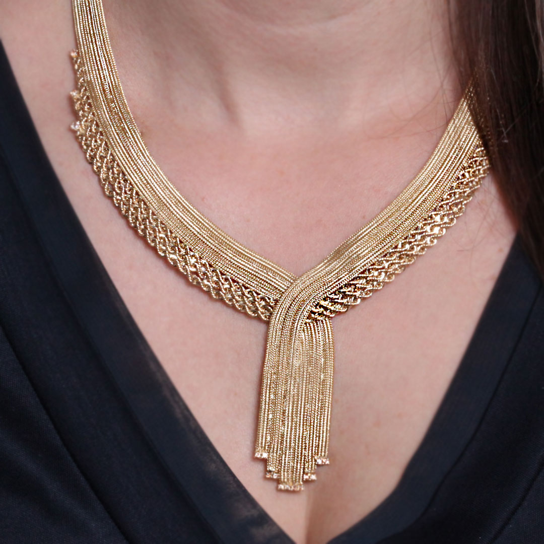 14 Ayar Kalze ve Halat Burgu Zincirlerin Kombinasyonu İle Tasarlanmış Gösterişli Ve Havalı Bir Modele Sahip Taş Detaylı Altın Gerdanlık.