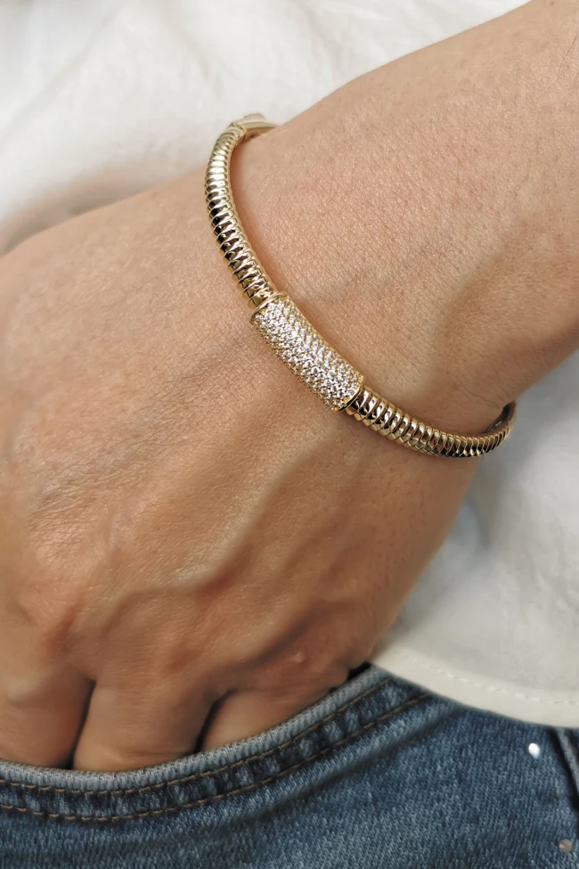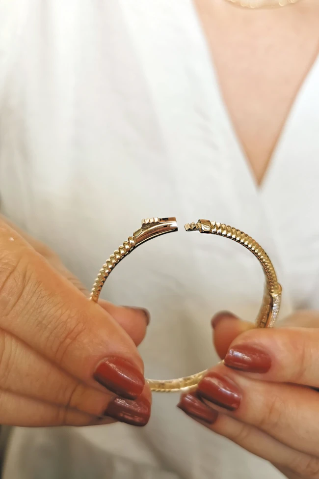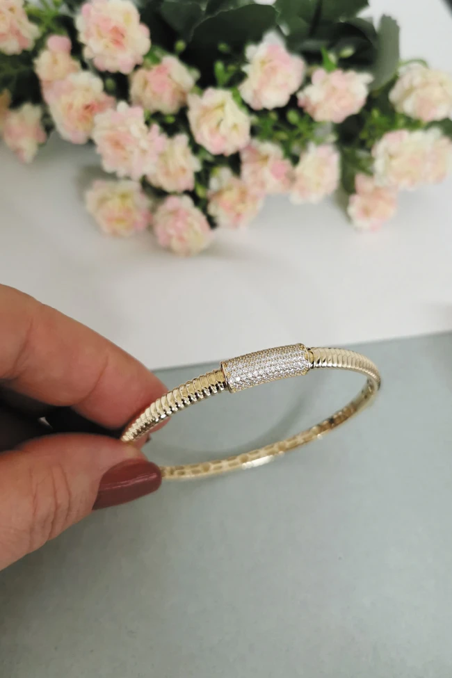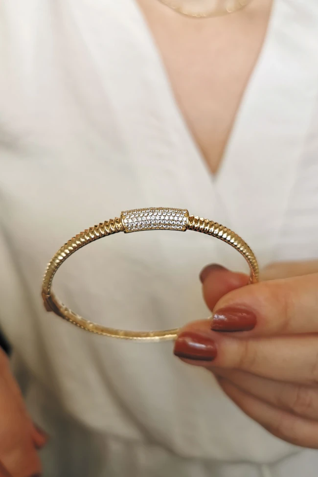 14 Ayar 9.70 gr. Ağırlığında Şık Ve Modern Bir Duruşa Sahip, Günlük Kullanıma Uygun Altın Spor Model Füzyon Taşlı Bilezik.