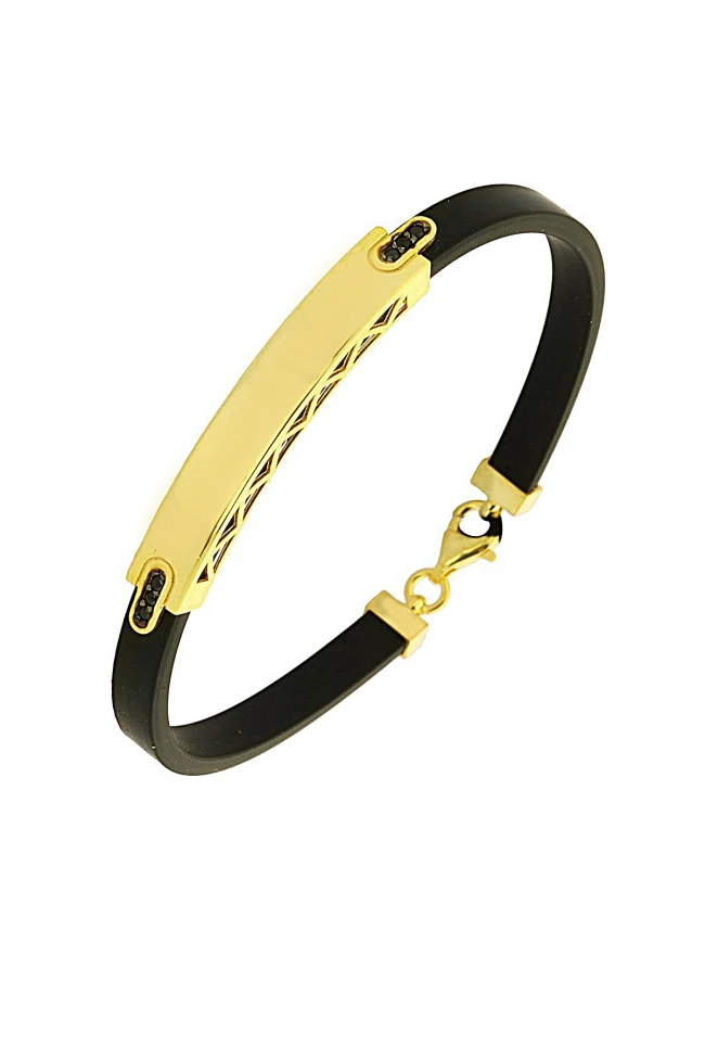 14 Ayar Siyah Taş Detaylı Spor ve Günlük Kullanıma Uygun Model Deri Altın Erkek Bileklik.