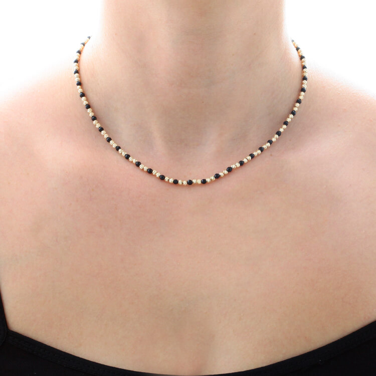 Sezonun yeni trendi uzun süredir popülerliğini koruyan dorika toplu siyah zirkon taş detaylı 14 ayar altın kolye. Unisex kullanıma uygundur.