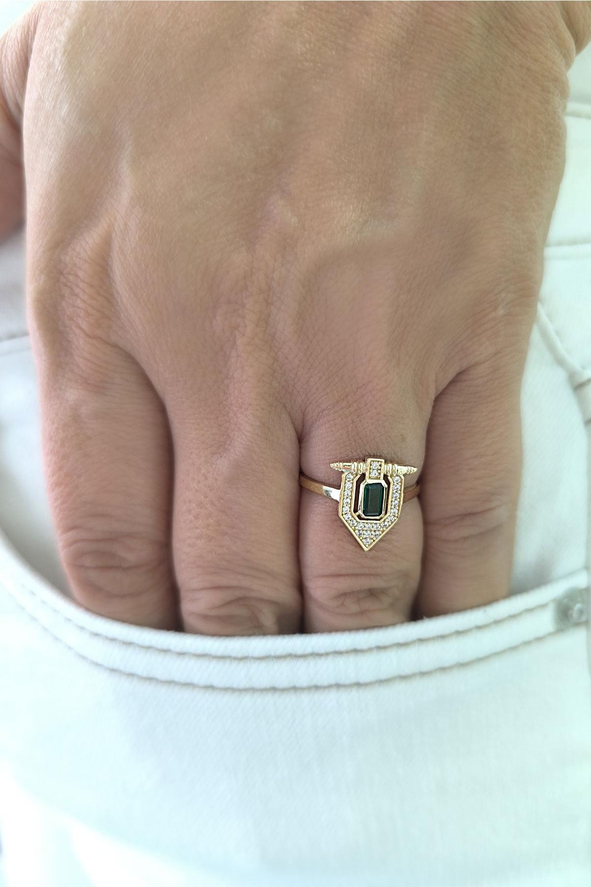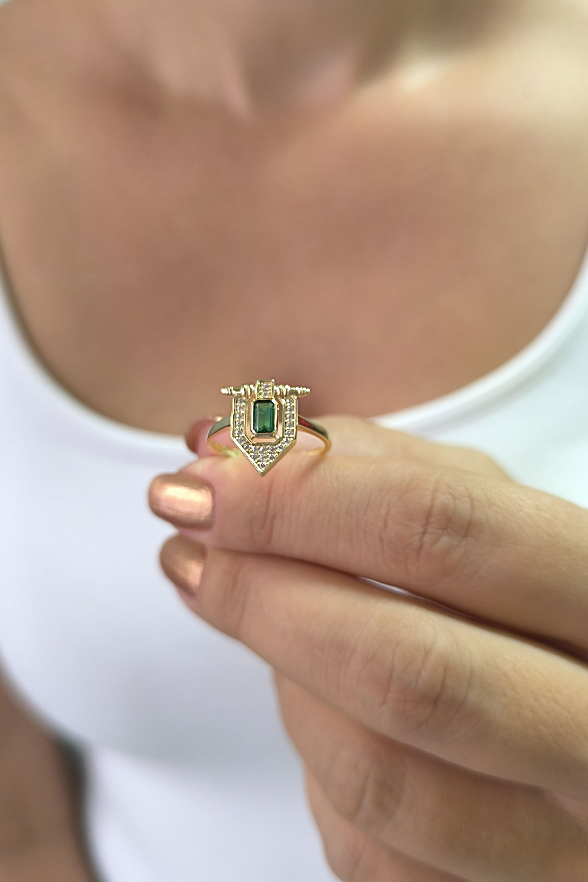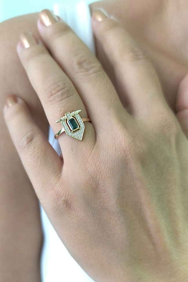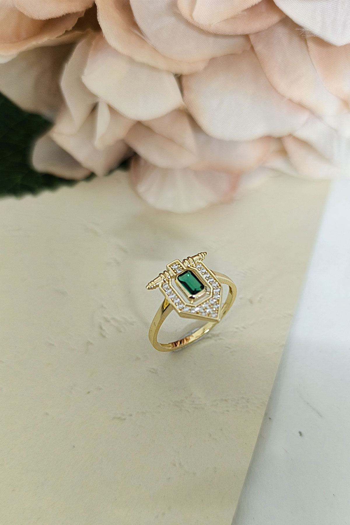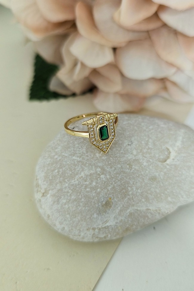 14 ayar sarı altın sade tasarımıyla günlük kullanıma uygun parmağınızda stilinize hava katacak 2.05 gram ağırlığında zirkon zümrüt baget taşlı serçe parmak yüzüğü olarak da kullanıma uygun modern tasarım yüzük.