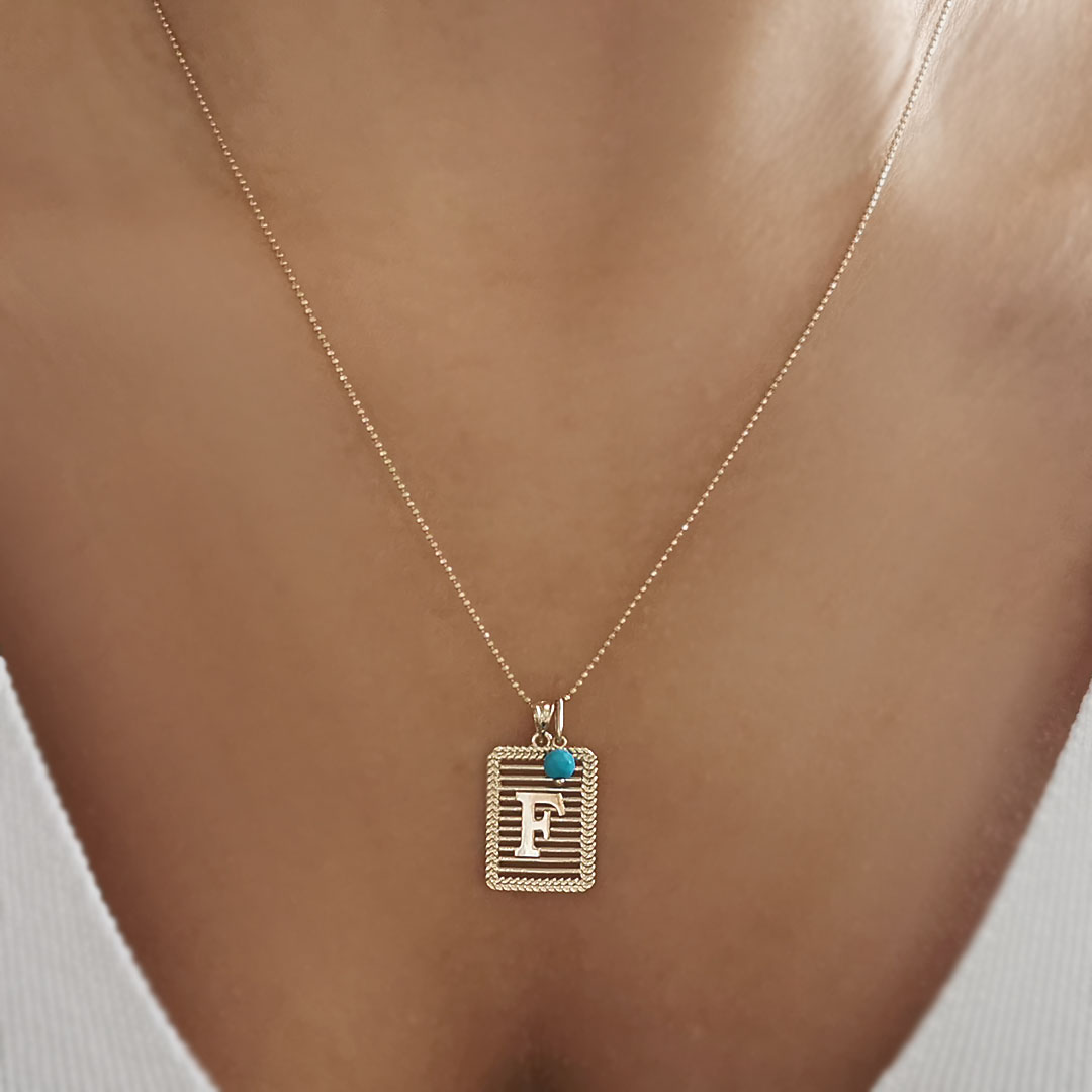 Sevdiklerinizin yada kendi isminizin baş harfini boynunuzda severek taşıyacağınız tasarım harf kolyemiz mini mavi boncuk detayı ile oldukça havalı bir duruşa sahip.