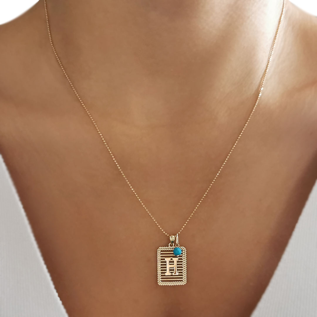 Sevdiklerinizin yada kendi isminizin baş harfini boynunuzda severek taşıyacağınız tasarım harf kolyemiz mini mavi boncuk detayı ile oldukça havalı bir duruşa sahip.