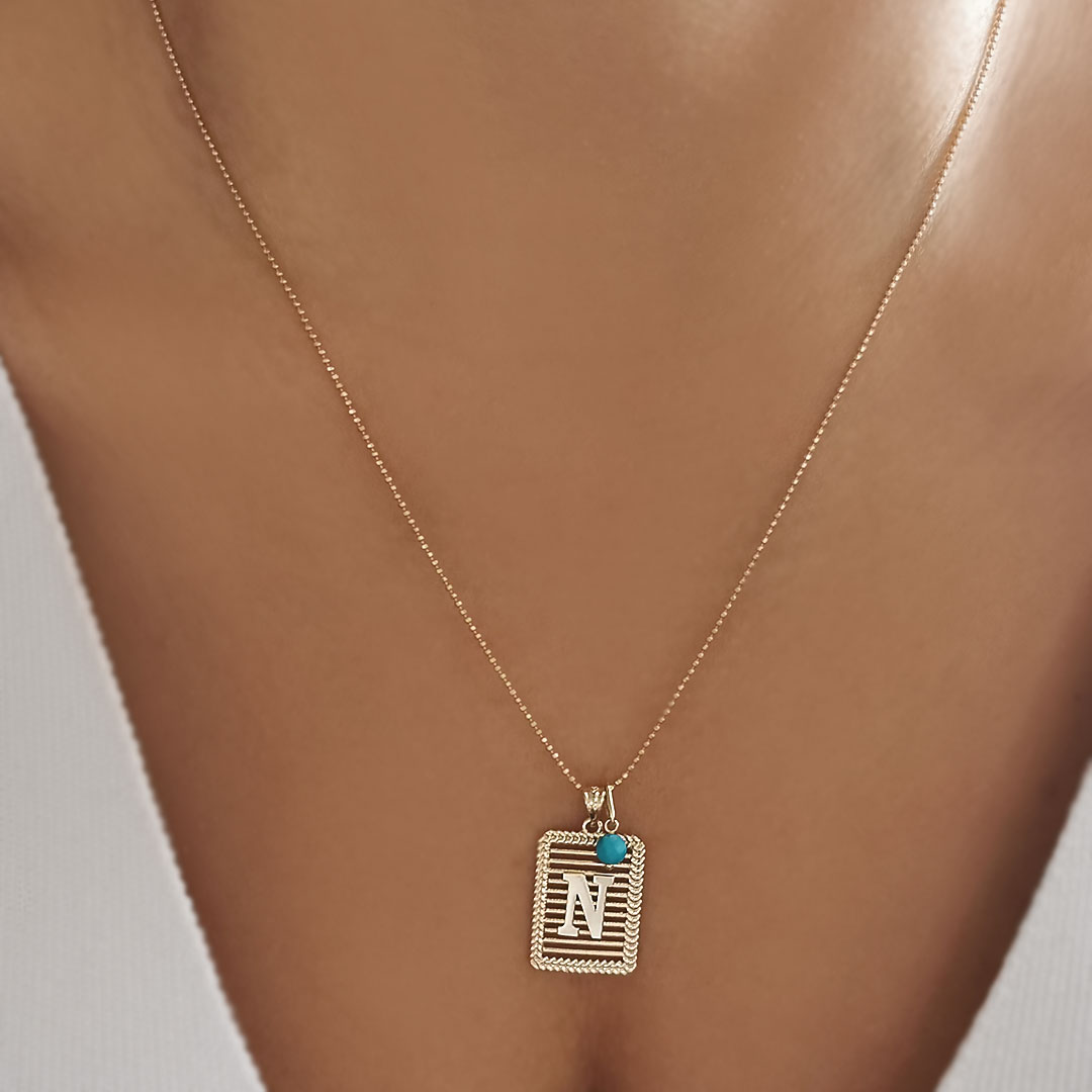 Sevdiklerinizin yada kendi isminizin baş harfini boynunuzda severek taşıyacağınız tasarım harf kolyemiz mini mavi boncuk detayı ile oldukça havalı bir duruşa sahip.