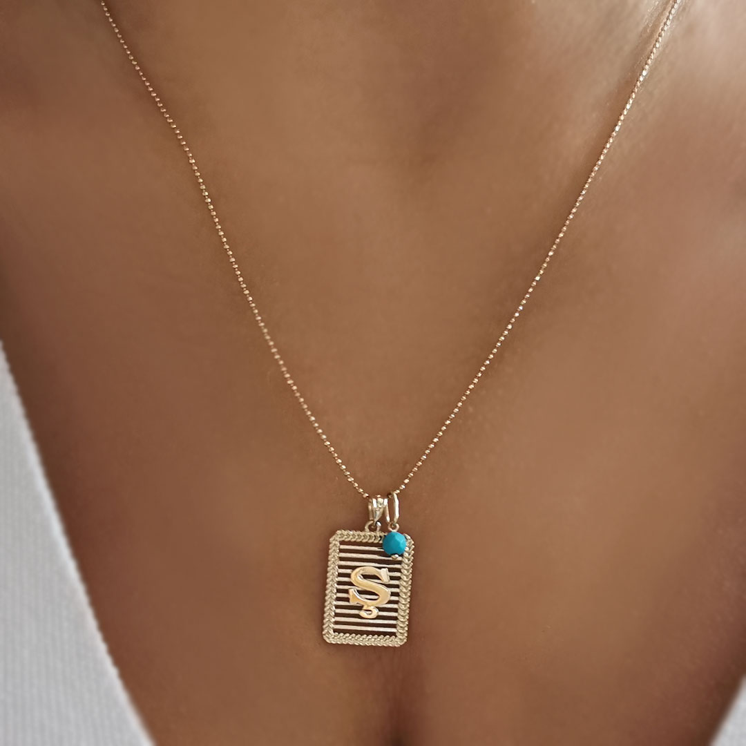 Sevdiklerinizin yada kendi isminizin baş harfini boynunuzda severek taşıyacağınız tasarım harf kolyemiz mini mavi boncuk detayı ile oldukça havalı bir duruşa sahip.