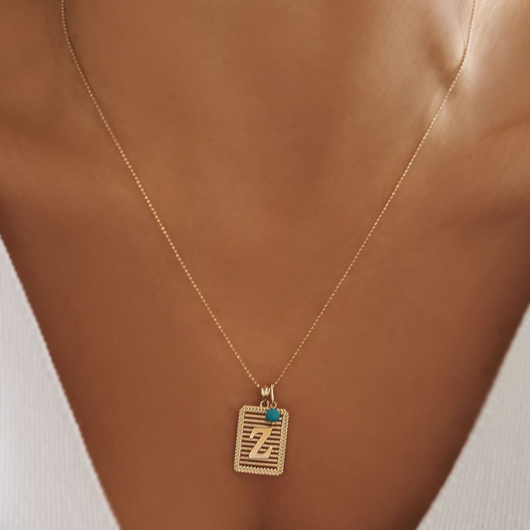 Sevdiklerinizin yada kendi isminizin baş harfini boynunuzda severek taşıyacağınız tasarım harf kolyemiz mini mavi boncuk detayı ile oldukça havalı bir duruşa sahip.