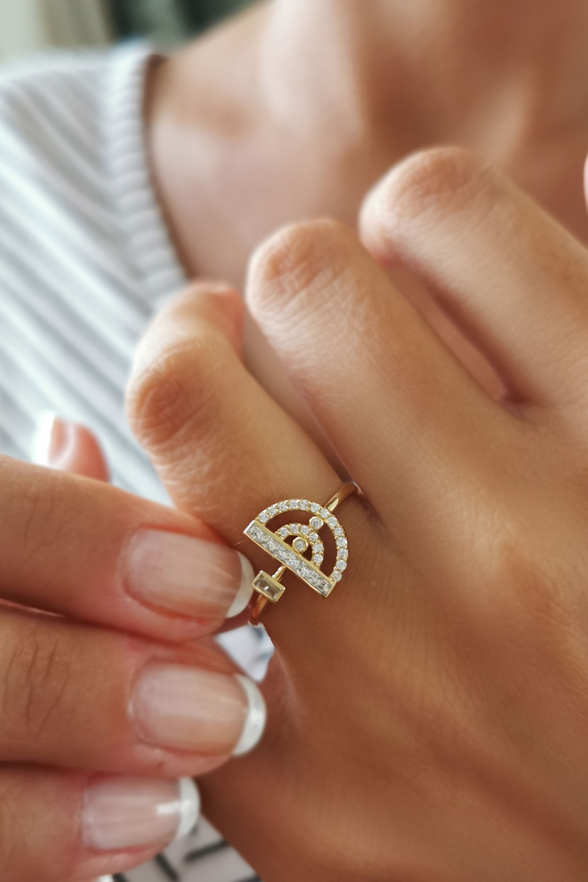 1.75 Gram Ağırlığında Şık Bir Tarza Sahip Günlük Kullanıma Uygun Zirkon Taşlı Doğan Ay Tasarımlı 14 Ayar Altın Yüzük.