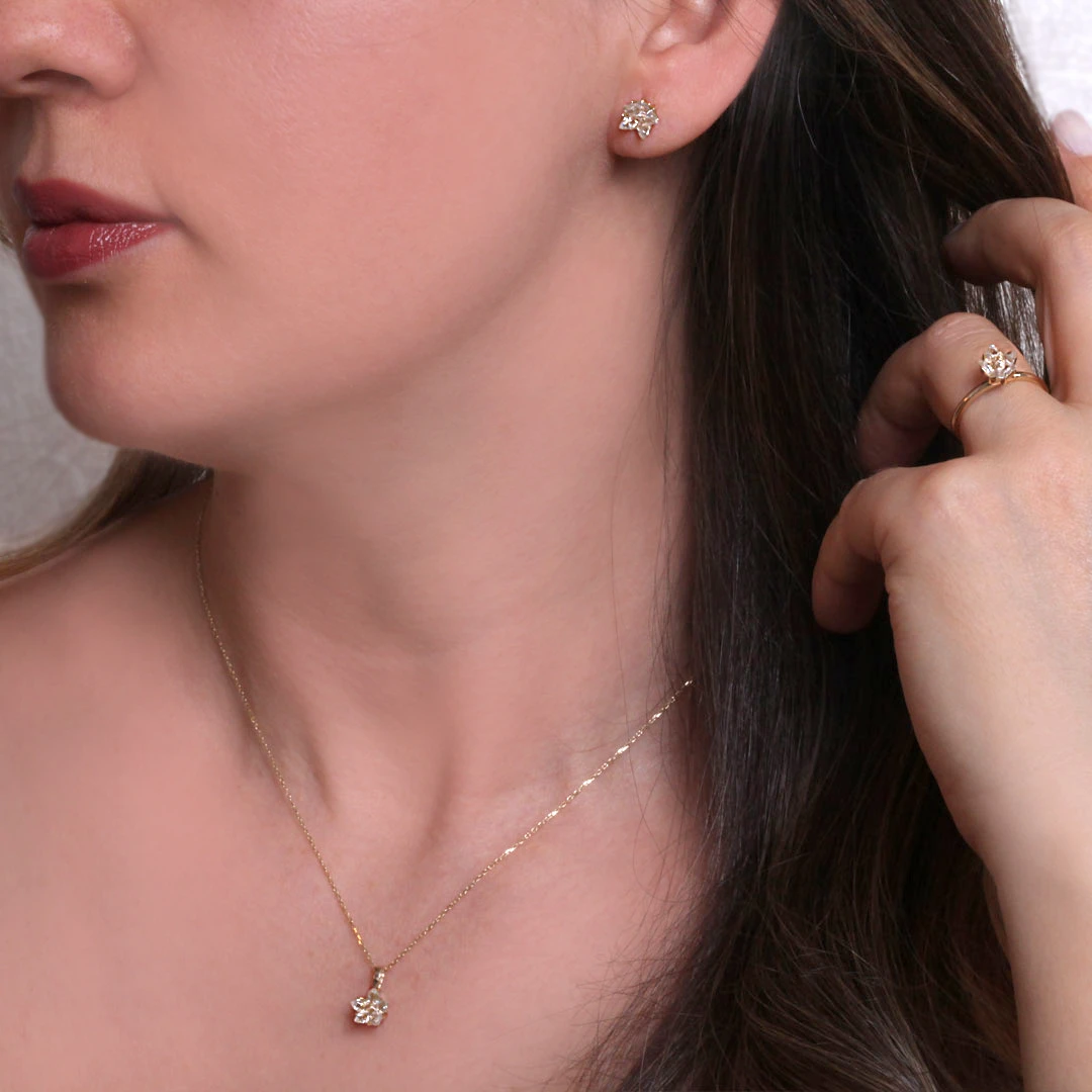 6,00 Gram Ağırlığında El İşçiliğiyle Takılan Markiz Taş Detaylı Minimal Tasarımıyla Oldukça Şık Ve Sade Bir Duruşa Sahip 14 Ayar Altın Beyaz Lotus Çiçeği Küpe Kolye Yüzük Takımı. -Ruhsal uyanışın ve temizliğin sembolü olan, eşi benzeri doğada bulunmayan beyaz renkli lotus çiçeği saflığı ve manevi mükemmelliği temsil eder. *Ürünlerimiz faturalıdır güvenle satın alabilirsiniz, özel hediye kutusunda ücretsiz kargo ile gönderilecektir.