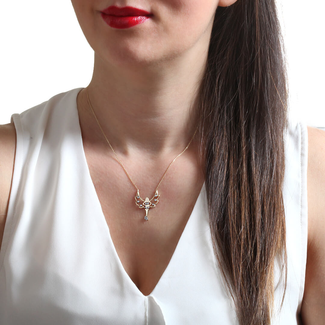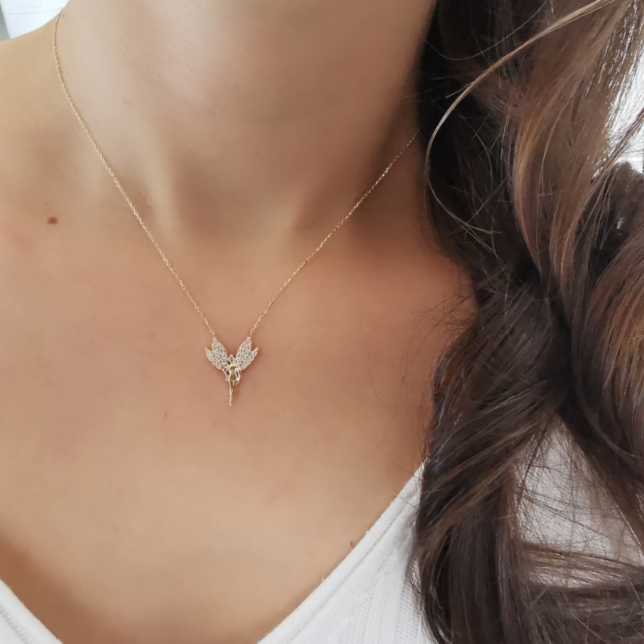 14 Ayar 1.95 gram ağırlığında 45 cm kendinden zincirli komple taşlı kalp tasarımıyla dikkat çekici şık ışıl ışıl altın peri kolye.