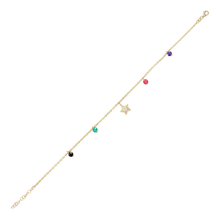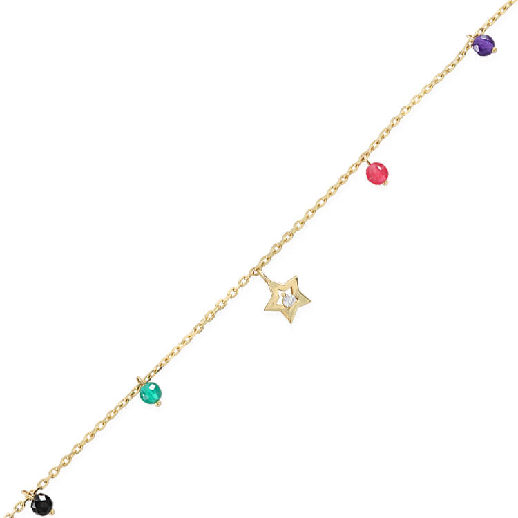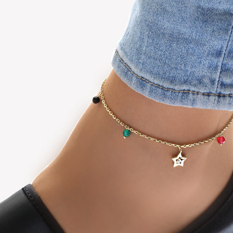 14 Ayar Zincir Üzeri Renkli Taş Ve Yıldız Detaylı Işıl Işıl Modern Tasarım 3.25 Gr. Ağırlığında Altın Halhal.