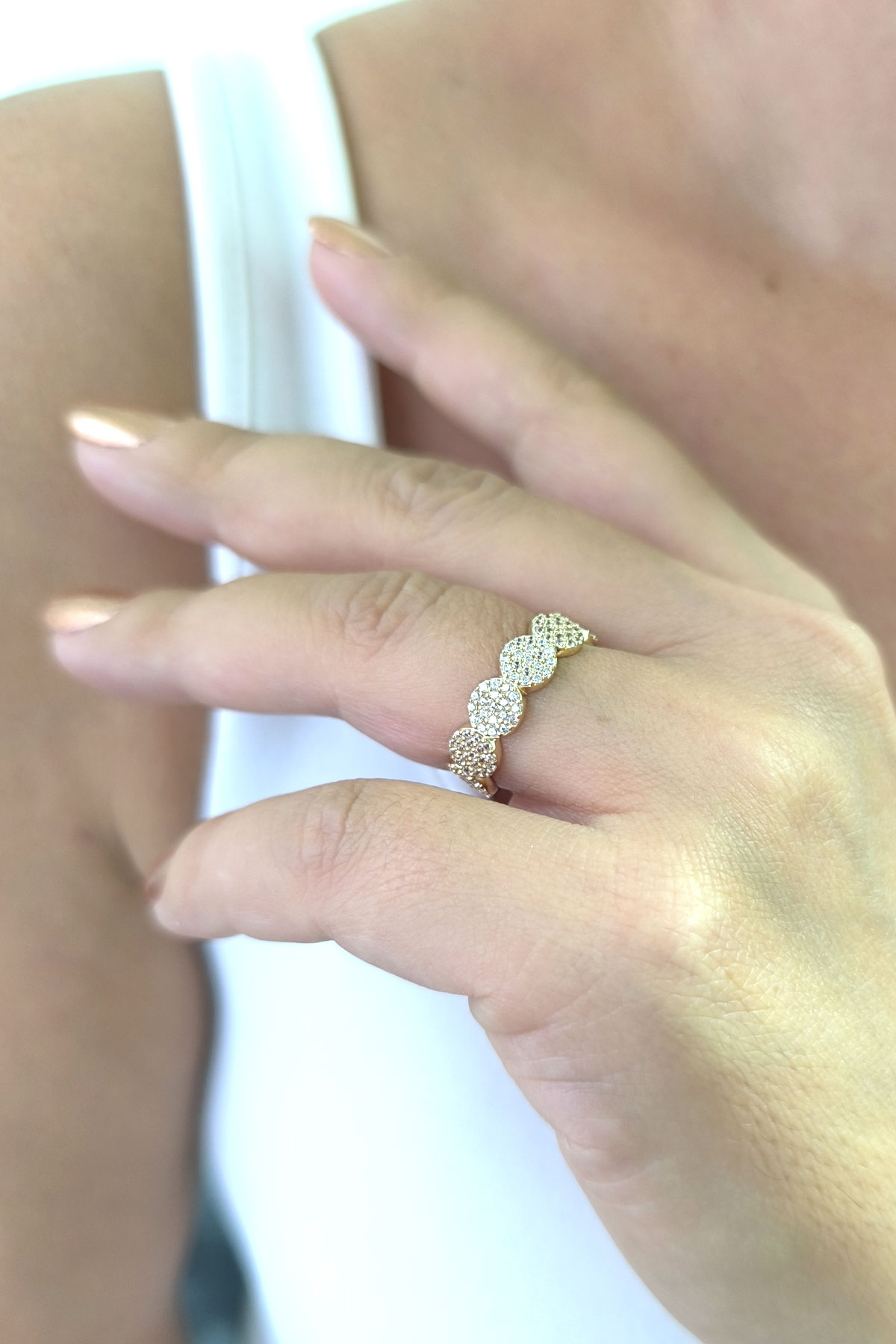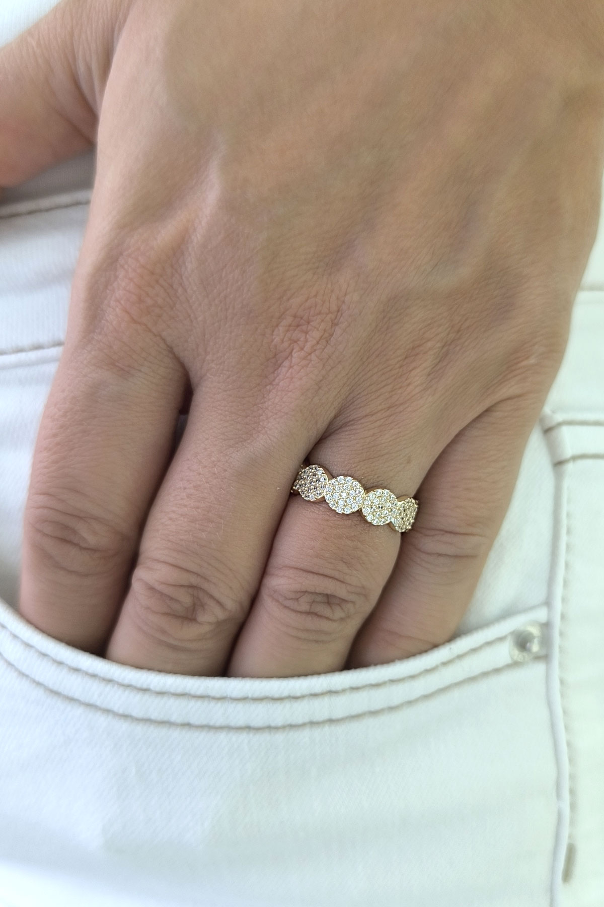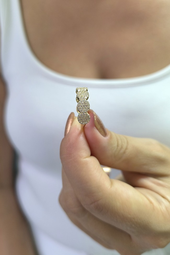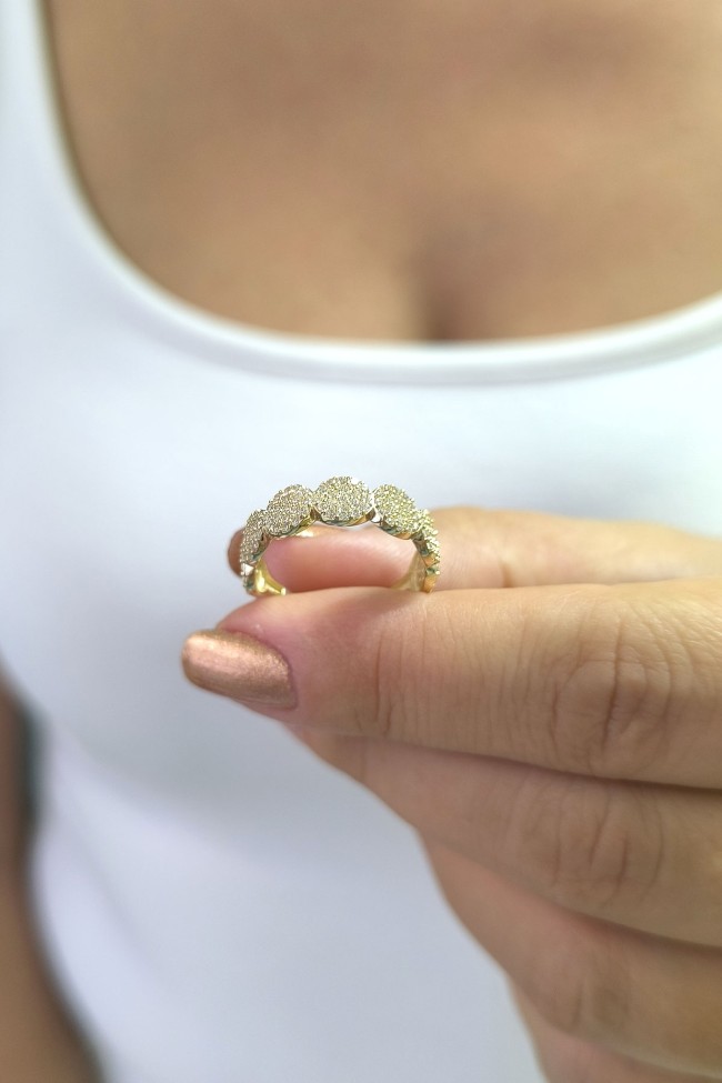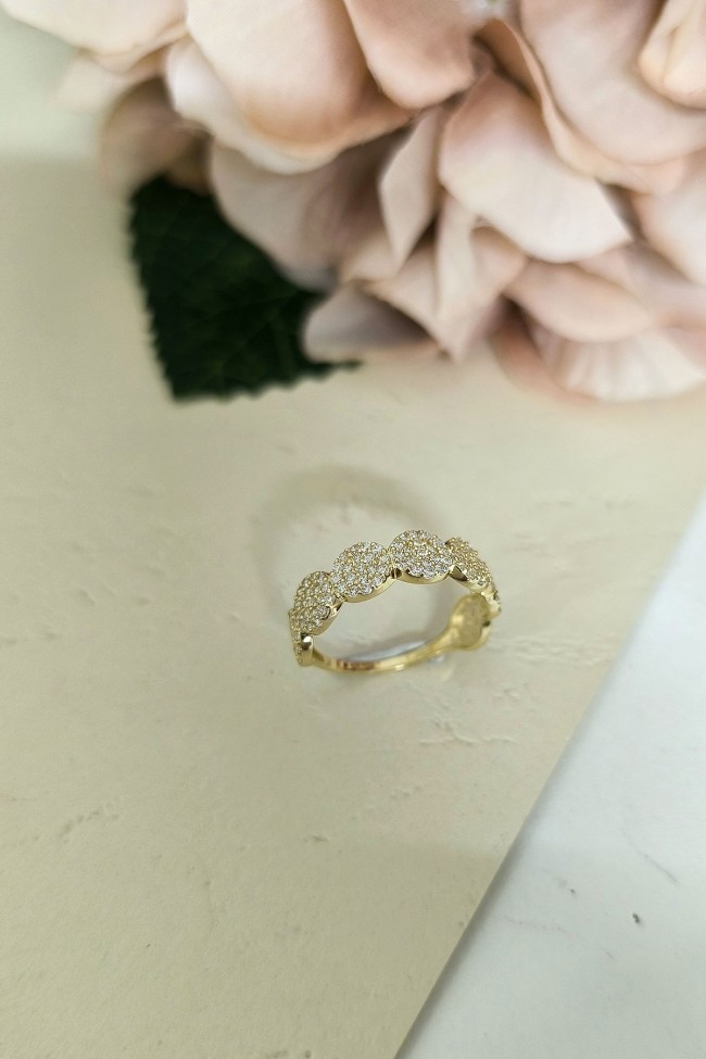 14 ayar sarı altın taşlı tasarımıyla günlük kullanıma uygun parmağınızda stilinize hava katacak 2.20 gram ağırlığında zirkon taşlı zarif kadın yüzük.