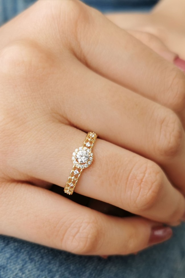 14 ayar sarı altın çiçek tasarımıyla günlük kullanıma uygun parmağınızda stilinize hava katacak 1.45 gram ağırlığında zirkon taşlı minimal yüzük.