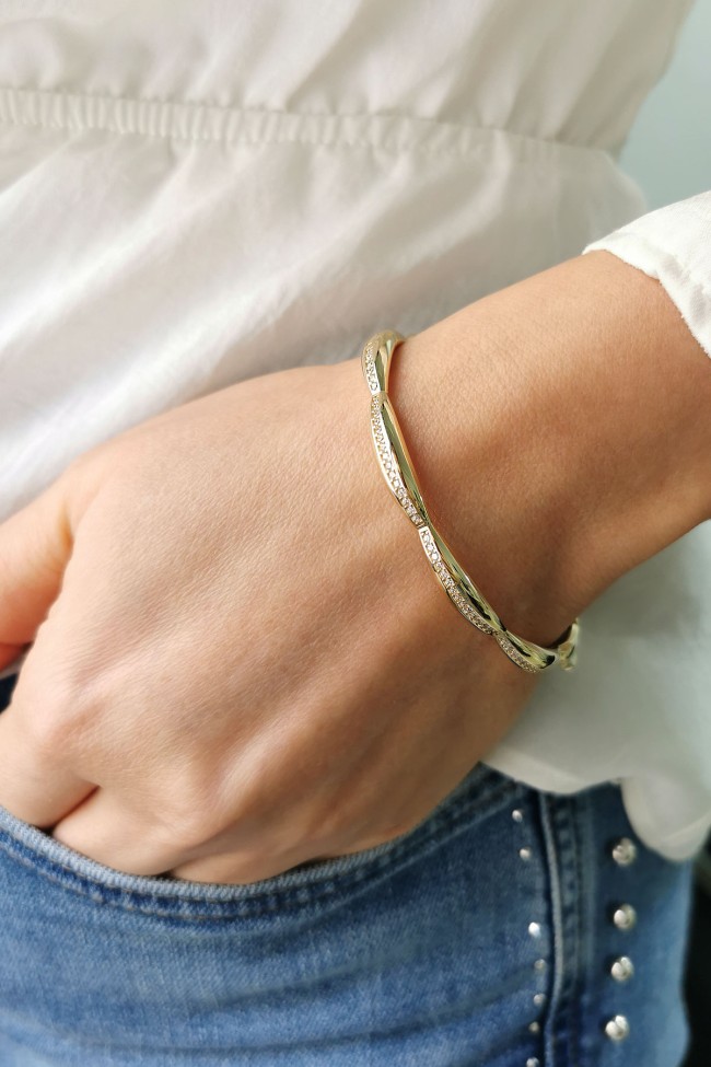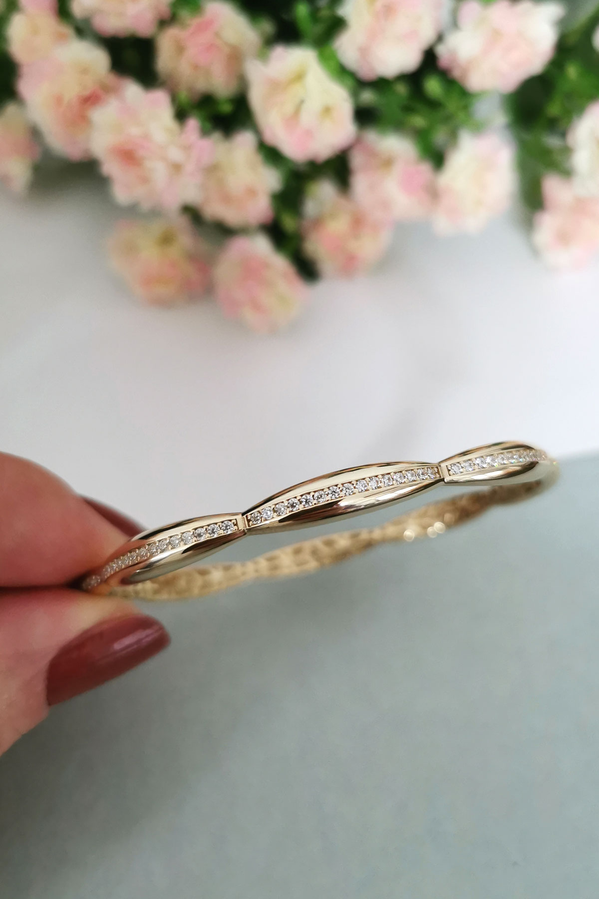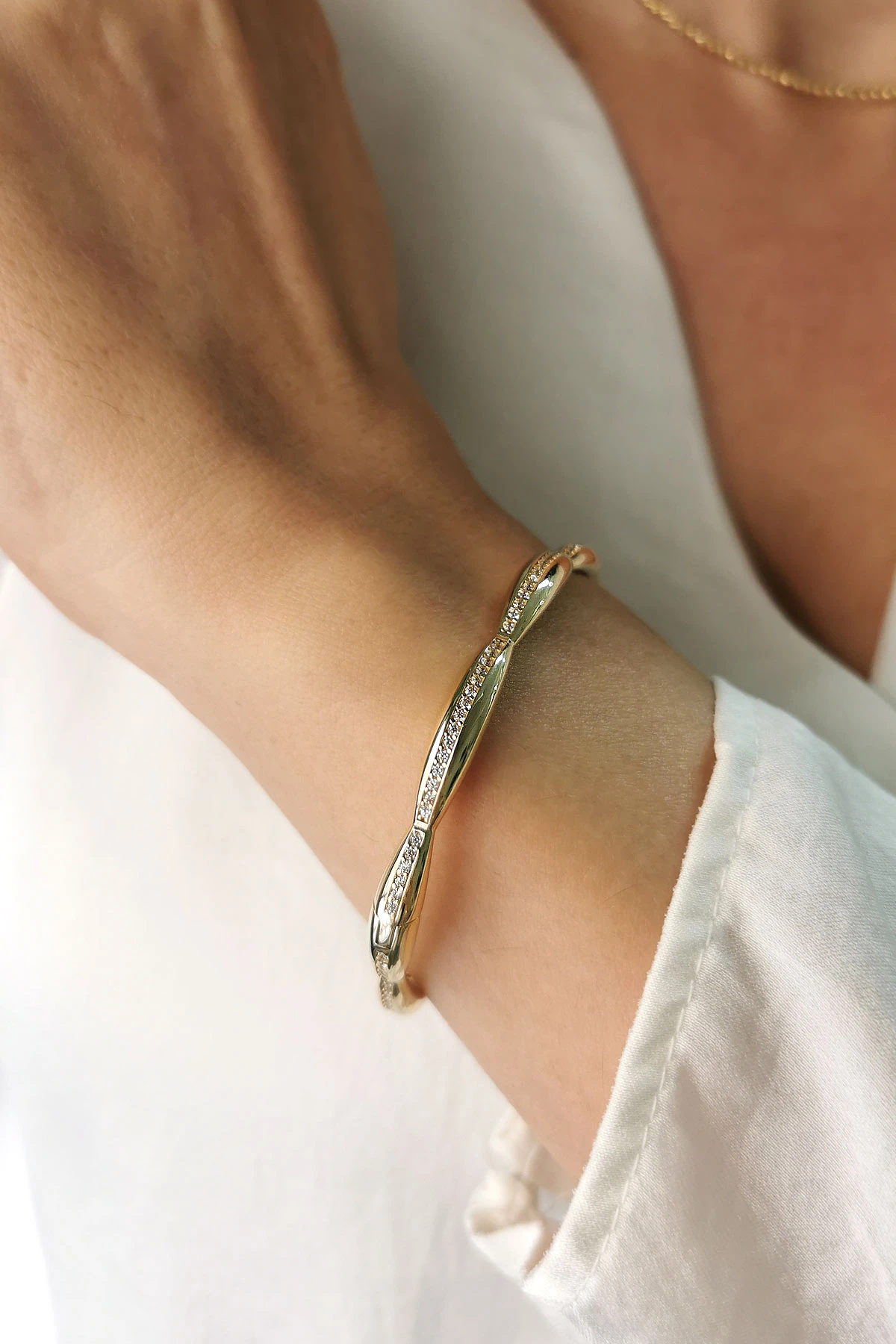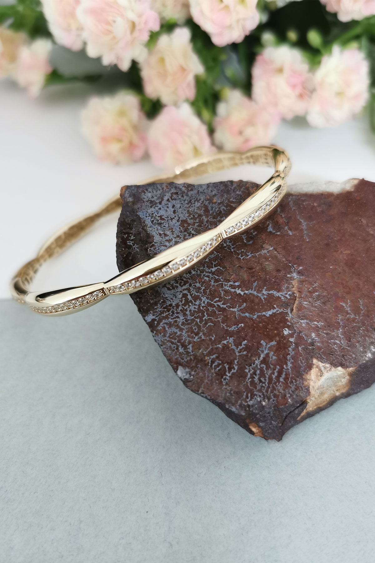 14 Ayar 10.90 gr.  Ağırlığında Şık, Spor Ve Modern Bir Duruşa Sahip, Günlük Kullanıma Uygun Altın Füzyon Dalga Model Tasarım Bilezik.