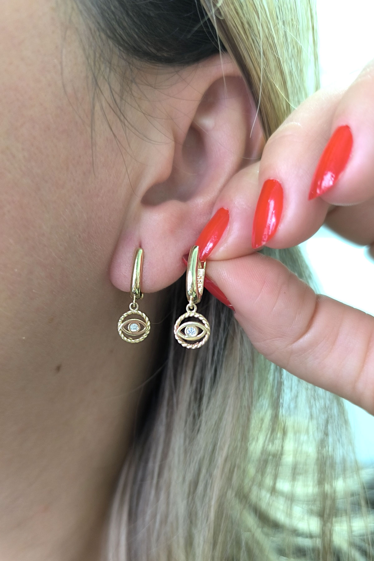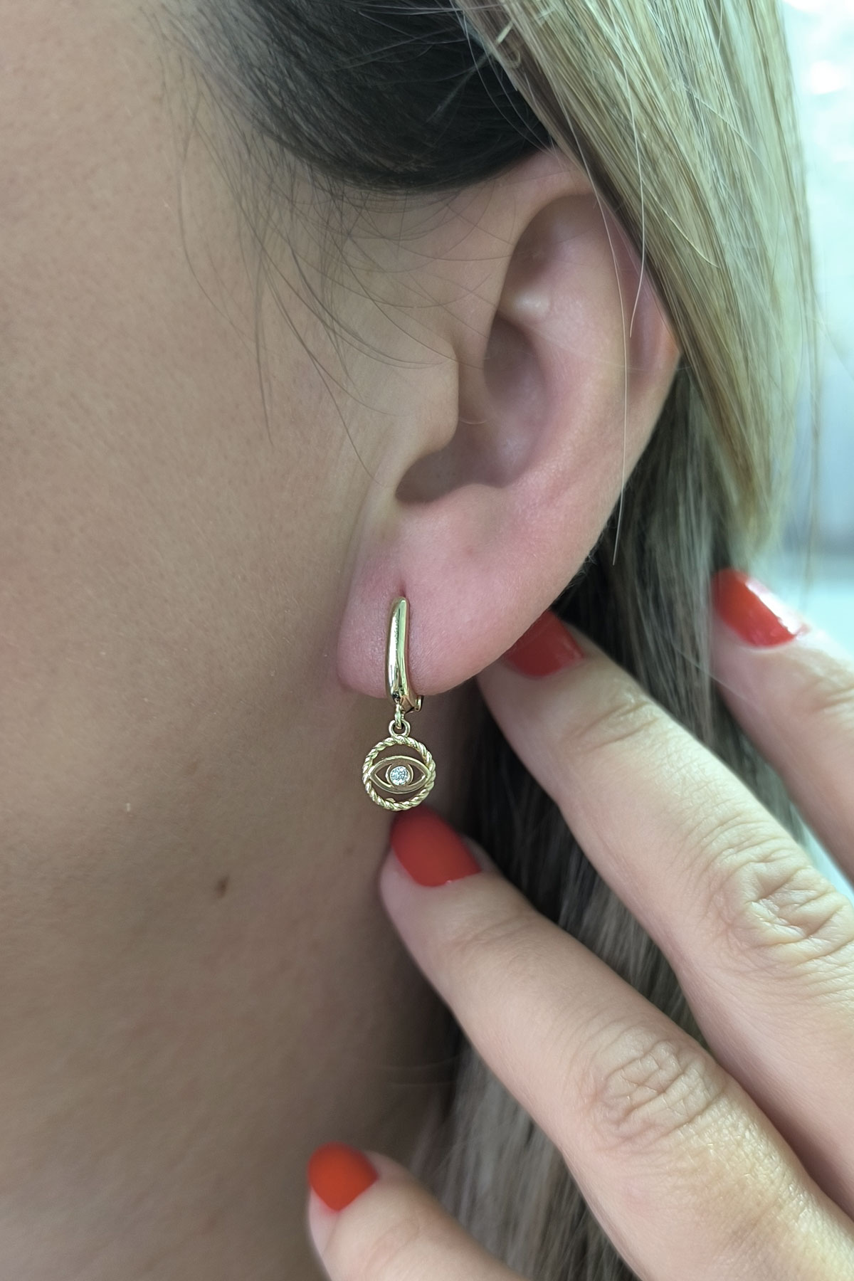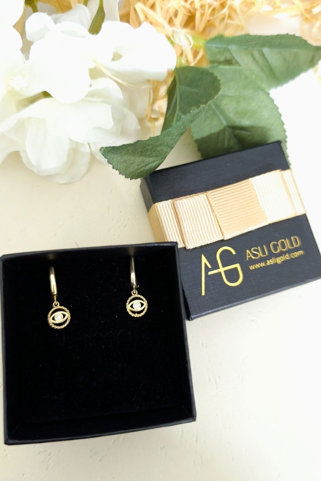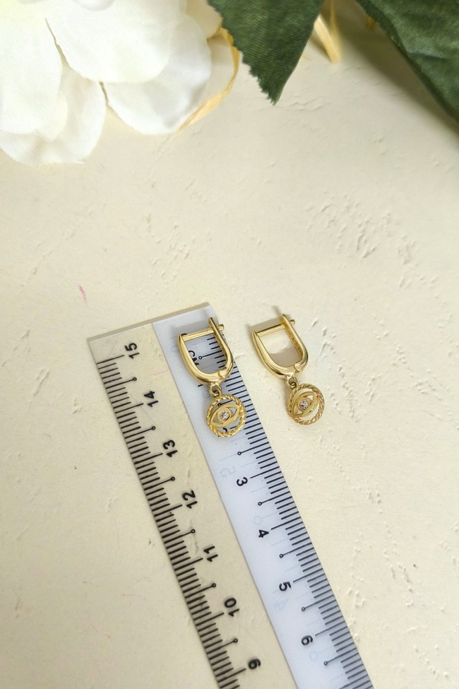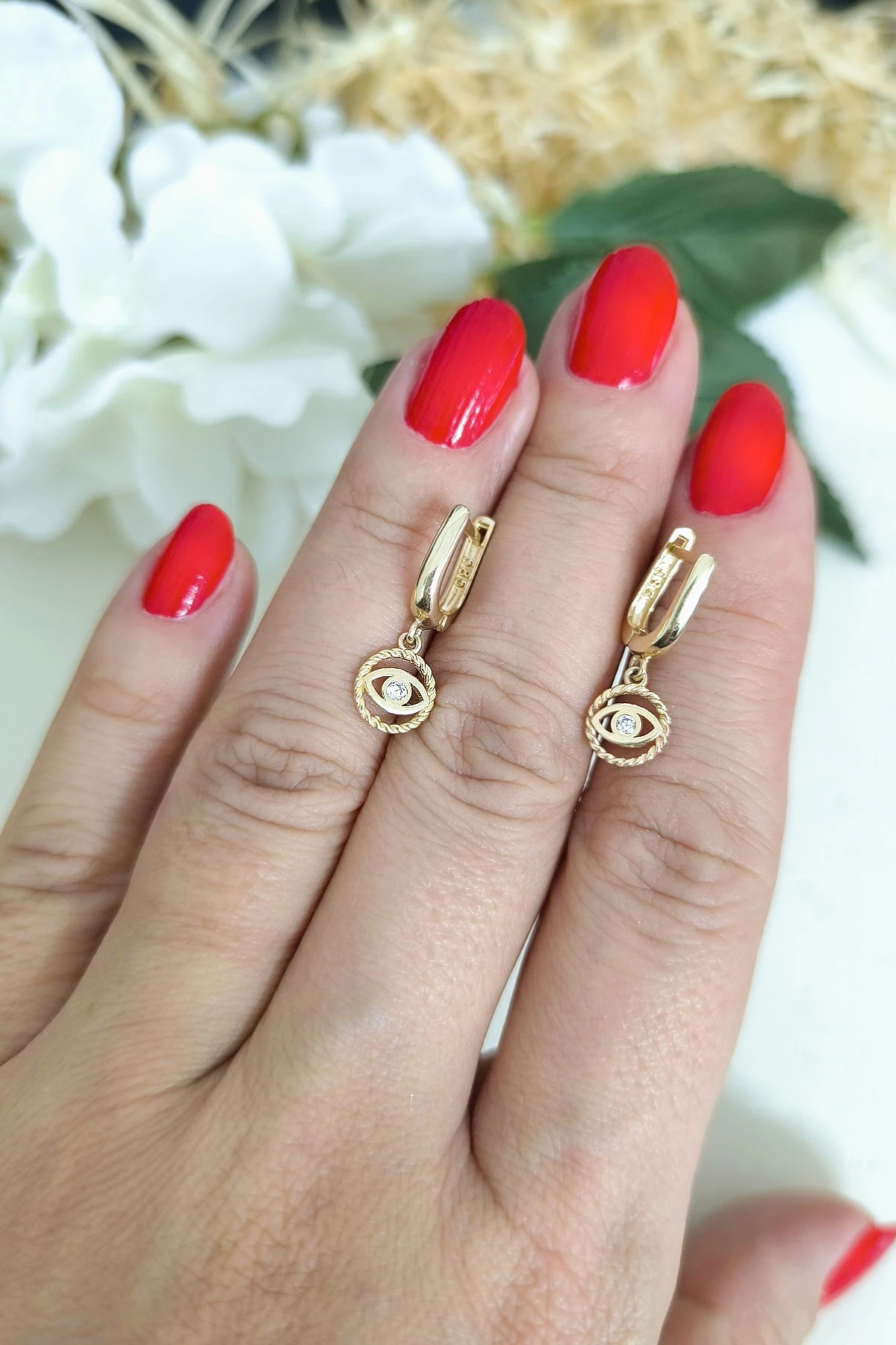2.60 Gram Ağırlığında 2.3 Cm Minimal Sallantılı Model Zirkon Taşlı Günlük, Modern Ve Şık Bir Duruşa Sahip 14 Ayar Altın Kadın Yuvarlak Göz Küpe.