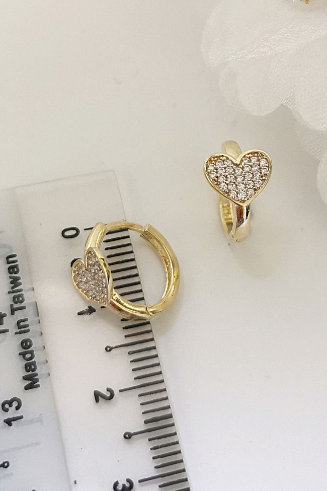 1.2 Cm boyunda zirkon taş detaylı ışıl ışıl 14 ayar 1.65 gr ağırlığında altın halka kalpli model çocuk küpesi.