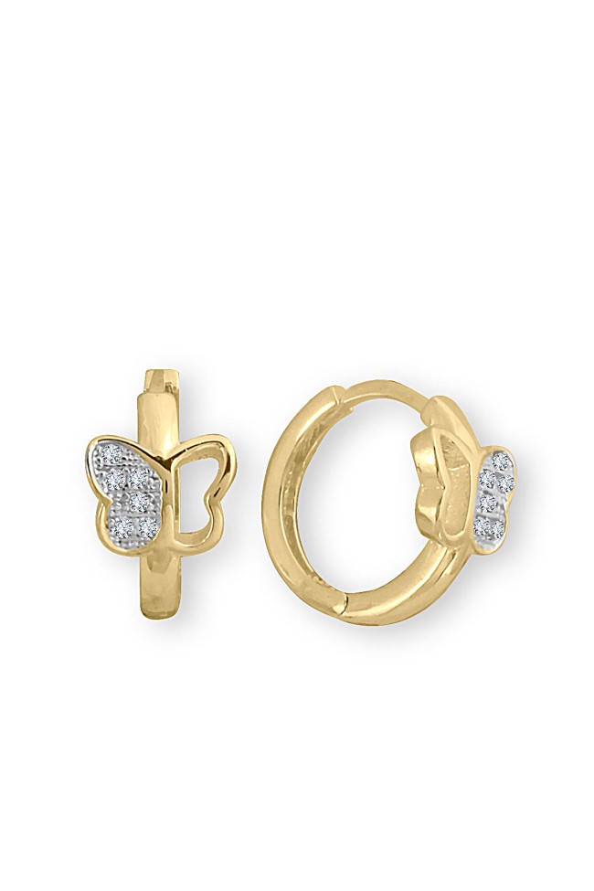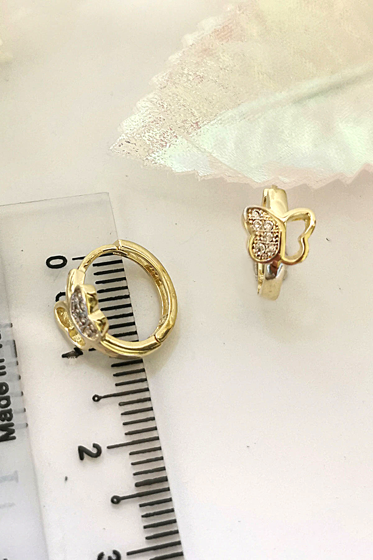 1 Cm boyunda zirkon taş detaylı ışıl ışıl 14 ayar 1.85 gr ağırlığında altın halka kelebek model çocuk küpesi.
