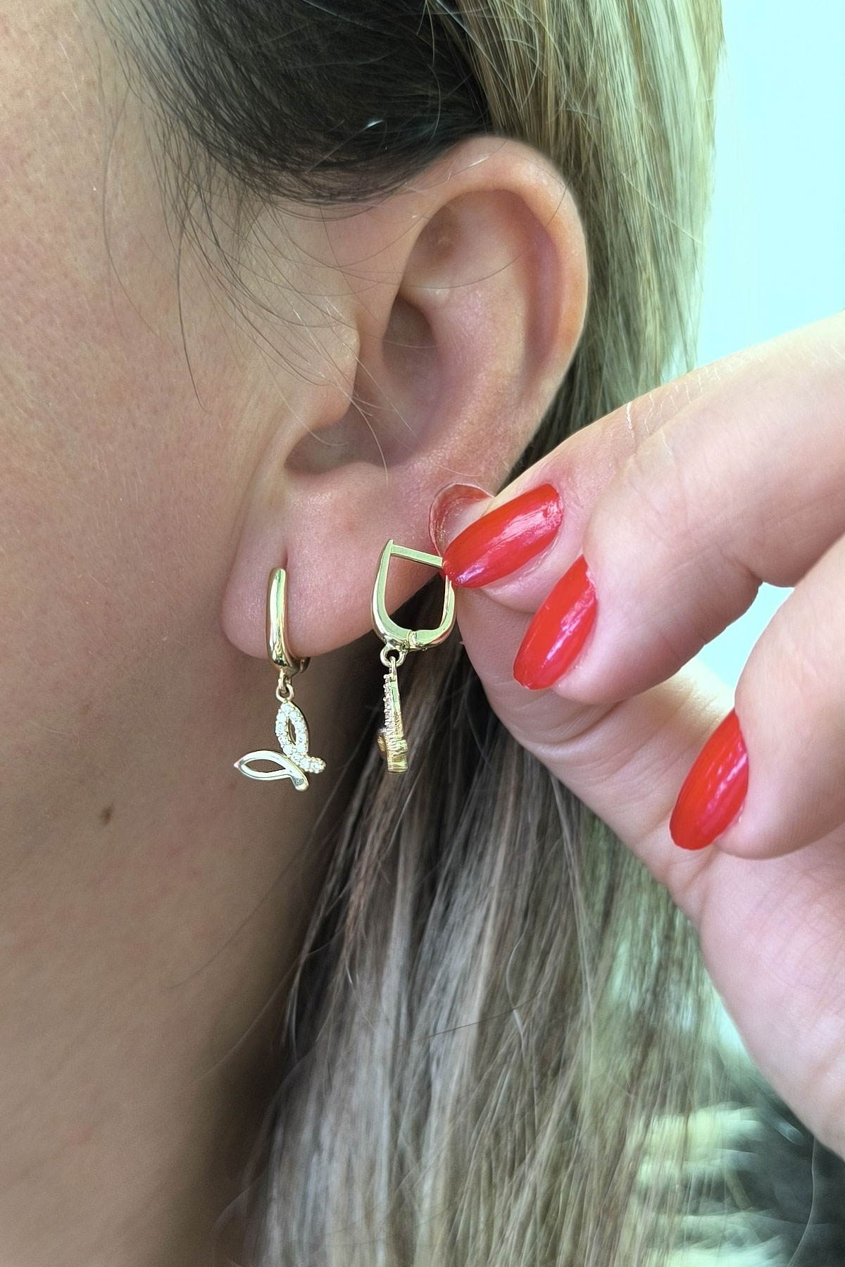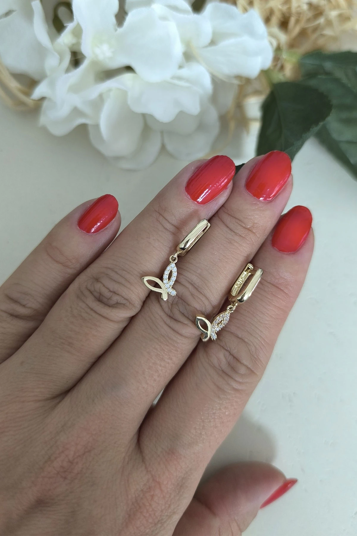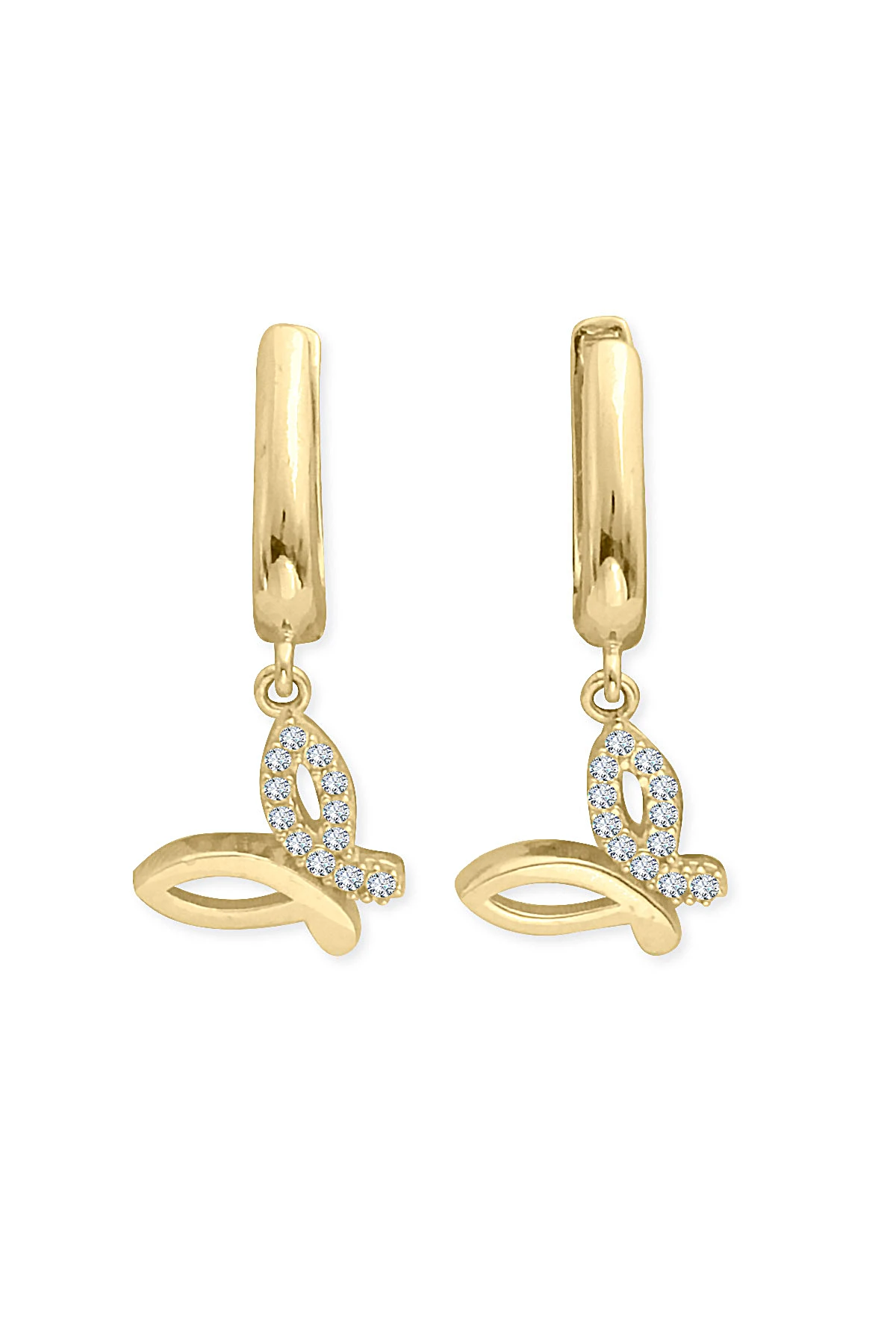 2.70 Gram Ağırlığında 2.3 Cm Minimal Sallantılı Kelebek Model Zirkon Taşlı Günlük, Modern Ve Şık Bir Duruşa Sahip 14 Ayar Altın Kadın Küpe.