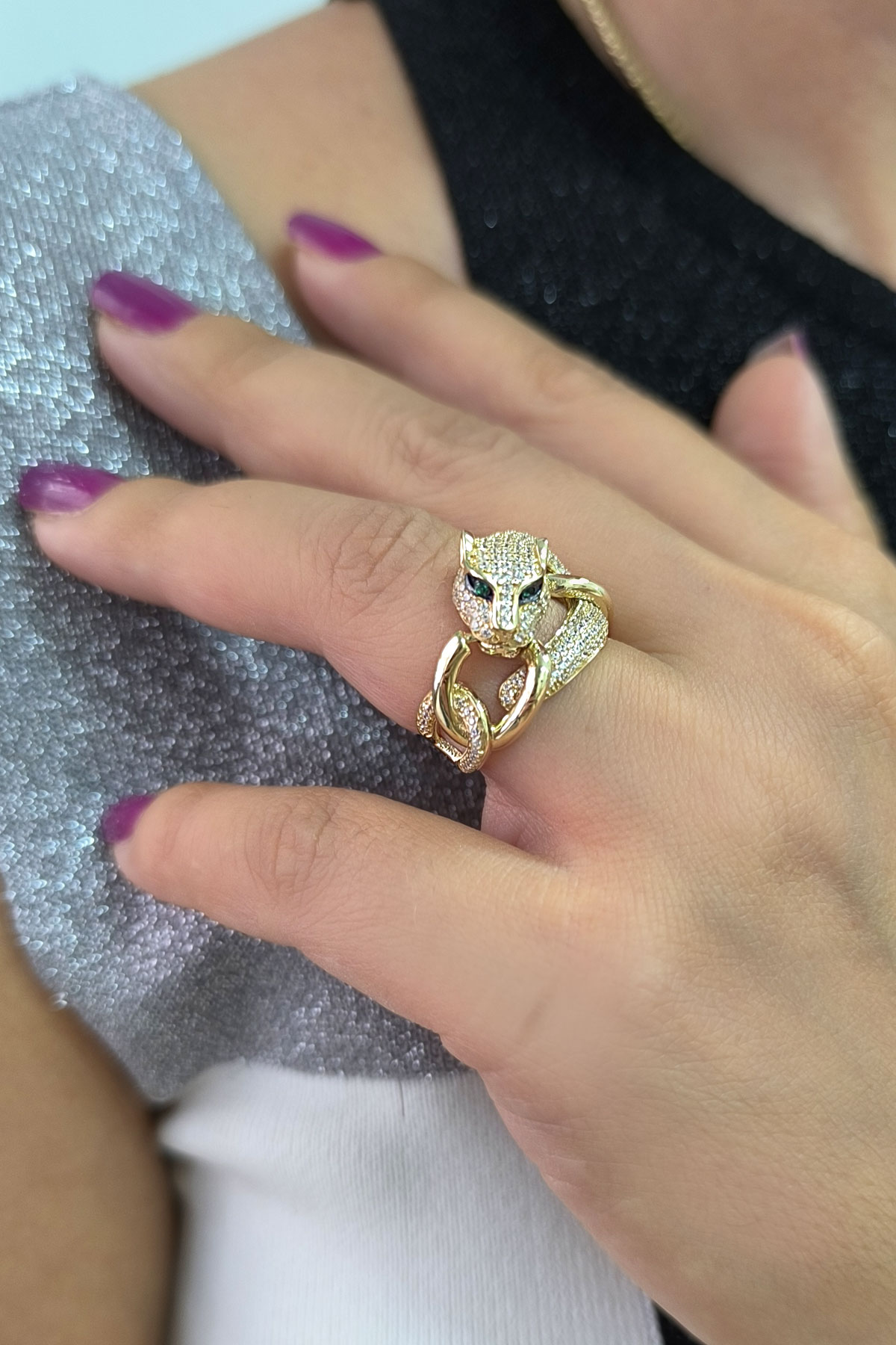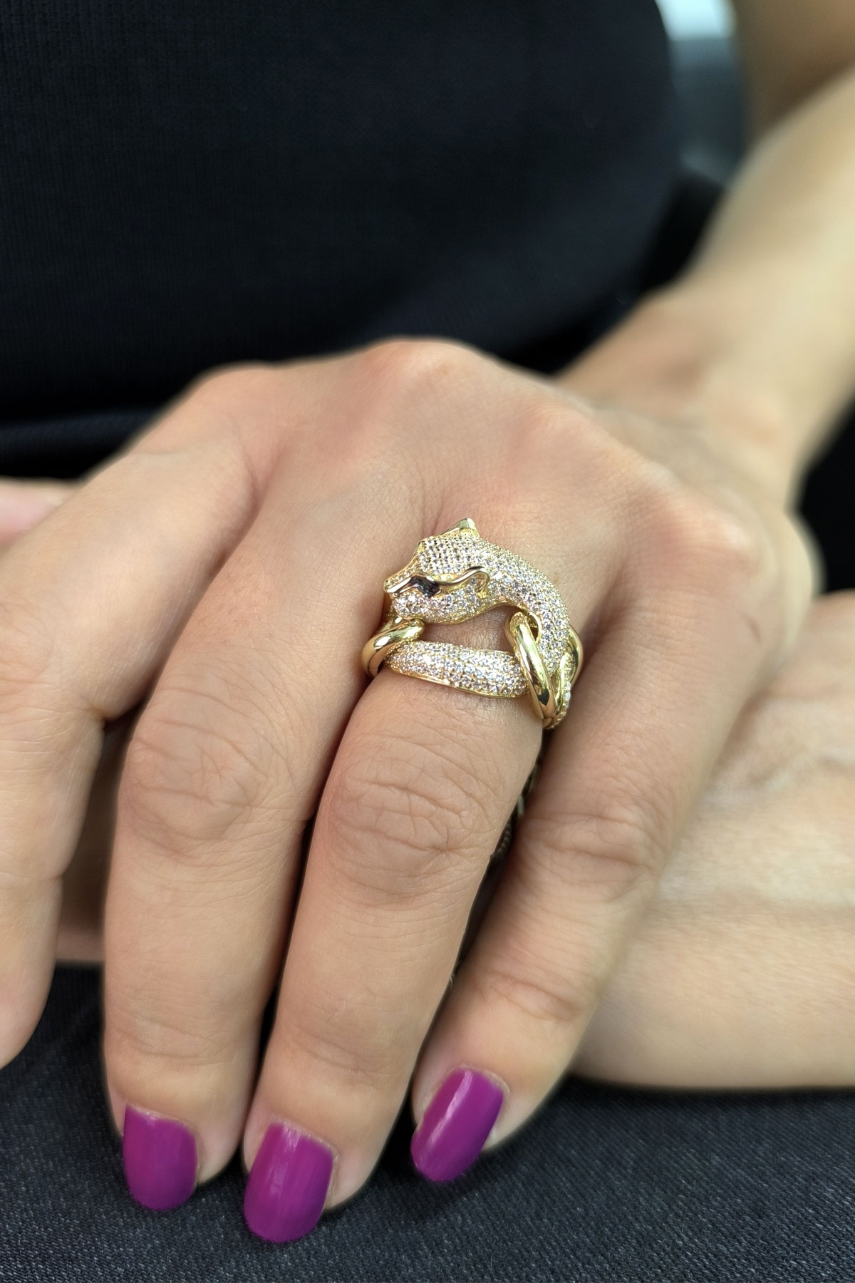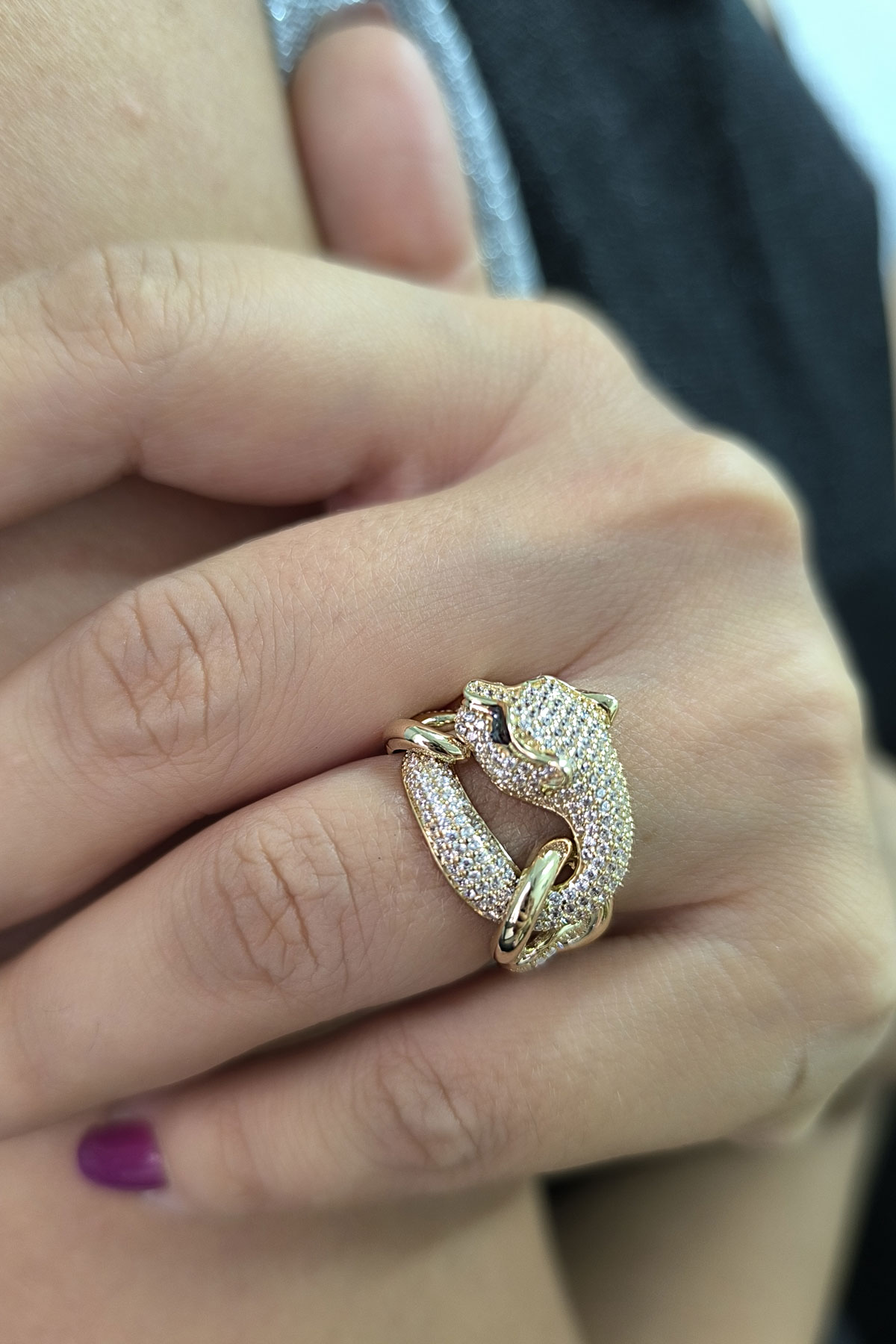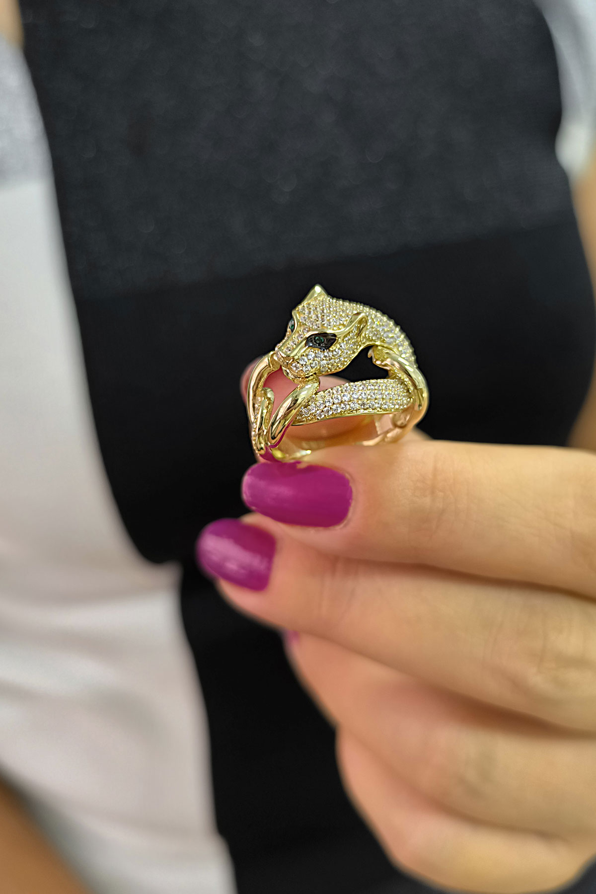 6.65 Gr. Taşlı Işıl Işıl Panter Modeli İle Şık Modern Ve Günlük Kullanıma Uygun 14 Ayar  Altın Kadın Yüzük.