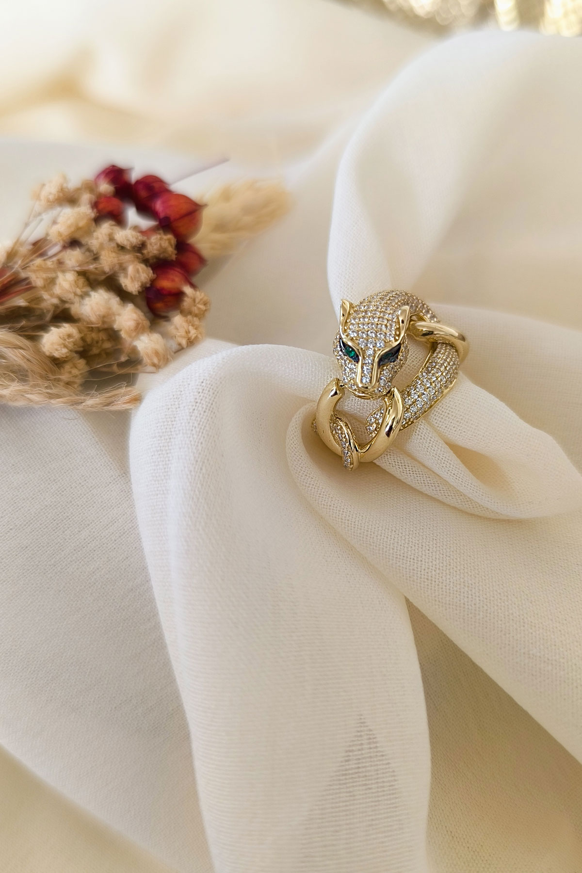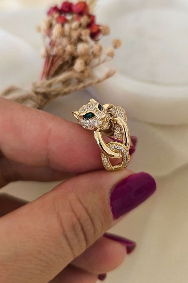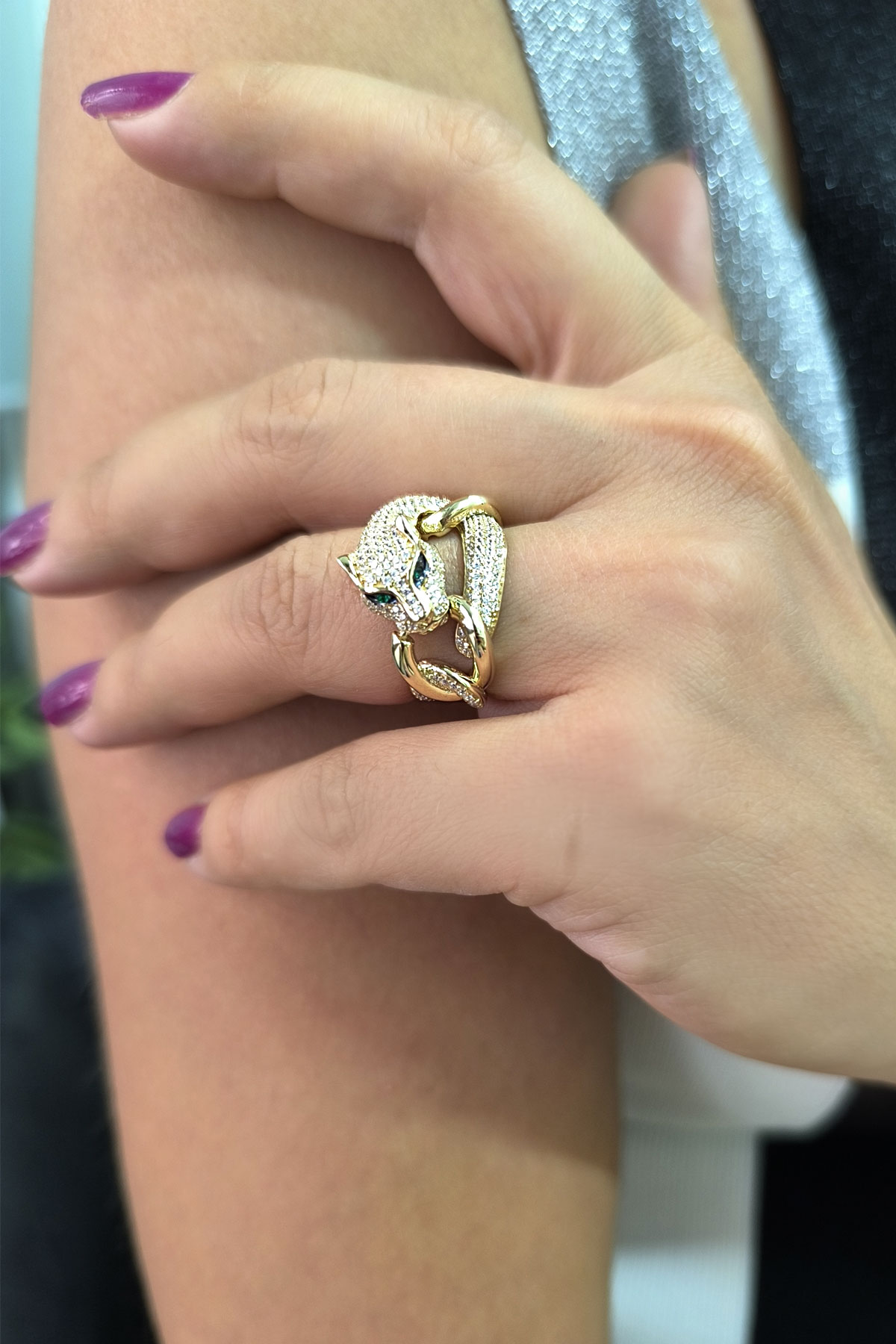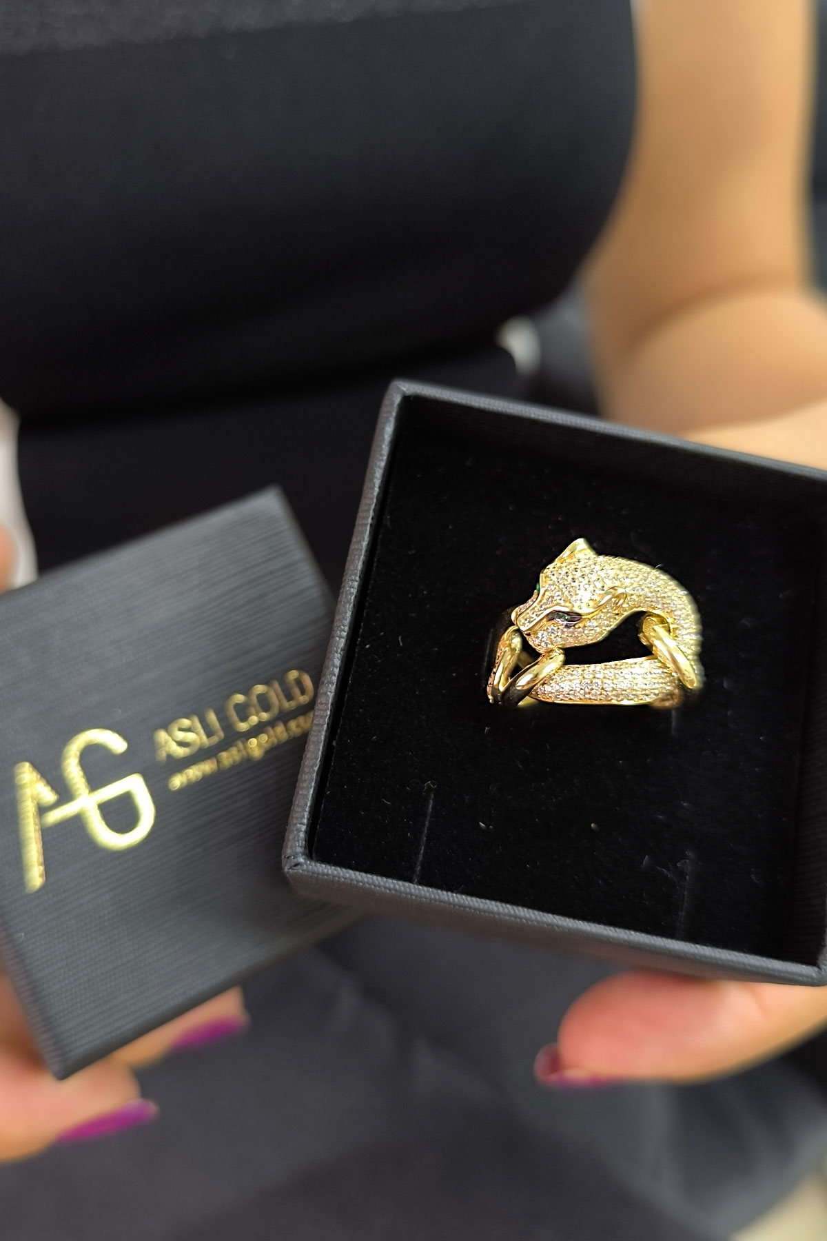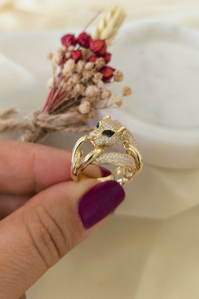 6.65 Gr. Taşlı Işıl Işıl Panter Modeli İle Şık Modern Ve Günlük Kullanıma Uygun 14 Ayar  Altın Kadın Yüzük.