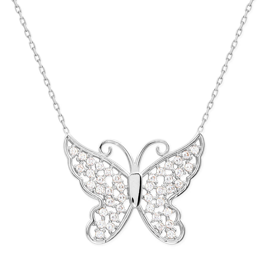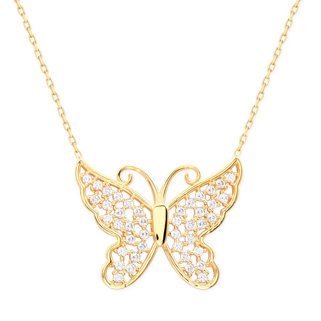 14 Ayar altın zirkon ışıl ışıl taşlar ile estetik bir tasarımla satışa sunulan sade model kelebek kolye. Günlük kullanıma uygundur.
