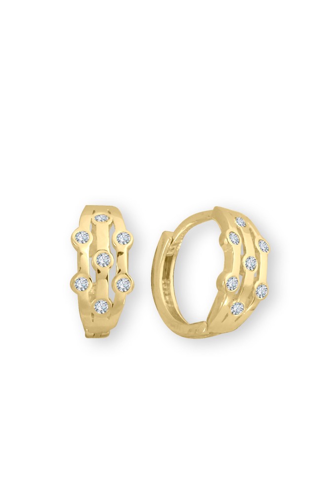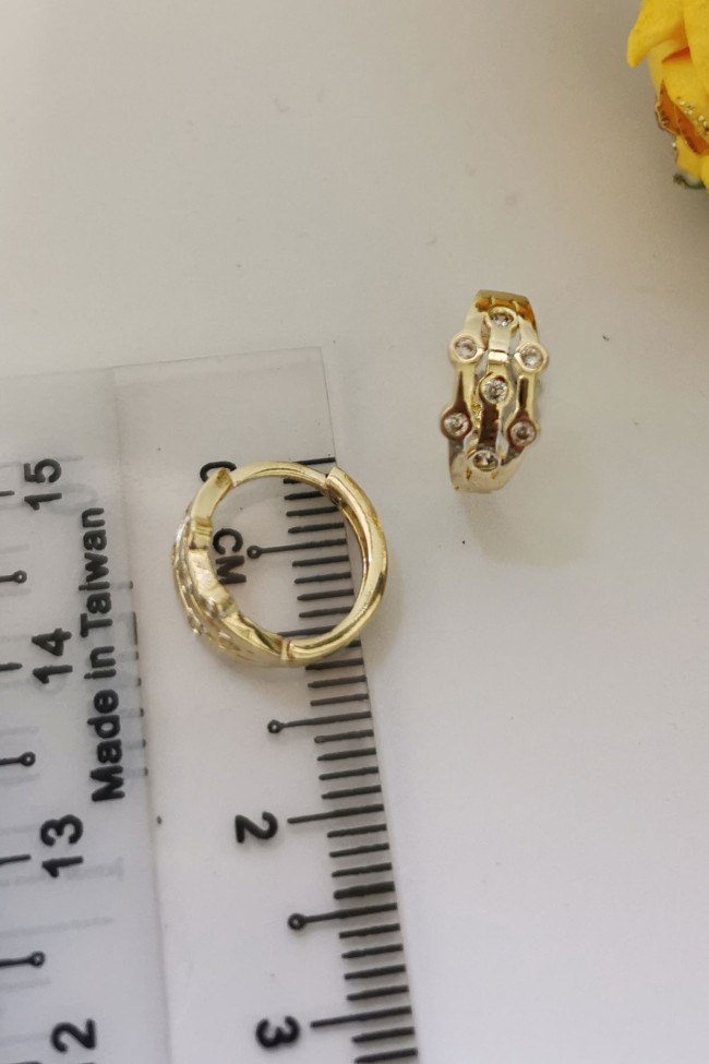 1 Cm boyunda zirkon taş detaylı ışıl ışıl 14 ayar 1.60 gr ağırlığında altın halka taşlı üçlü model çocuk küpesi.