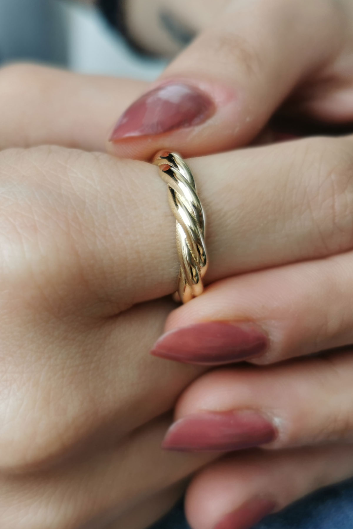 14 ayar sarı altın trend tasarımıyla günlük kullanıma uygun parmağınızda stilinize hava katacak 2.10 gram ağırlığında taşsız burgu yüzük.