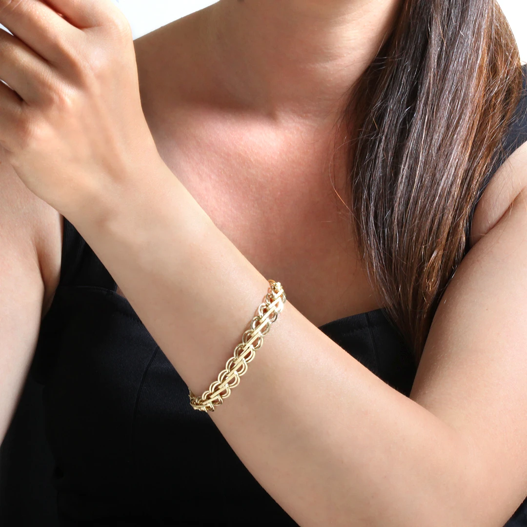 14 Ayar altın 6,00 gram ağırlığında 19,5 cm boyunda tasarımıyla severek kullanacağınız, şık ve modern ortaları çubuk detaylı tarzınıza muhteşem uyum sağlayacak taşsız altın kadın bileklik.
