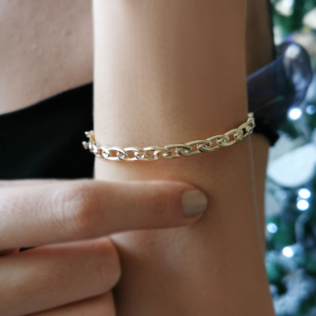 8.80 Gram Ağırlığında 14 Ayar Taşsız Geçmeli Halka Detaylı Luna Altın Kelepçe / Bilezik.