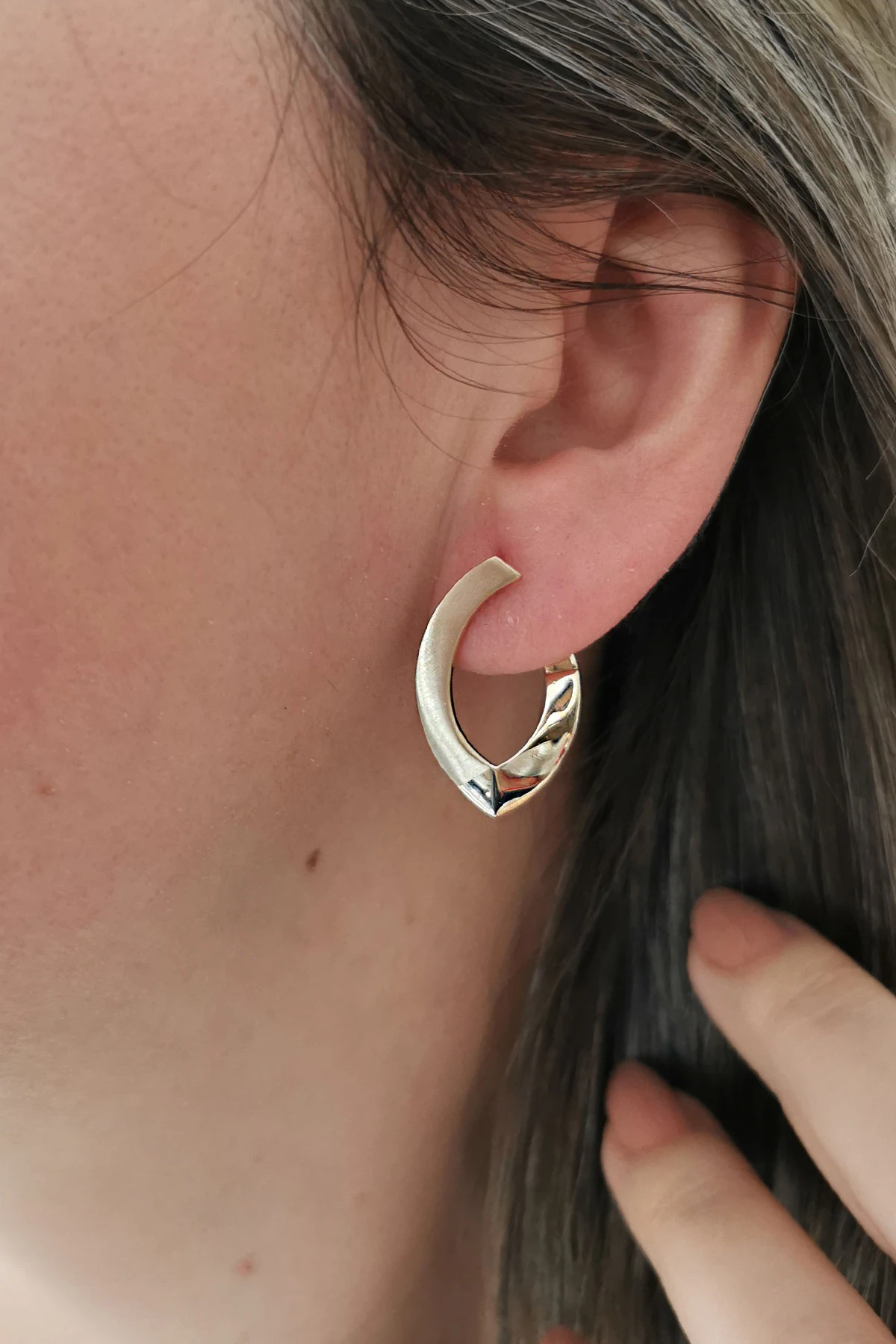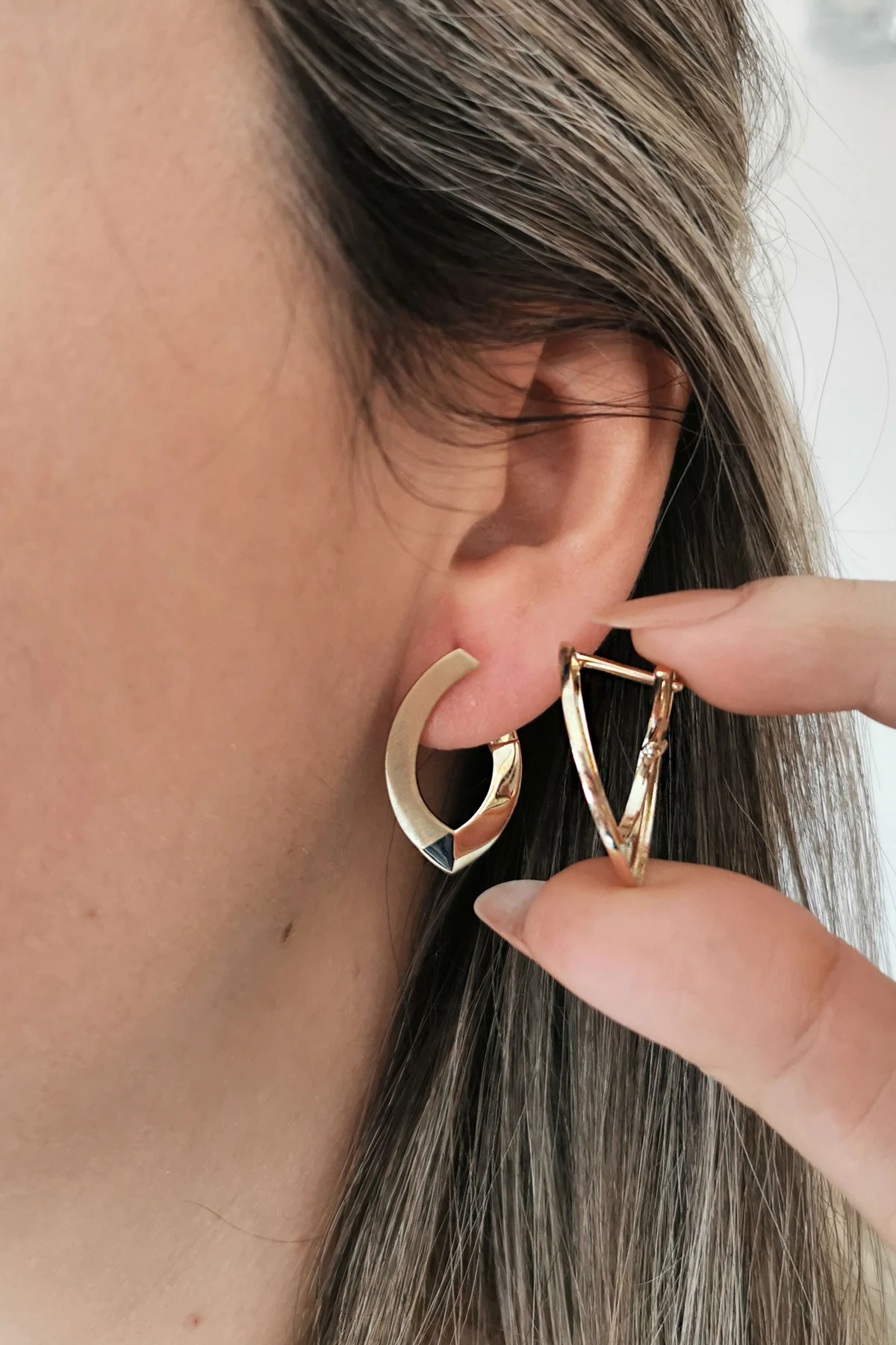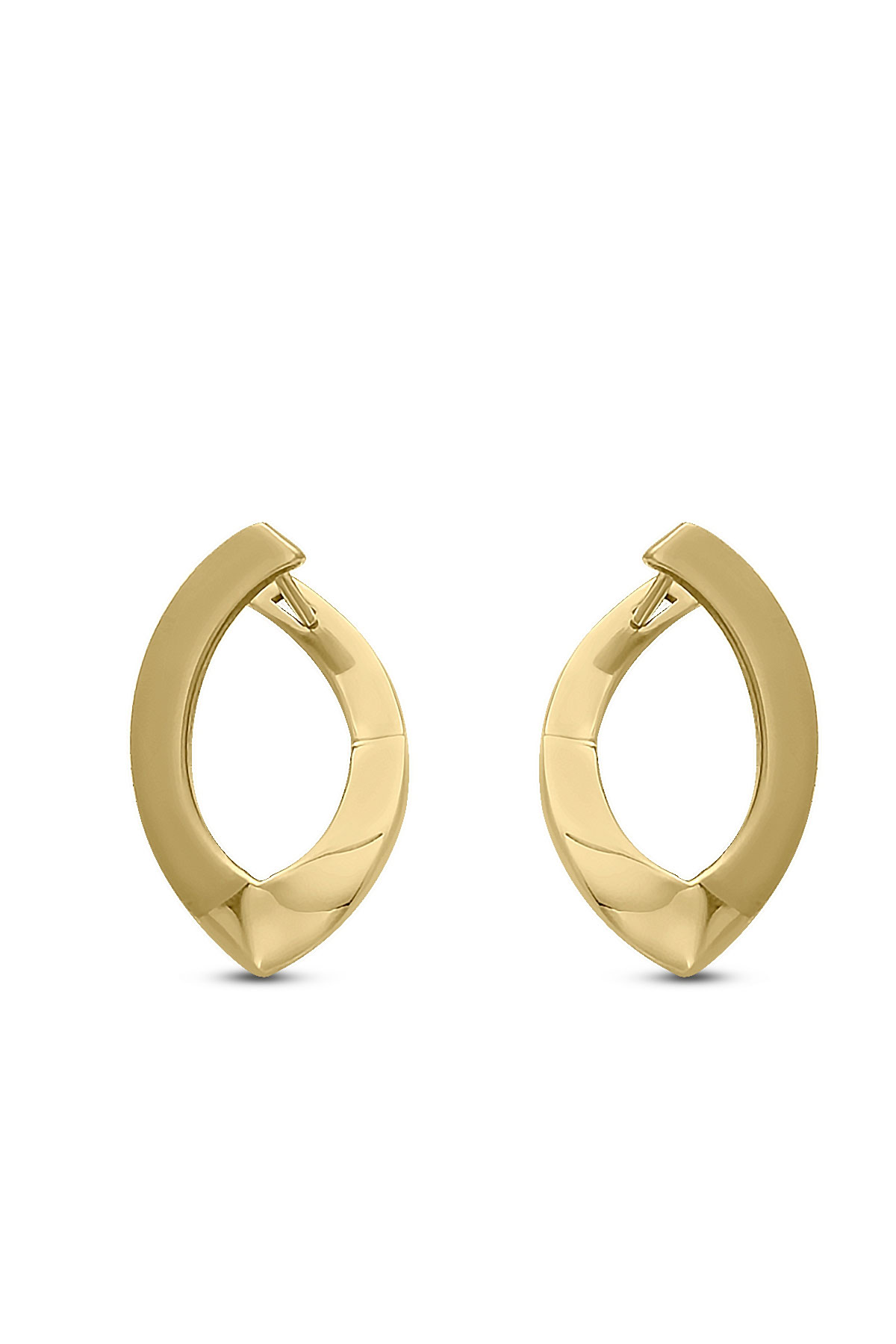 14 Ayar 2.8 cm modern, şık ve farklı tasarımı ile şahane modern bir duruşa da sahip gösterişli ve sade günlük kullanıma uygun 4.80 gram ağırlığında mekik model taşsız altın küpe.