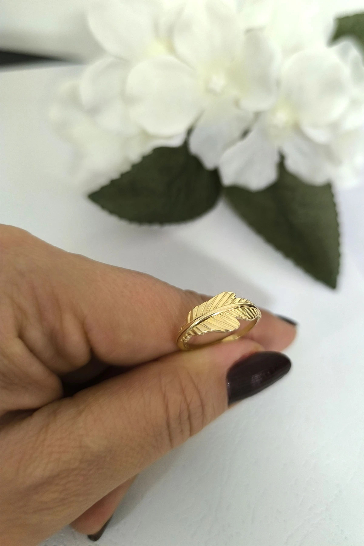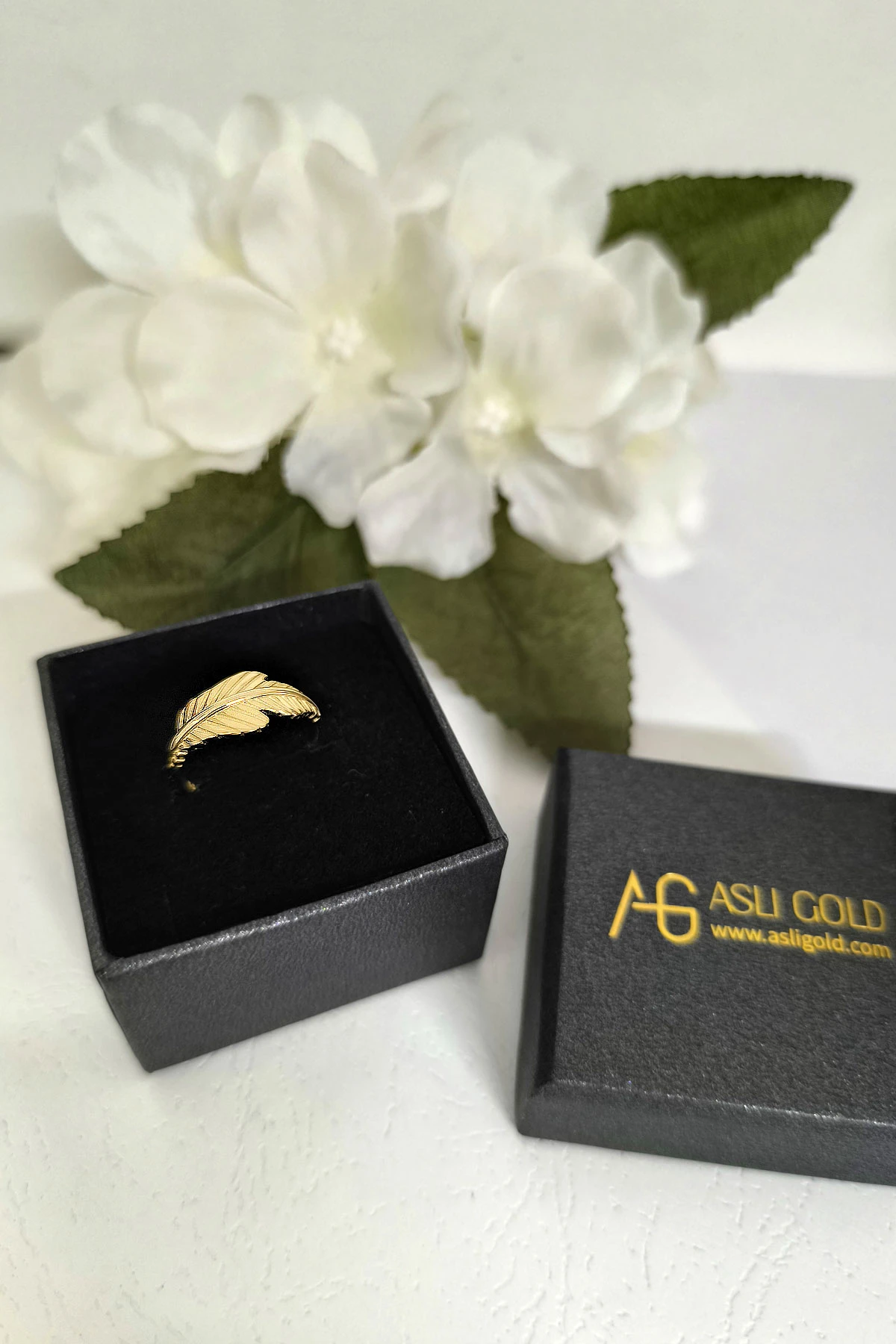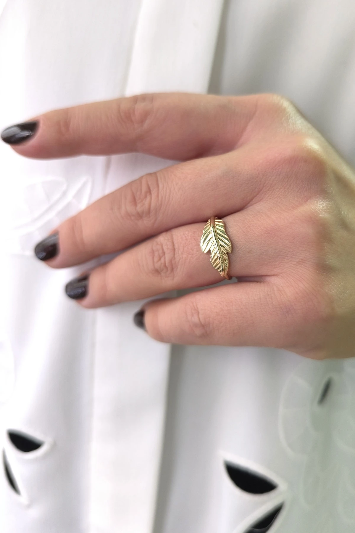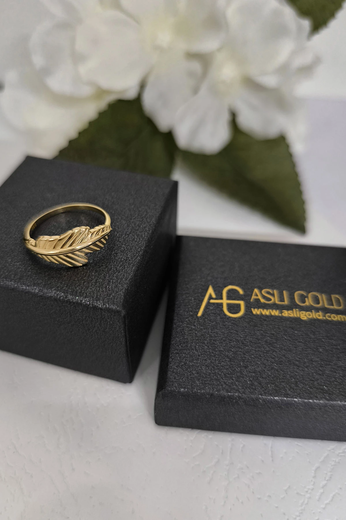 14 ayar sarı altın taşsız minimal spor tasarımıyla günlük kullanıma uygun 2.30 gram ağırlığında altın yaprak yüzük.