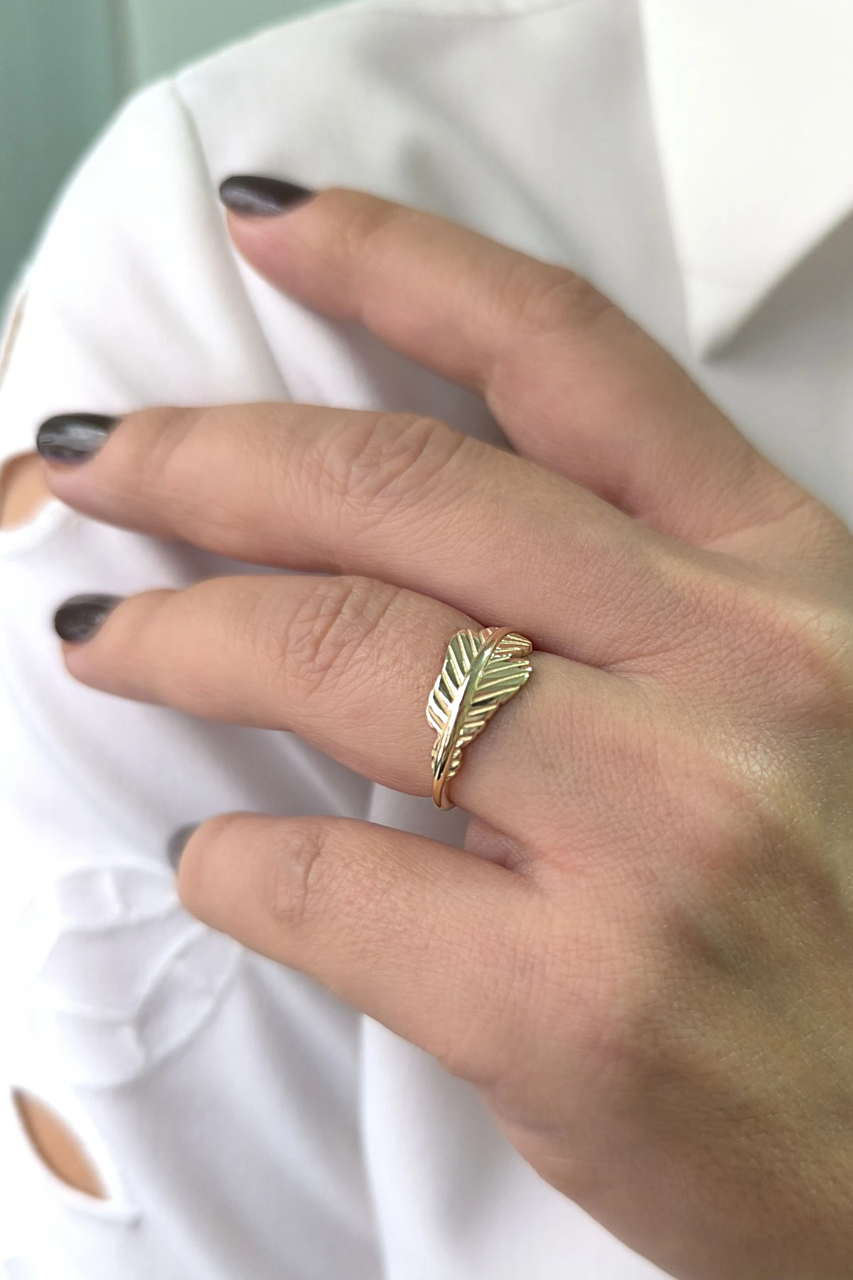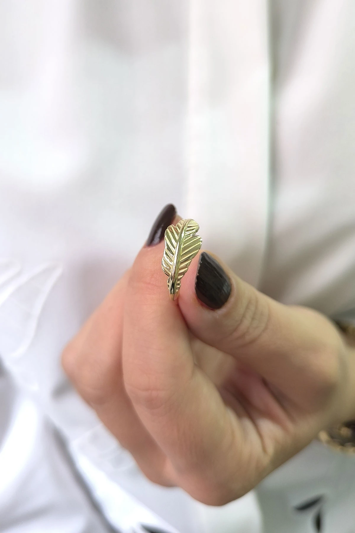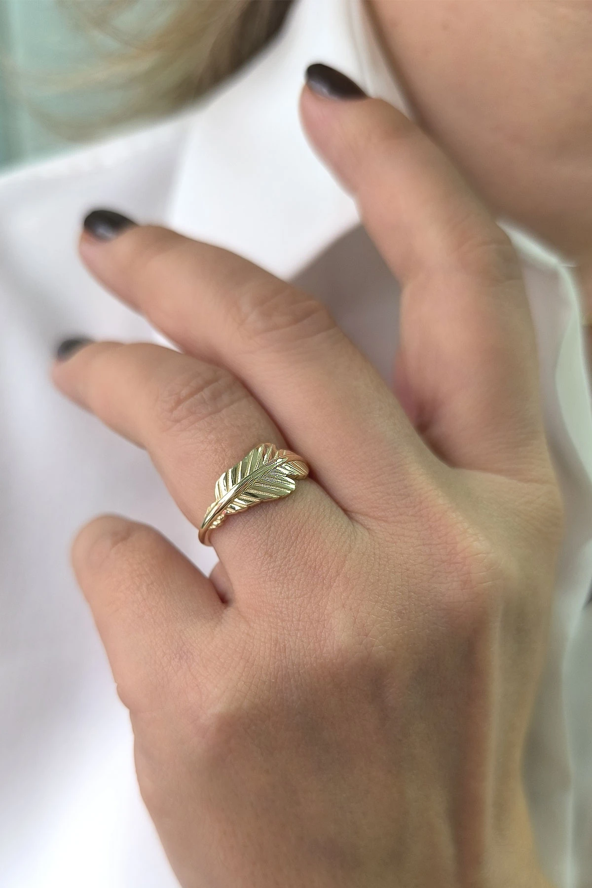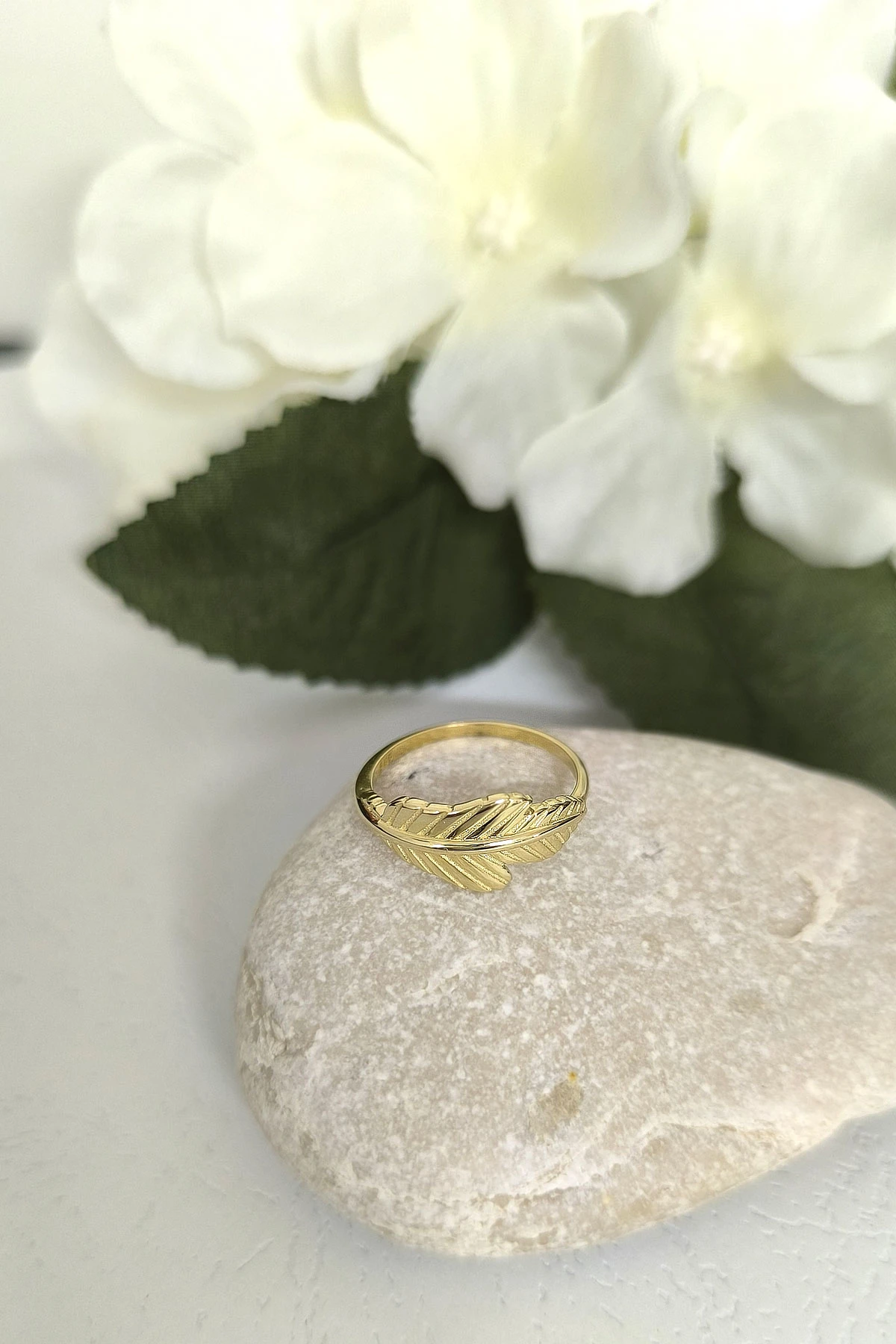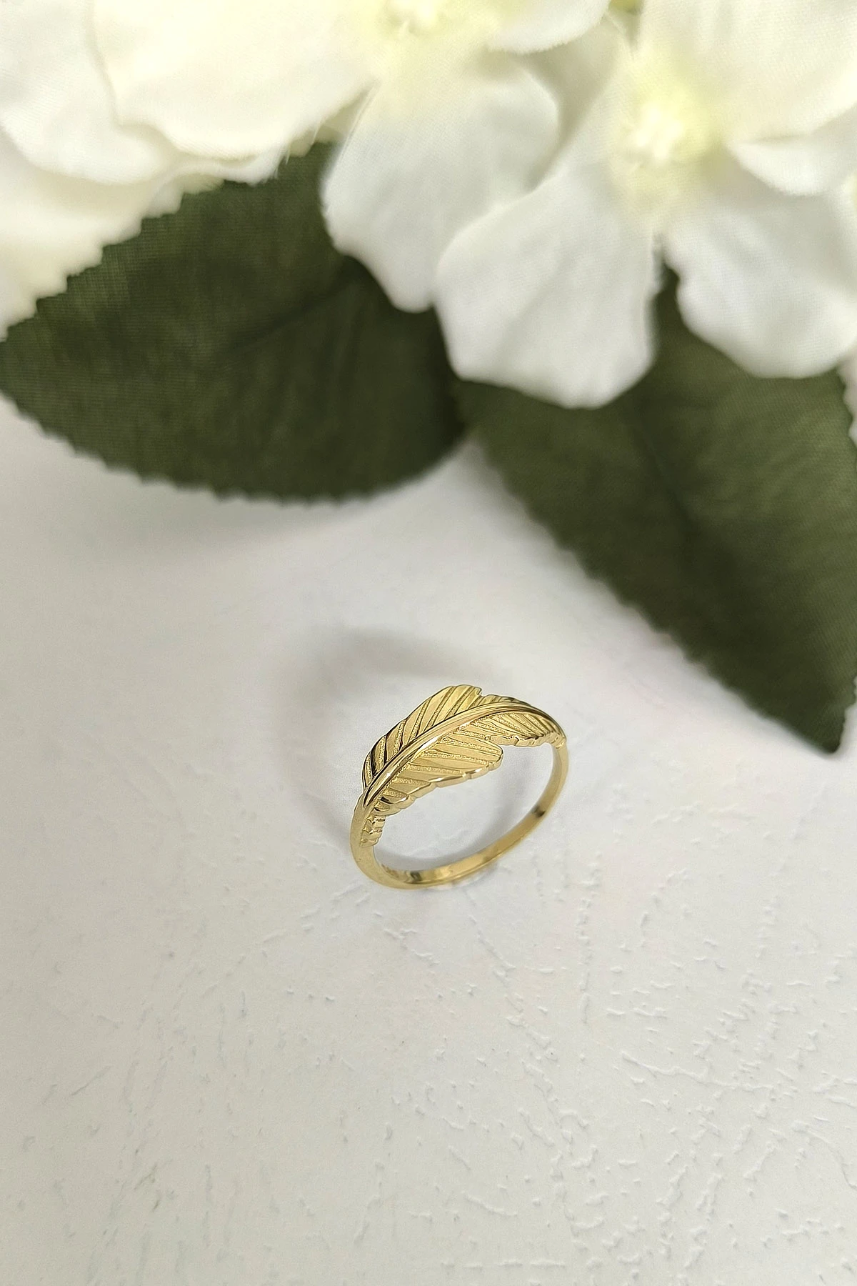 14 ayar sarı altın taşsız minimal spor tasarımıyla günlük kullanıma uygun 2.30 gram ağırlığında altın yaprak yüzük.