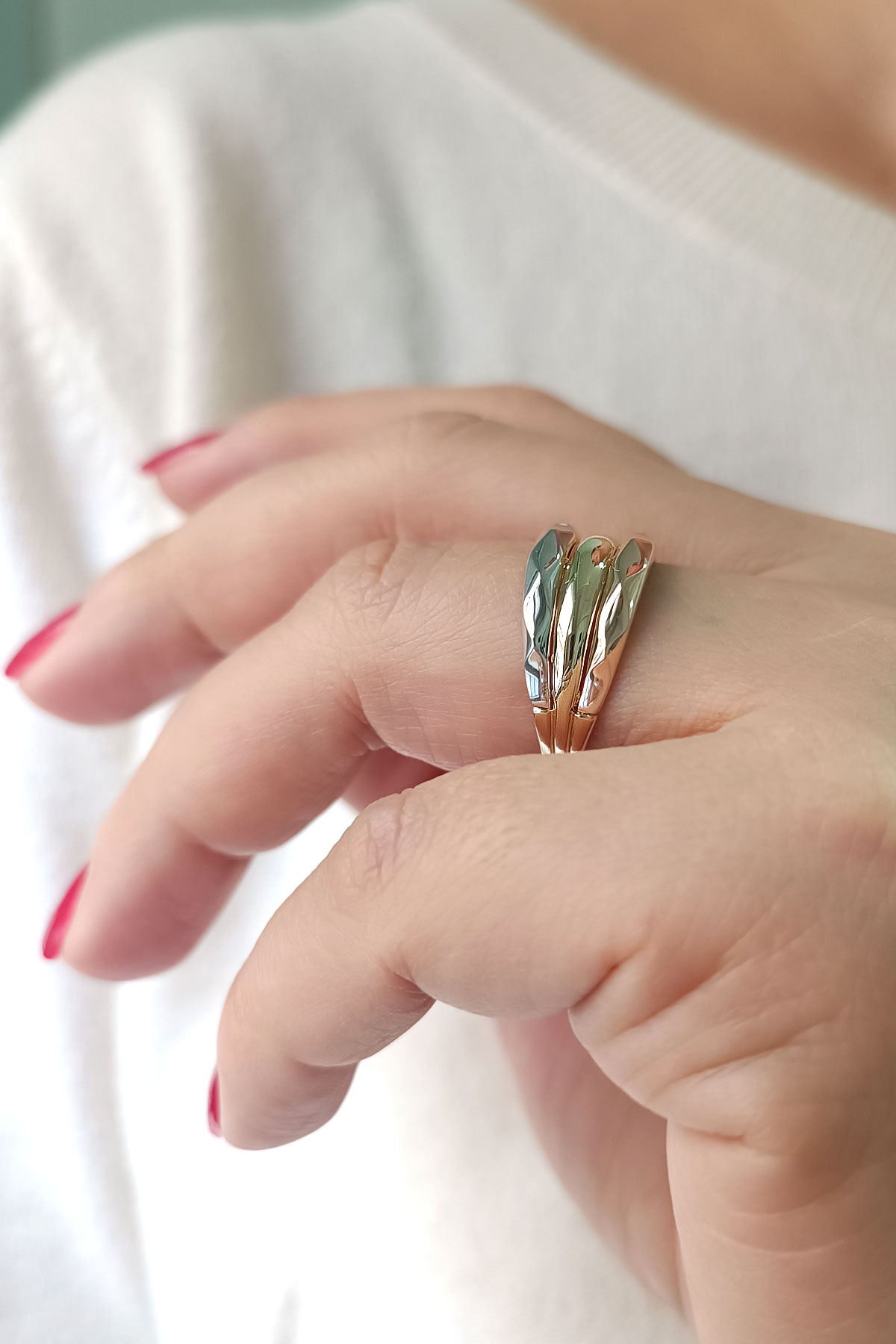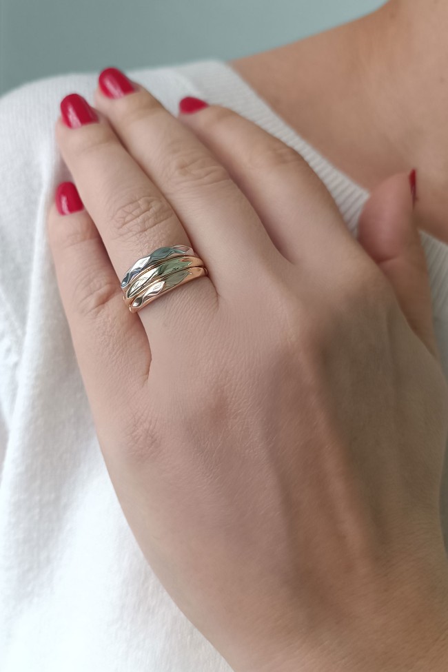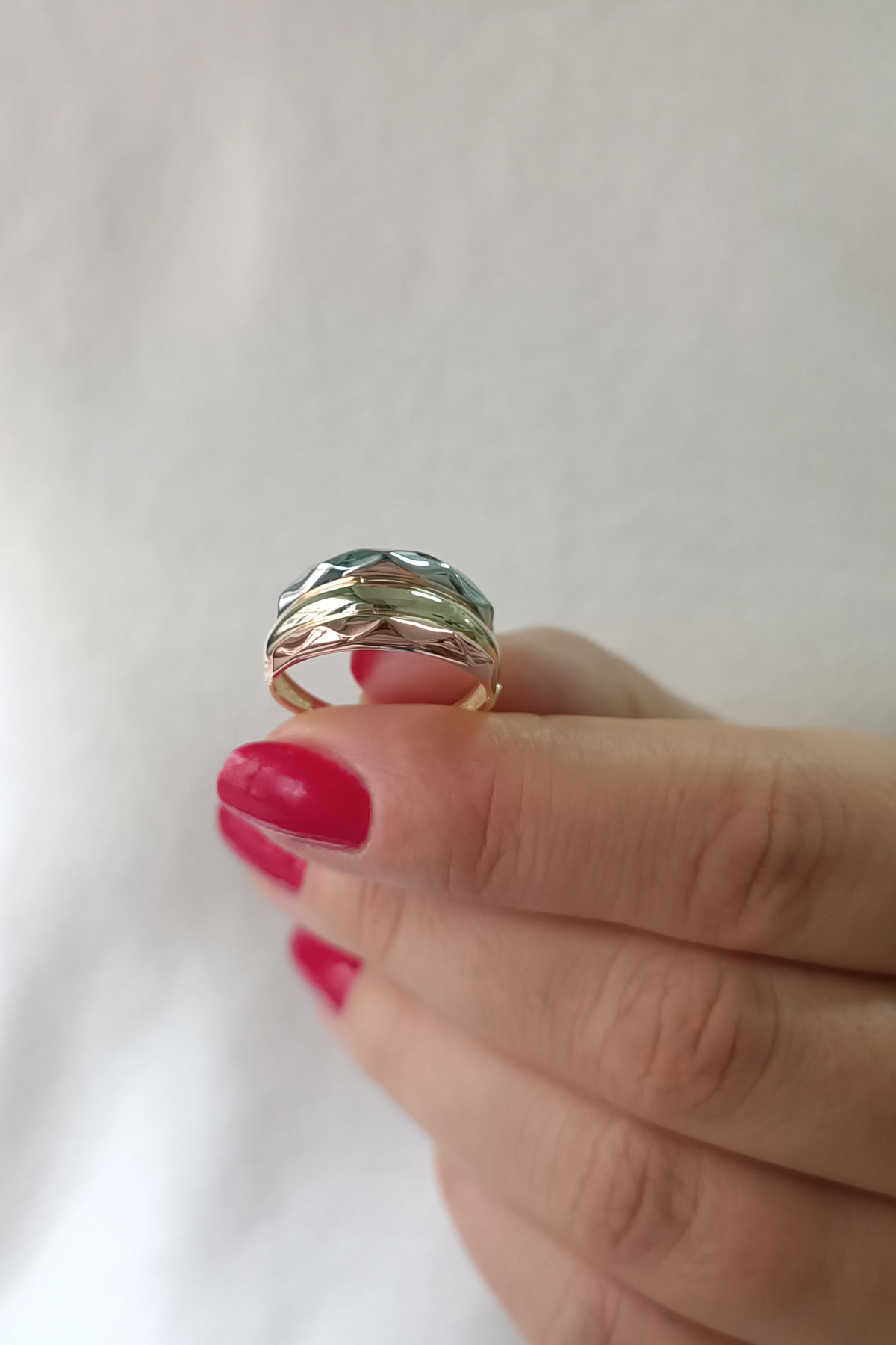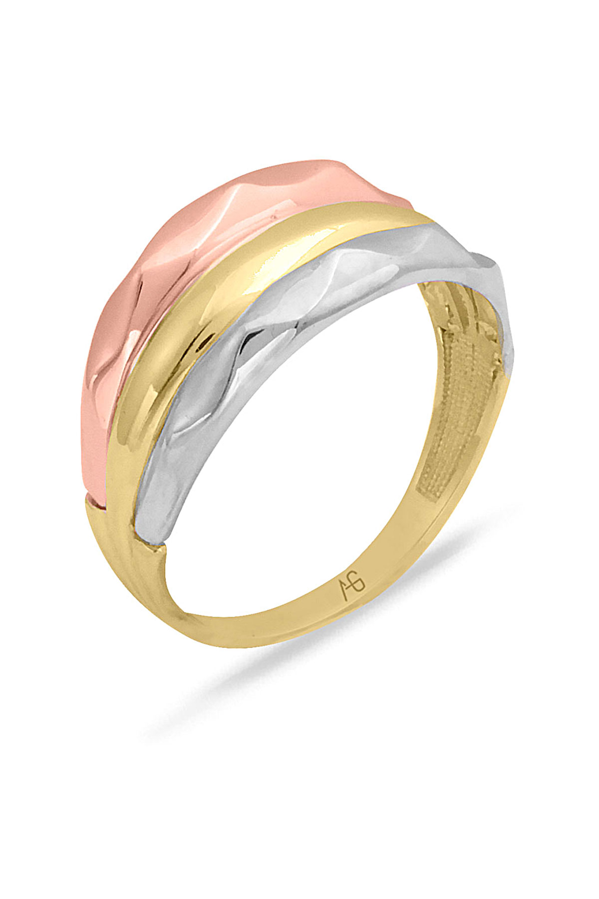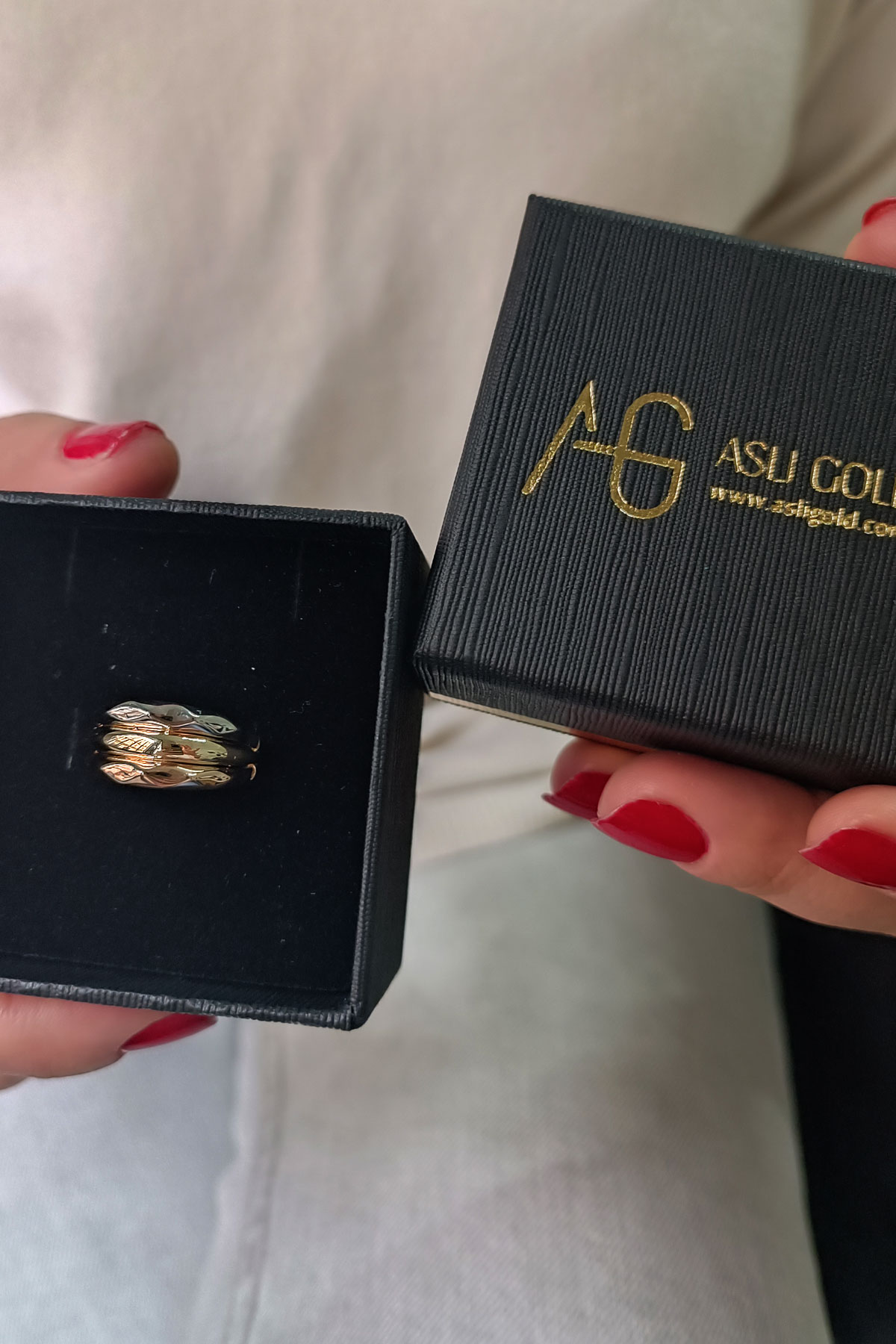 2.65 Gram Ağırlığında 14 Ayar Şık Ve Modern Tasarımıyla Çok Sevilen Üç Renkli Model Taşsız Şık Tasarım Altın Günlük Kadın Yüzük.