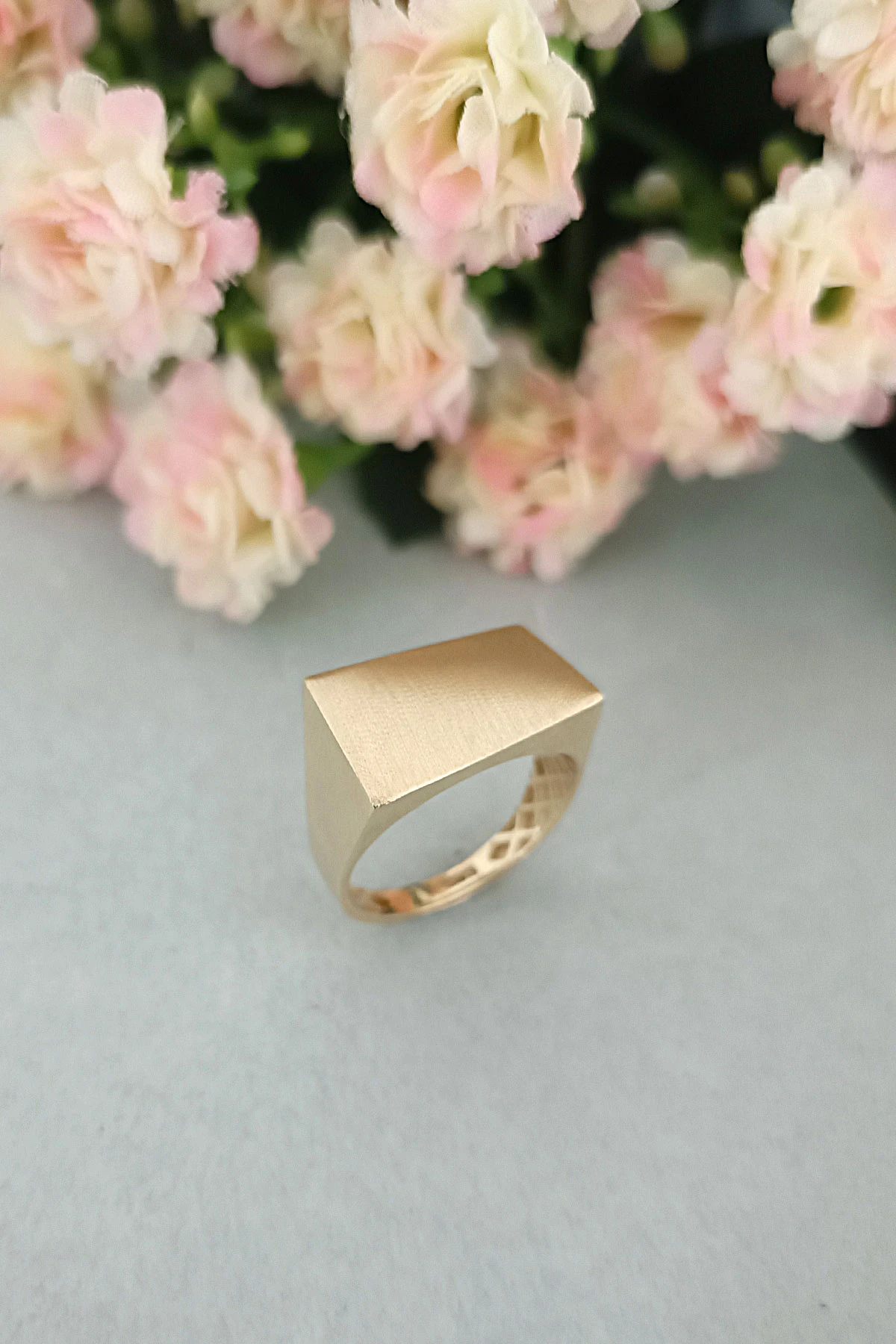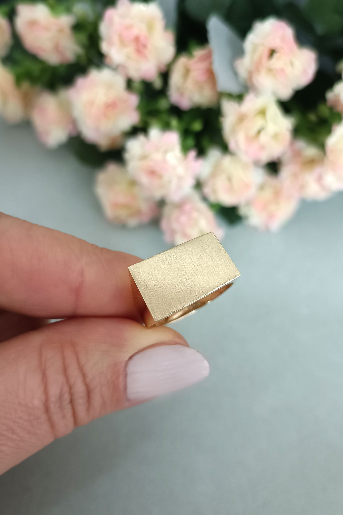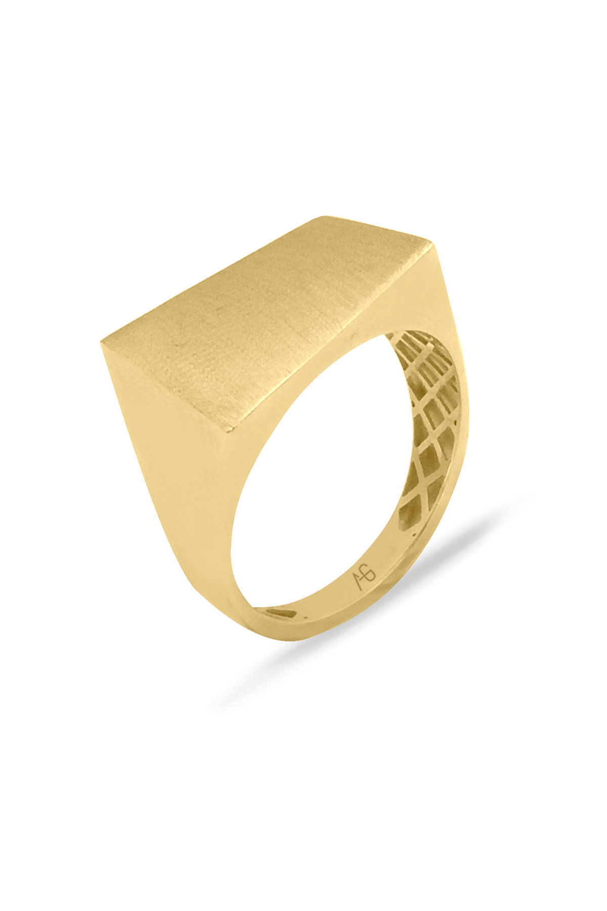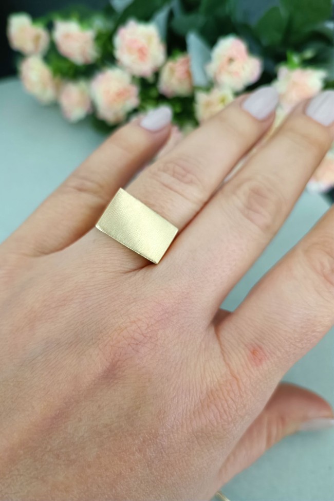 14 Ayar gösterişli ve şık tasarımı ile modern ışıl ışıl duruşa da sahip günlük kullanıma uygun 2.70 gram ağırlığında taşsız dikdörtgen tasarım altın füzyon yüzük.
