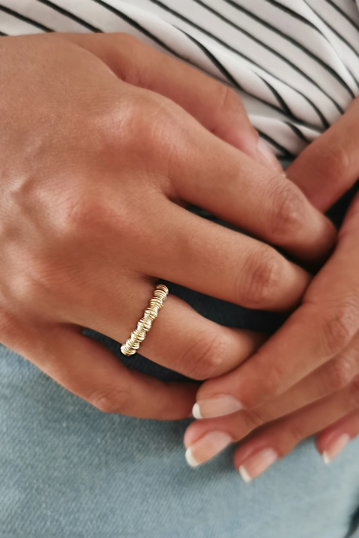 Dilediğiniz parmağınızda farklı yüzüklerinizle bir arada kullanabileceğiniz tüm gün gözleri sadeliği ile üzerine toplayacak modern ve kullanışlı bir model.