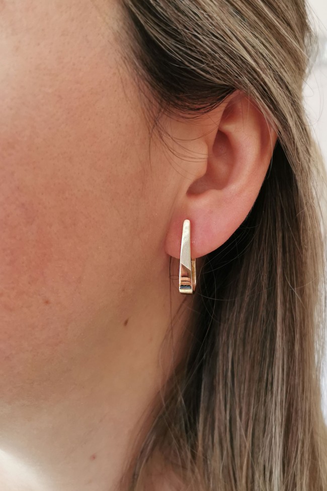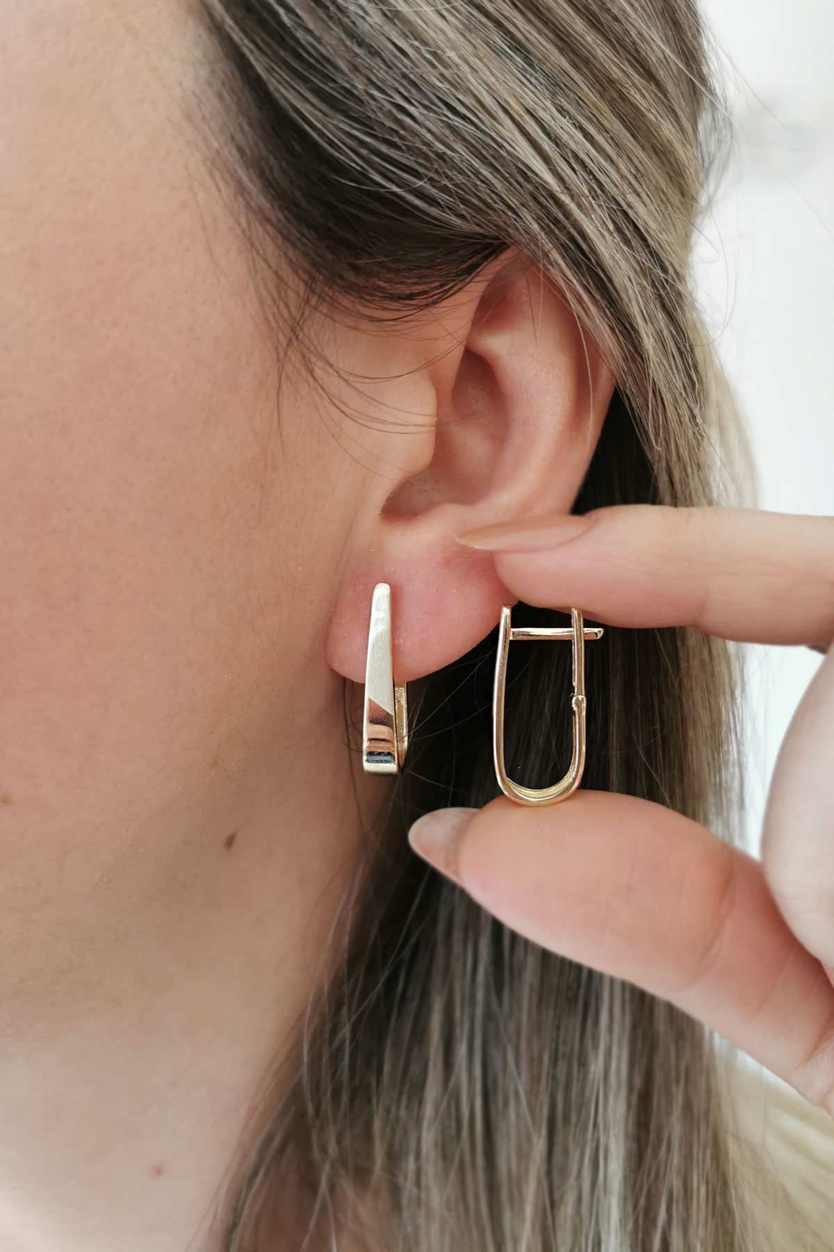 14 Ayar 2.3 cm modern, şık ve farklı tasarımı ile şahane modern bir duruşa da sahip taşsız, günlük kullanıma uygun 3.50 gram ağırlığında klasik model altın U küpe.