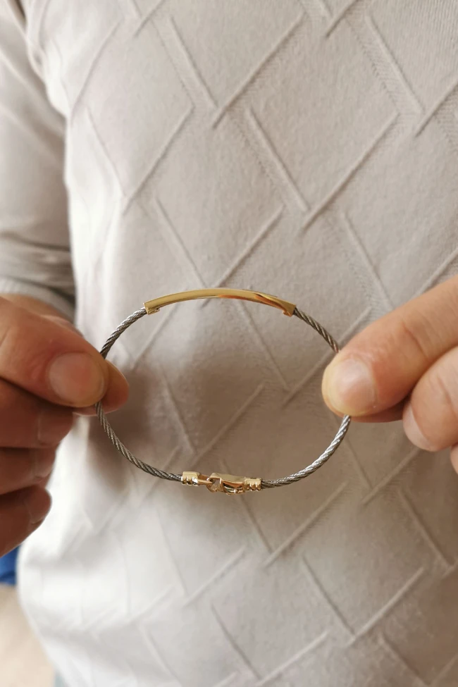 14 Ayar spor ve şık tasarımı ile modern duruşa sahip günlük kullanıma uygun 4.60 gram ağırlığında taşsız tasarımıyla oldukça tarz model altın çelik bilezik.