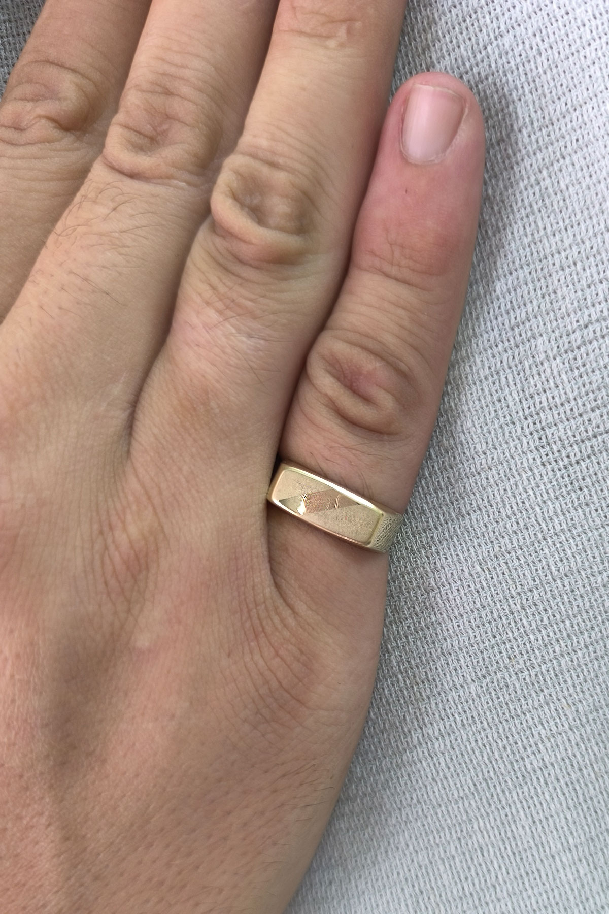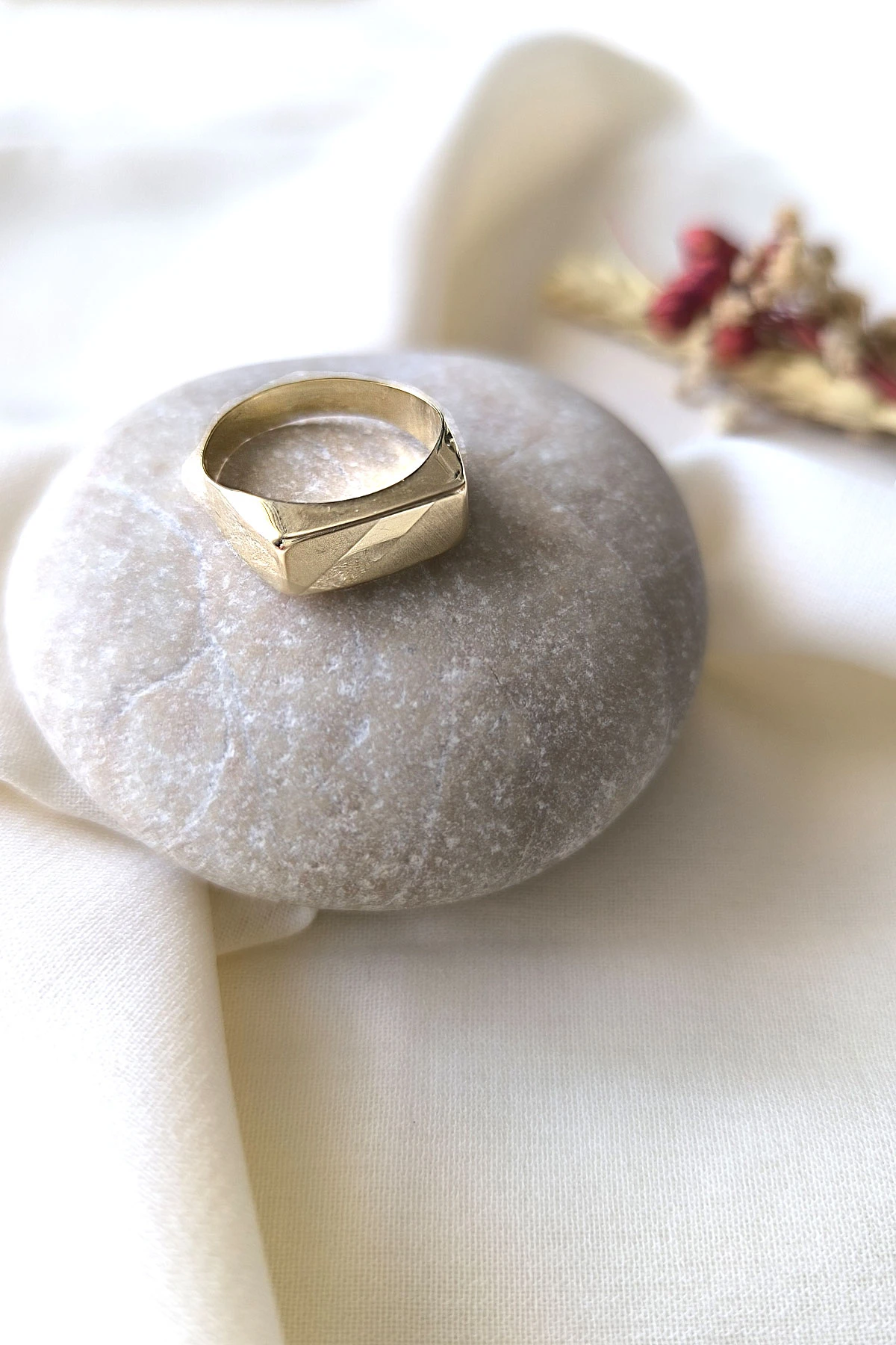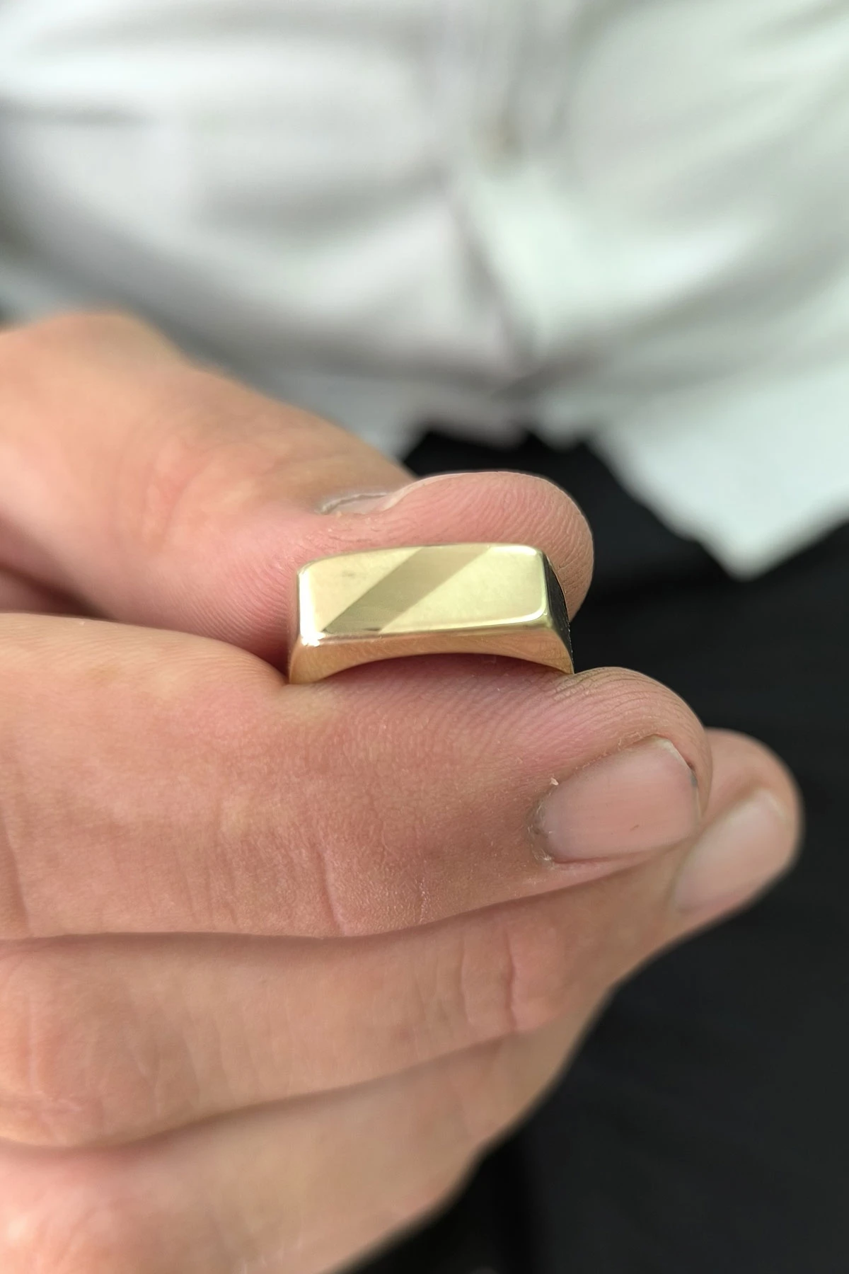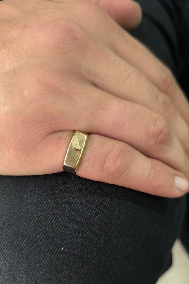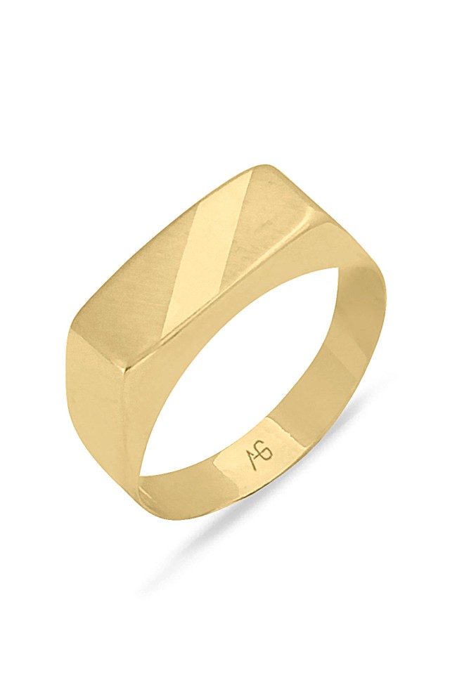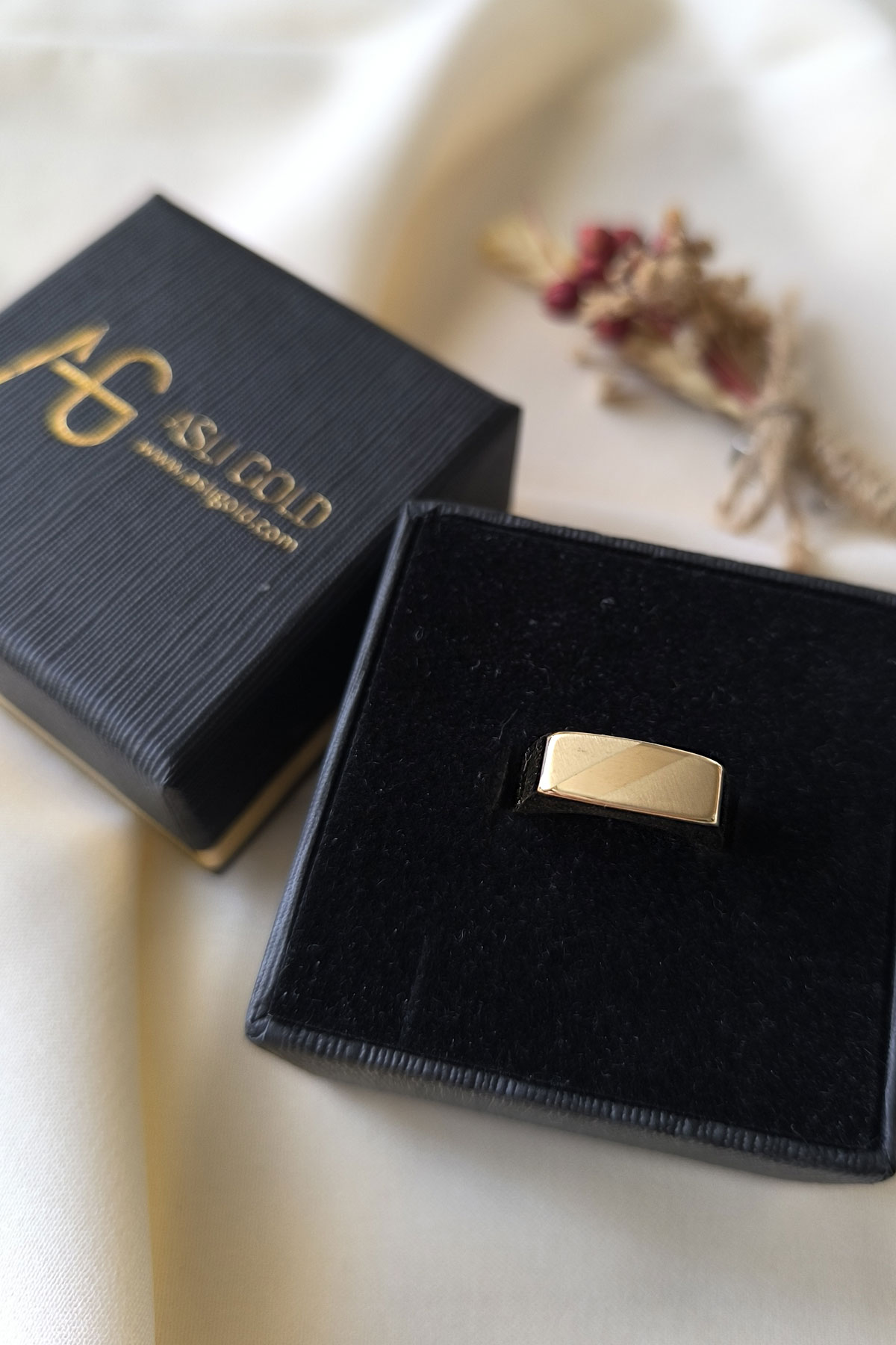 2.60 Gr. ağırlığında dikdörtgen formlu şık bir modele sahip taşsız sade 14 ayar altın erkek yüzük.