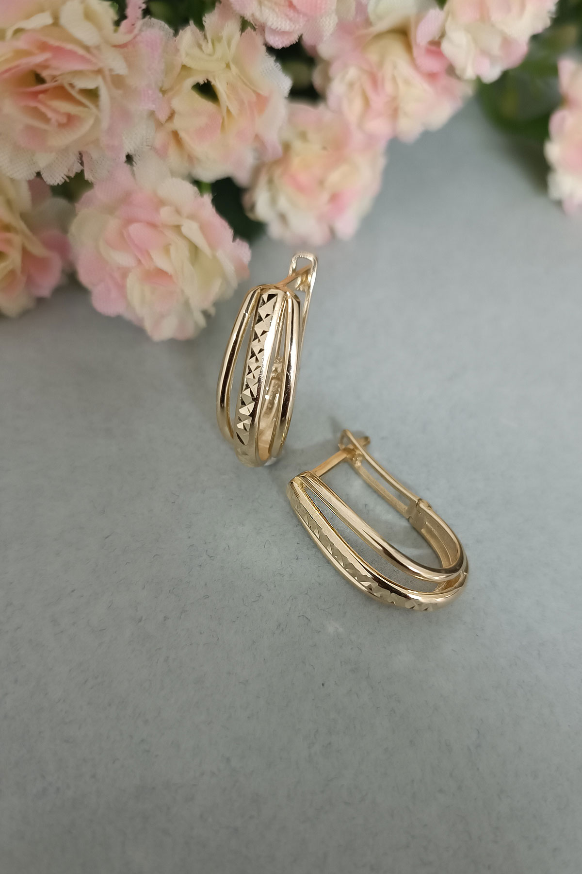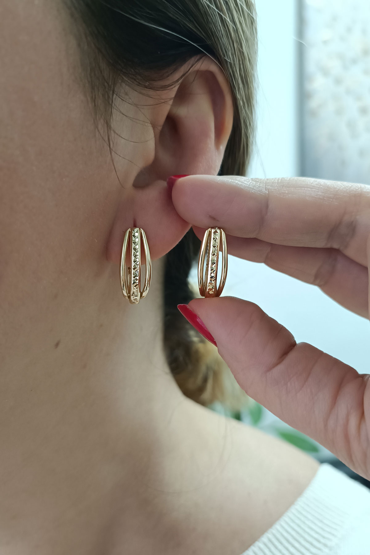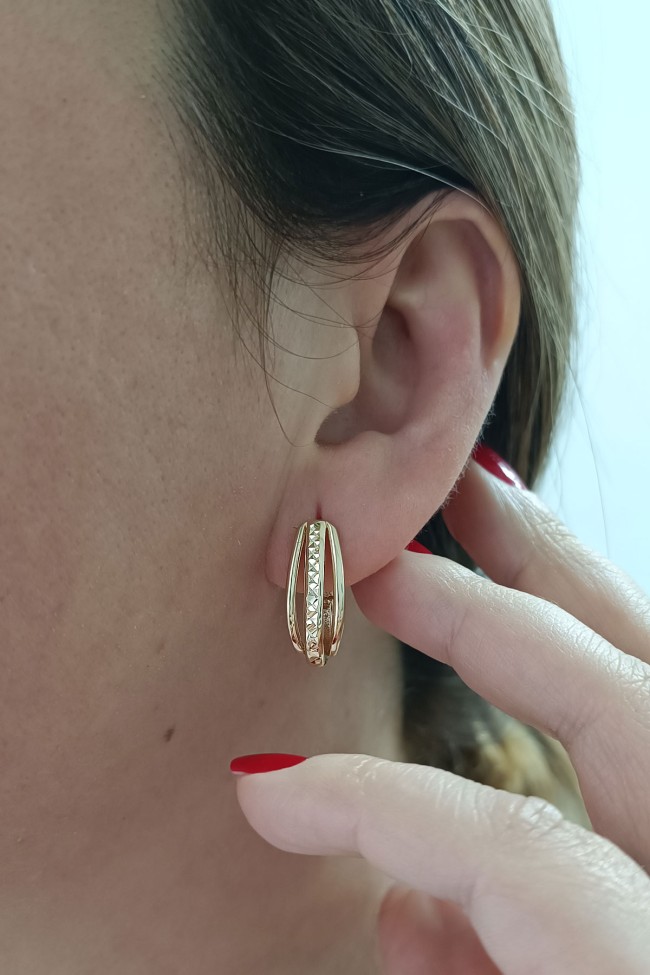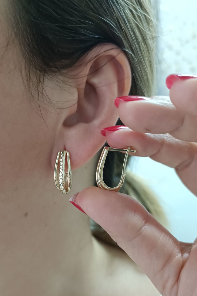 14 Ayar zarif sade tasarımı ile naif bir duruşa da sahip günlük kullanıma uygun açmalı klips kilit 4.80 gram ağırlığında tasarım model sarı altın taşsız kadın küpe.