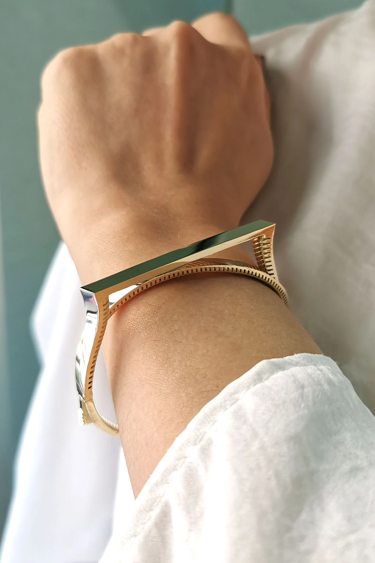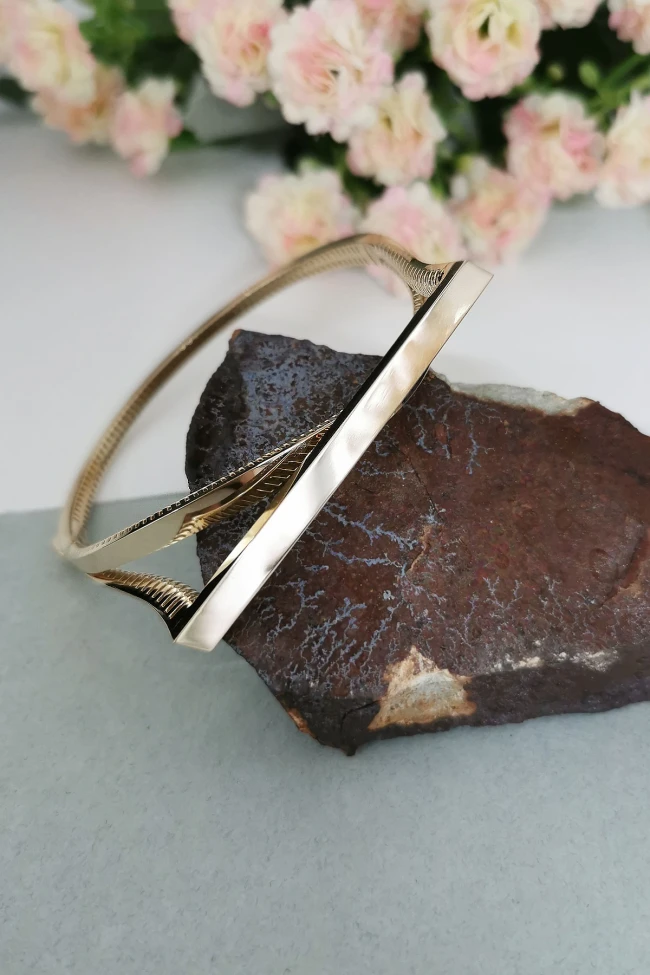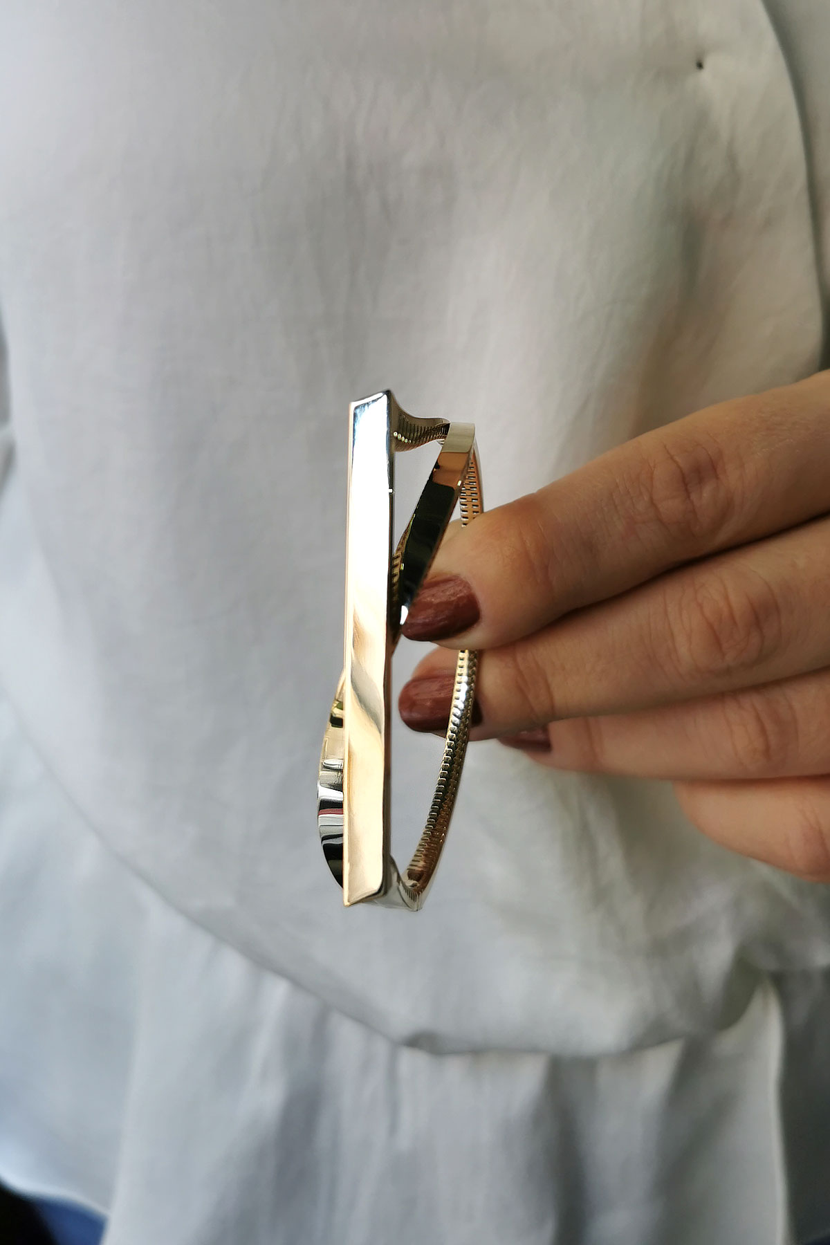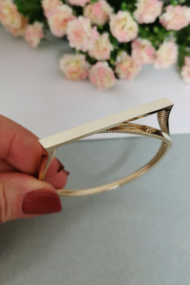 14 Ayar 12.50 gr. Ağırlığında Dikdörtgen Model Yandan Bantlı Şık, Spor Ve Modern Bir Duruşa Sahip, Günlük Kullanıma Uygun Altın Füzyon Taşsız Tasarım Bilezik.