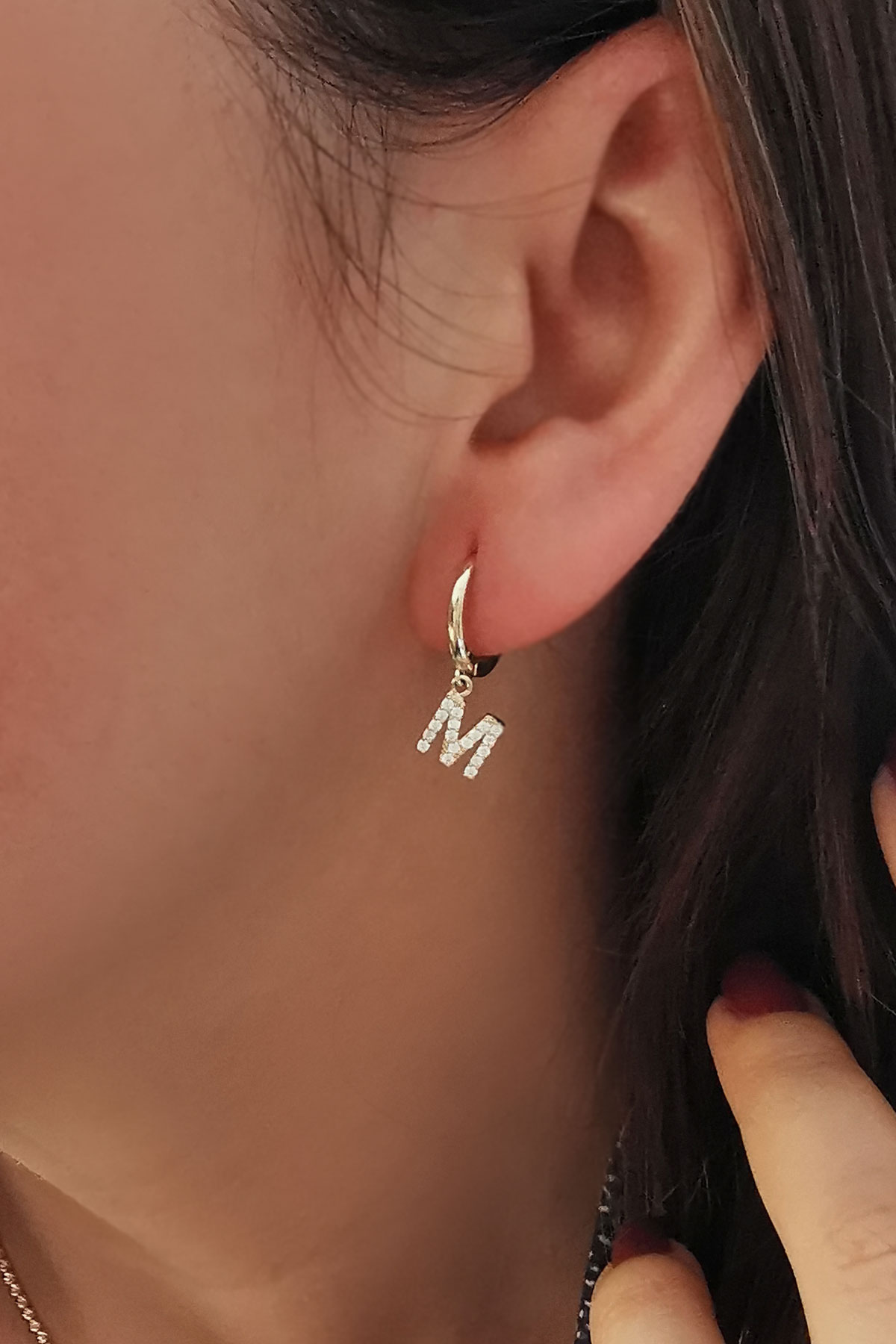 14 Ayar taşlı ışıl ışıl ve modern, spor tasarımı ile zarif duruşa sahip spor bir modeli olan günlük kullanıma uygun 1.15  gram ağırlığında 2.2 Cm boyunda altın mini halka harf küpe.