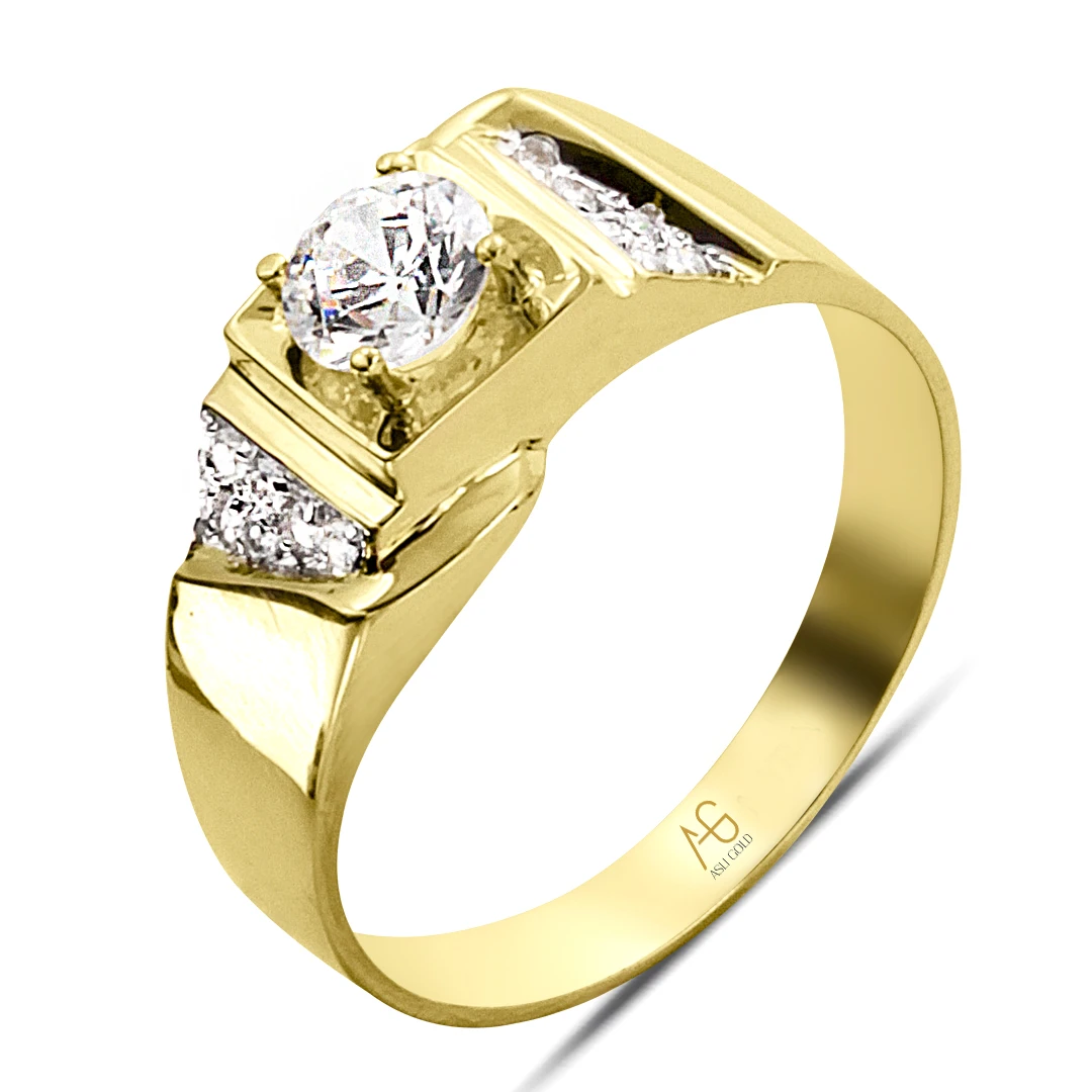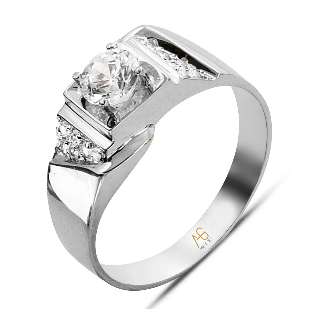 5.85 Gr Ağırlığında tektaş detaylı sarı yada beyaz altın olarak zevkinize göre satın alma seçeneğiyle şık ve modern model 14 ayar altın erkek yüzüğü.