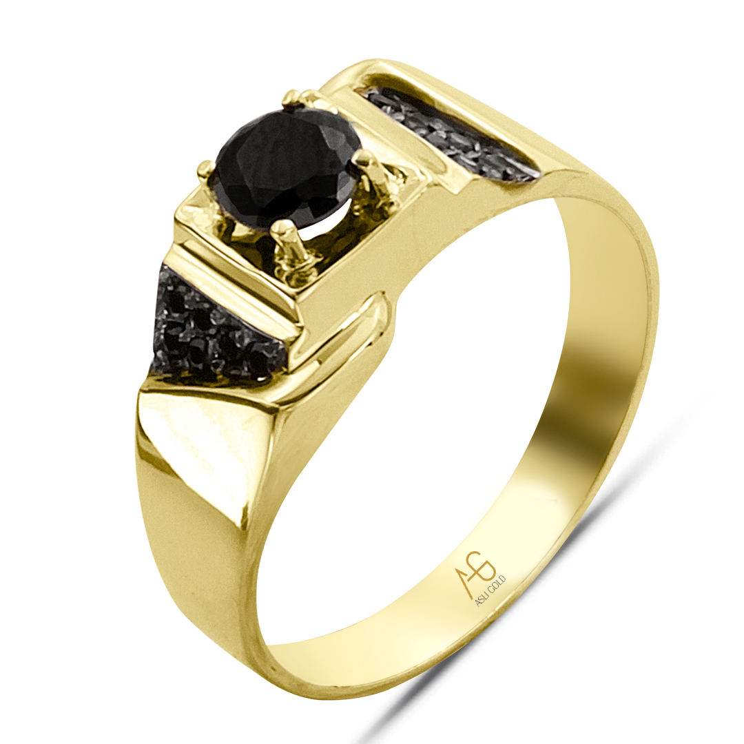 5.85 Gr Ağırlığında siyah tektaş detaylı sarı yada beyaz altın olarak zevkinize göre satın alma seçeneğiyle şık ve modern model 14 ayar altın erkek yüzüğü.