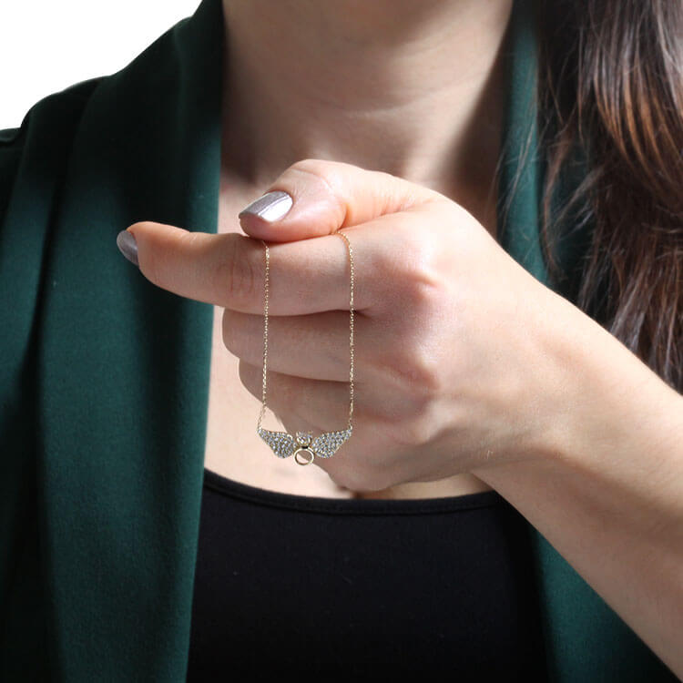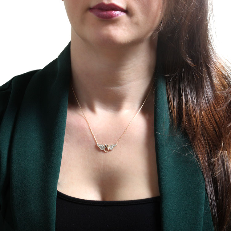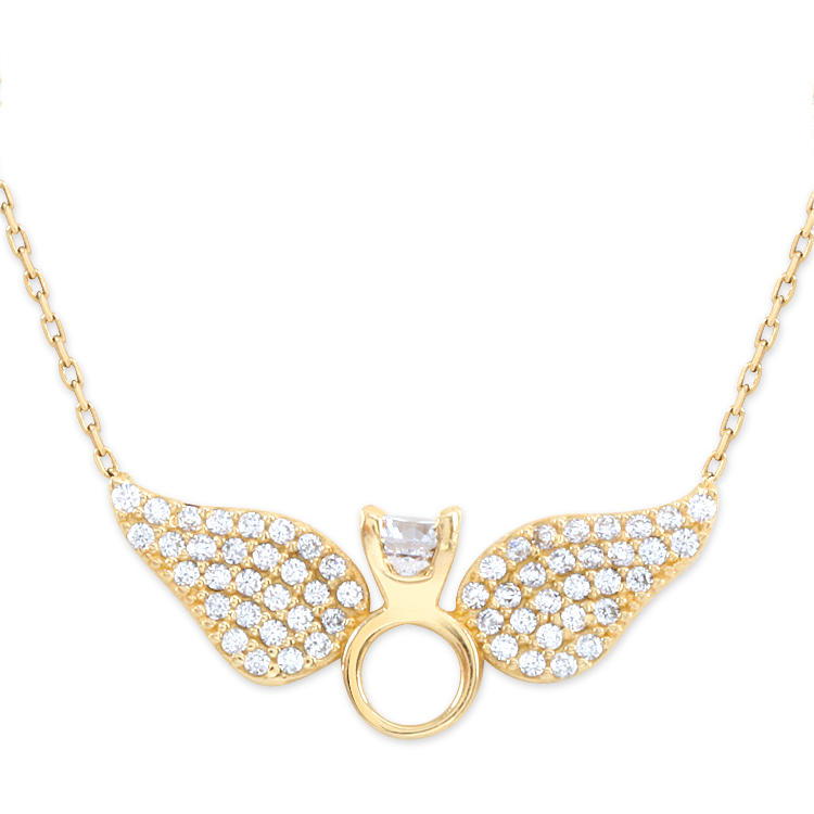 Ortası tektaş detaylı melek kanadı altın kolye modeli ile sevdiklerinize doğum günü, sevgililer günü, yıl dönümü gibi özel günlerinizde bu mesaj dolu harika modeli armağan edebilirsiniz.