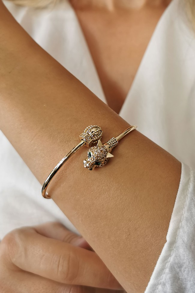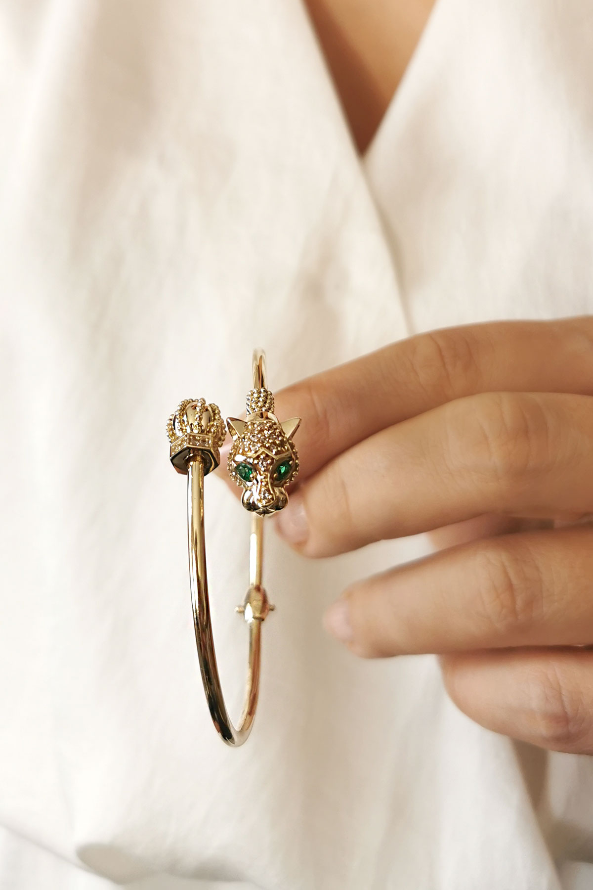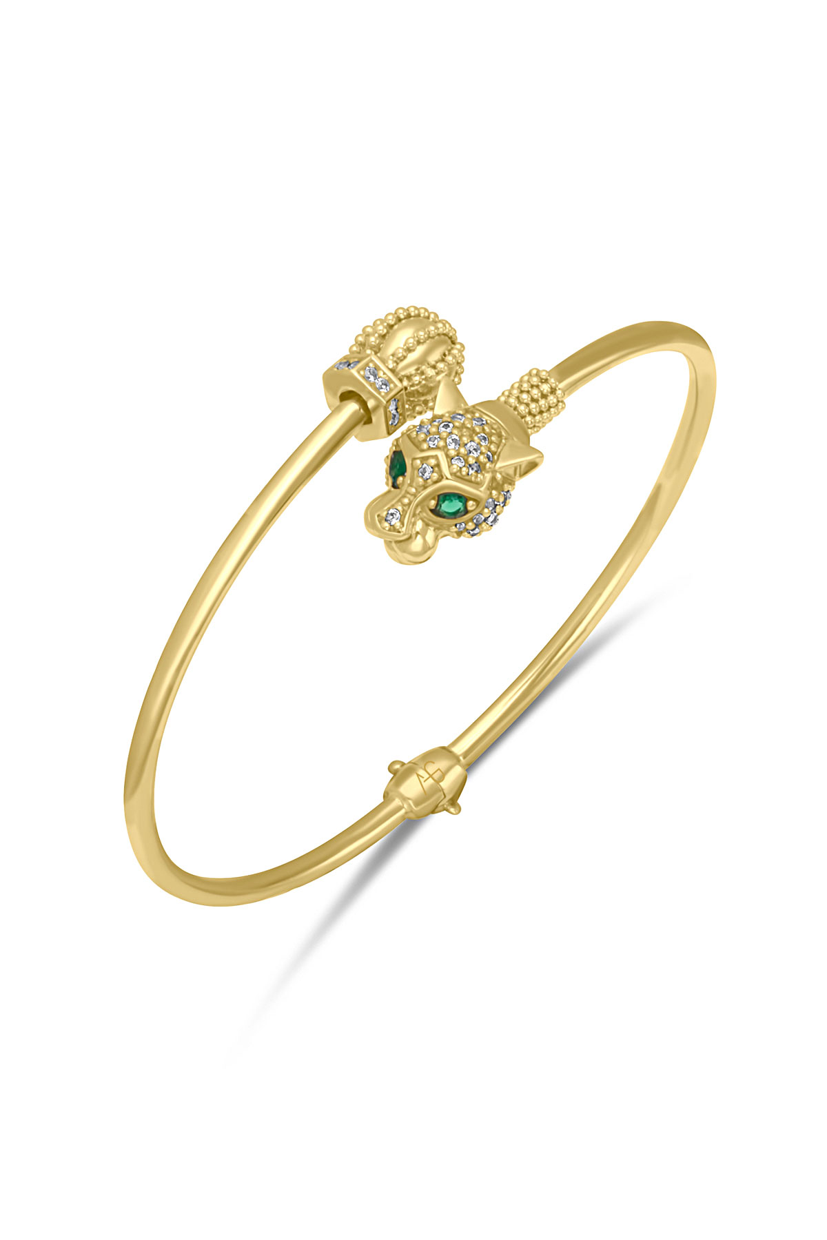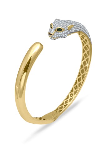14 Ayar gösterişli ve şık tasarımı ile modern ışıl ışıl duruşa da sahip günlük kullanıma uygun 10.15 gram ağırlığında taş detaylı model altın Cartier kaplan bilezik.