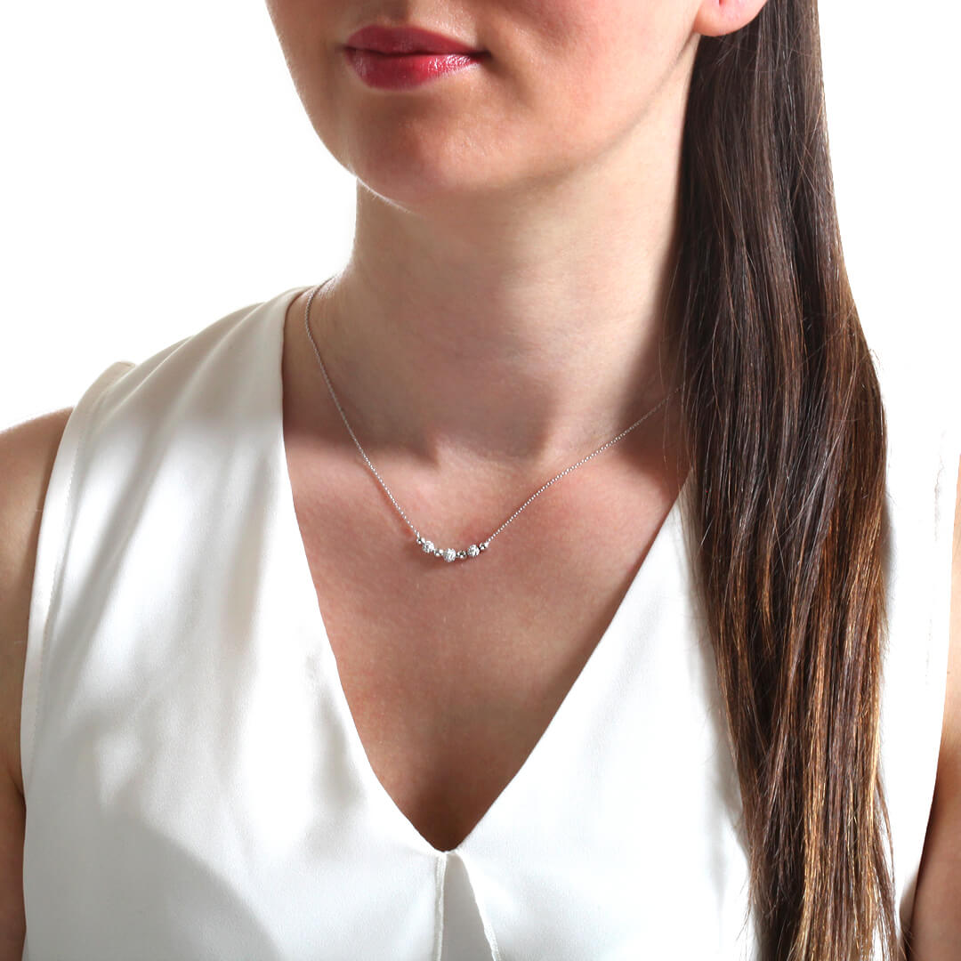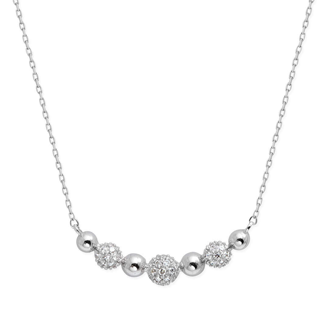 Özel günlerinizin vazgeçilmez hediyesi olan minimal ve modern top tasarımlı 0,17 karat pırlantalı 2.55 gr 14 ayar beyaz altın kolye.