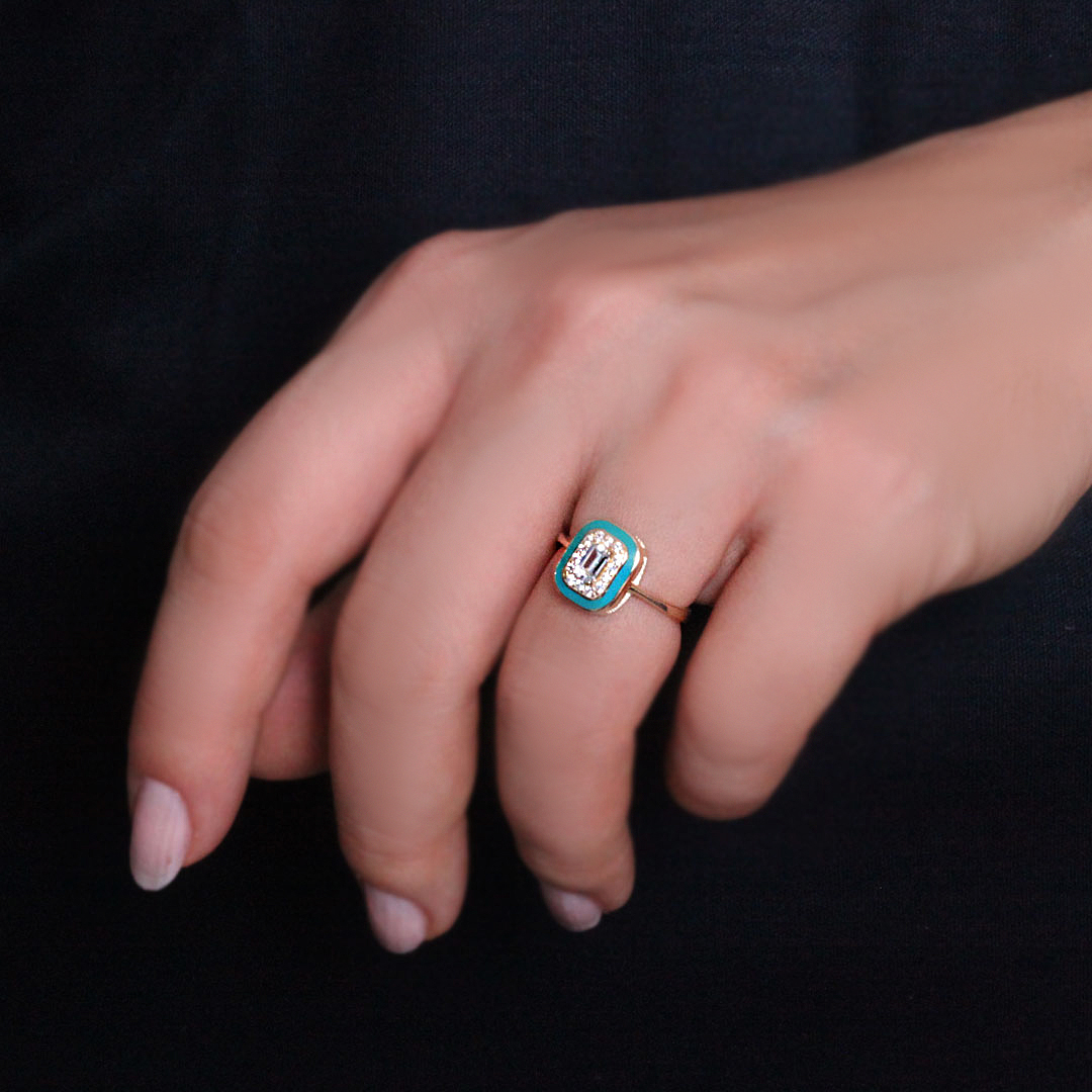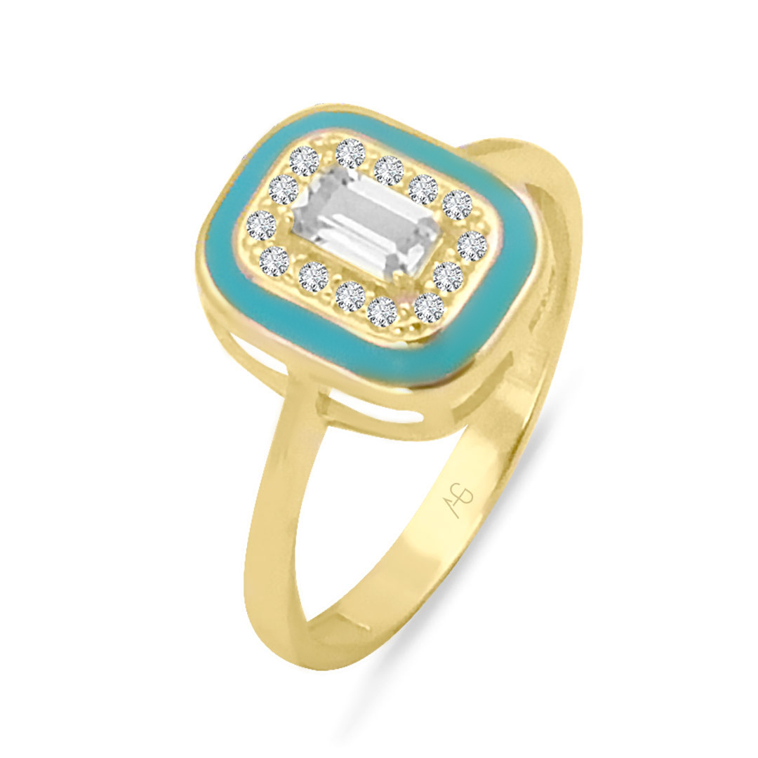 2.40 Gram Ağırlığında Baget Taş Detaylı Turkuaz Mineli Tasarımıyla Oldukça Sade Bir Duruşa Sahip 14 Ayar Altın Zirkon Taşlı Spor Yüzük.