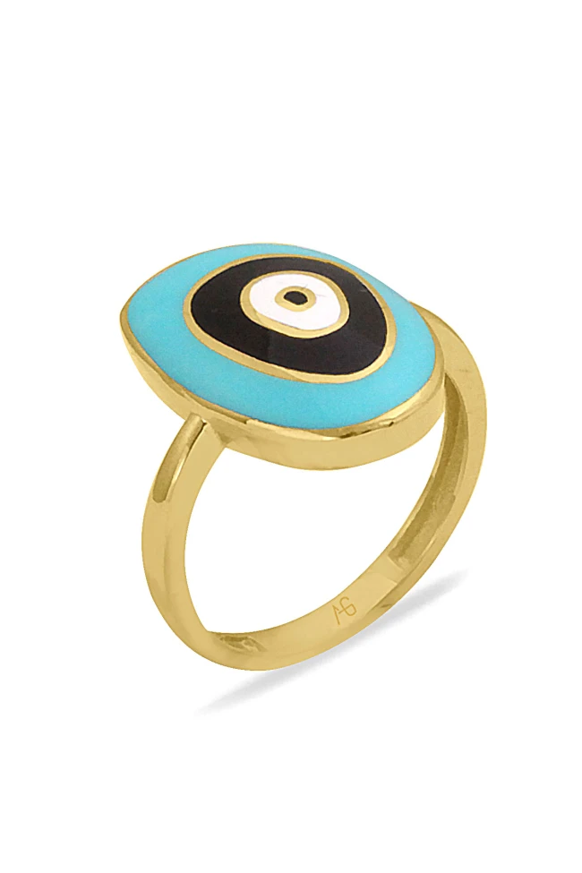 14 Ayar Altın Turkuaz Mineli 3.40 Gr Ağırlığında Göz Yüzük.