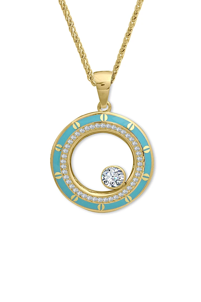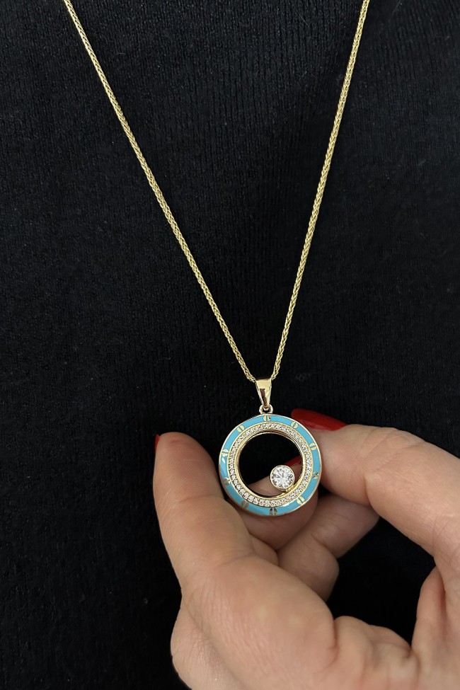 6.40 gr. 3.5 cm boyutunda turkuaz mineli model 14 ayar altın tektaş tasarım kolye.
